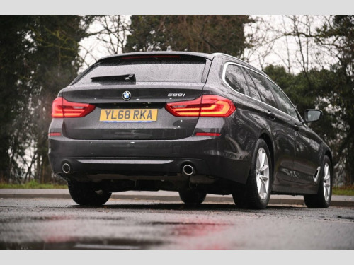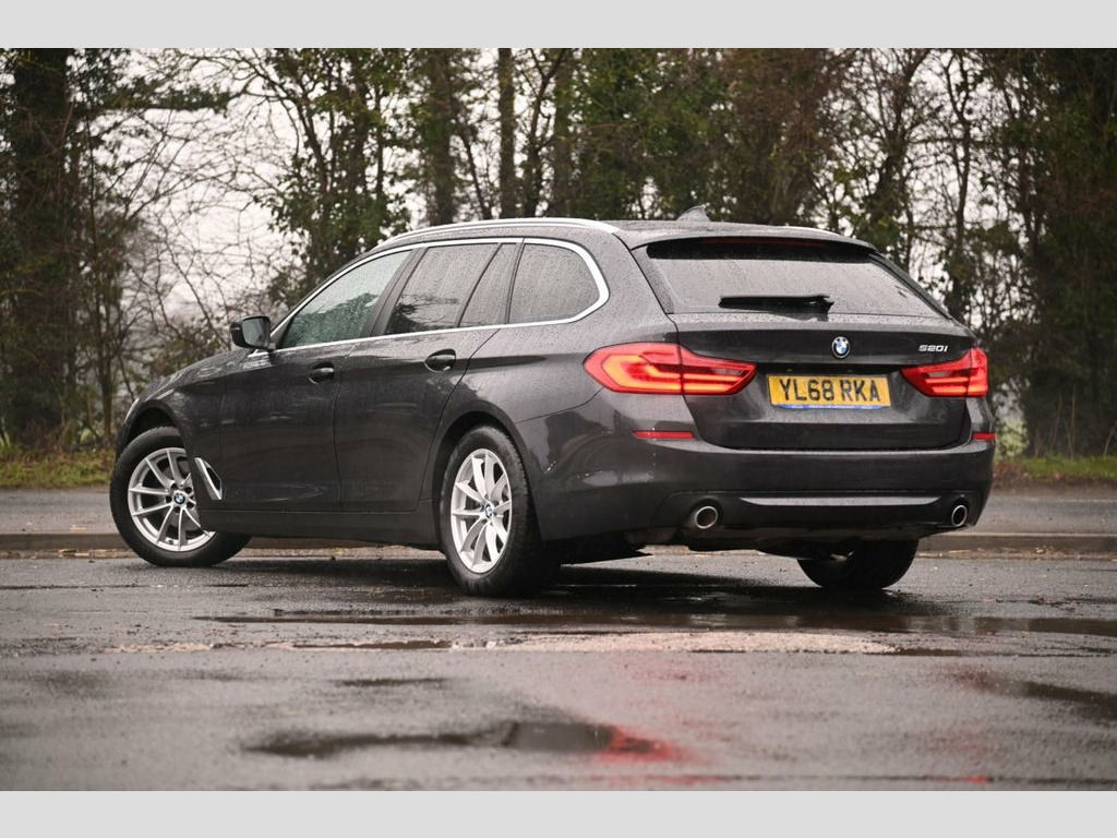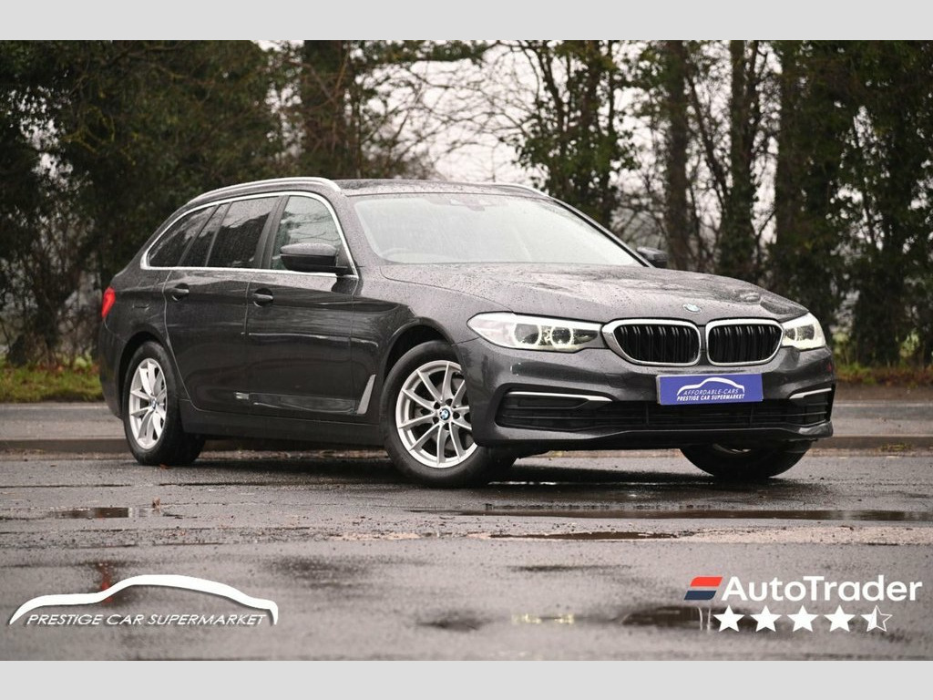 Prestige Car Supermarket in York presents this 2018 BMW 5 Series 520i SE Touring, a refined and practical executive estate that blends comfort, technology and everyday usability. Finished in Sophisto Grey Xirallic and riding on 17in light V-spoke alloy wheels, it has a clean, understated look complemented by silver roof rails and chrome exterior detailing. Power comes from BMW's smooth 2.0 petrol engine paired with an automatic gearbox, delivering relaxed performance that suits both long motorway journeys and daily driving. Inside, the cabin is finished in black Dakota leather with aluminium fine cutting trim, offering a premium and well-built environment. The digital cockpit and 10.25in touchscreen sit at the heart of the dashboard, running BMW Professional navigation with real-time traffic, DAB radio, Bluetooth connectivity and ConnectedDrive services. Comfort is a strong point, with dual-zone automatic climate control, heated front seats, electric front seat adjustment, ambient lighting and acoustic glazing creating a quiet and relaxing space. Practicality is equally impressive, thanks to the Touring body style with split-folding rear seats, through-loading system, powered tailgate and independently opening rear window. Safety and driver assistance are well covered with cruise control with brake function, front and rear parking sensors, LED headlights, rain-sensing wipers and active safety systems, making this a highly capable and versatile premium estate. 17in Alloy Wheels - Light V-Spoke - 618, 20GB Hard Disc Drive HDD Memory, Acoustic Glazing, Active Air Stream Kidney Grille, Active Guard, Air Conditioning - Automatic - Dual Zone, Airbags, Alarm System - Thatcham 1 with Remote Co, All Round Anti-Corrosion System, Ambient Lighting, Anti Roll Bars - Front and Rear, Armrests, Automatically Retracting and Lowering Lo, BMW ConnectedDrive Online Services, BMW ConnectedDrive Services, BMW Emergency Call, BMW Professional Radio with Single CD Pl, BMW TeleServices, Battery in Luggage Compartment with Jump, Bluetooth Hands Free with USB Audio Inte, Brake Force Display, Child Seat ISOFIX Attachment - Outer Rea, Control Display - 10.25in Colour Touch S