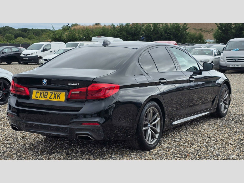 If you're in the market for a luxury executive car that perfectly blends performance, style, and comfort, look no further than this 2018 BMW 5 Series 520i M Sport Auto. Finished in timeless black with sleek 18-inch alloy wheels and privacy glass, this car makes an immediate impression  it's sporty and elegant all at once, designed to turn heads whether you're parked outside the office or cruising on the motorway. With just 81,000 miles on the clock and two previous owners, it's been well maintained and ready to deliver a premium driving experience for years to come.Under the bonnet, the 2.0-litre petrol engine offers a perfect balance of power and efficiency, seamlessly paired with a smooth automatic transmission that ensures effortless acceleration and relaxed cruising. Whether you're navigating busy city streets or embarking on a longer journey, the 520i's responsive handling and refined ride quality make every mile enjoyable. Plus, this model complies with Euro 6 emission standards and is ULEZ compliant, meaning it's a smart choice for urban driving without worrying about low emission zones.Step inside, and you'll find a beautifully crafted cabin that showcases BMW's commitment to luxury and driver comfort. The leather-trimmed seats offer superb support on both short trips and longer drives, while the dual-zone climate control keeps the interior perfectly comfortable regardless of the weather outside. The spacious interior also benefits from privacy glass, giving you an added sense of security and sophistication.One of the standout features of this 5 Series is the integrated HDD navigation system, which makes planning routes and finding destinations simple and intuitive, helping you avoid traffic and reach your destination stress-free. Parking sensors add to the convenience by assisting with tricky manoeuvres, so you can park with confidence even in tight city spaces.Whether you're commuting, entertaining clients, or simply enjoying a weekend getaway, this BMW 520i M Sport combines practicality with luxury. It offers plenty of boot space for luggage or mote services, dakota leather with exclusive stitching - black with black interior, 18in alloy wheels - light m double spoke - 662m, 20gb hard disc drive hdd memory, access to bmw connected plus for 12 months from vehicle production - subscription required, active air stream kidney grille, active guard, air conditioning - automatic, airbags, alarm system - thatcham 1 with remote control and engine immobiliser, all round anti-corrosion system, ambient lighting, anti roll bars - front and rear, armrests, bmw connecteddrive online services, bmw connecteddrive services, bmw emergency call, bmw professional radio with single cd player - mp3 and dvd playback compatibility, bmw teleservices, battery in luggage compartment with jump start facility in engine bay, bluetooth hands free with usb audio interface, brake force display, child seat isofix attachment two in rear - includes top tether, control display - 10.25in colour touch sensitive display screen, crash sensor - activating central locking - hazard warning lights - fuel cut off - interior lights, cruise control with brake function, cup holders - front x2 and rear x2, dab digital radio, dsc - dynamic stability control - stabilises the vehicle in extreme situations - controls traction, daytime running lights - led, deformation zones - front and rear, digital cockpit, door sill inlays - bmw m designation illuminated, drive performance control with eco pro - comfort and sport modes, dynamic brake lights with led technology, eps - electric power steering with servotronic, electric windows - front and rear with open-close fingertip control - anti-trap facility and comfort closing function, electro mechanical parking brake with automatic drive-away and auto-hold function, engine cover with twinpower turbo designation, exhaust tailpipes - single - left and right - chrome - quadrilateral, exterior door handle illumination, exterior mirrors - electrically adjustable and heated includes integrated direction indicators, exterior trim - high gloss shadowline, favourite buttons, first aid kit and warning triangle, follow me home headlight function, footwell lights - front and rear, glove compartment - lockable and illuminated, head restraints - front anti-whiplash, headlining - anthracite, instrument panel in sensatec - artificial leather, interior rear-view mirror with automatic anti-dazzle function, interior trim - aluminium rhombicle with highlight trim finishers pearl chrome, led fog lights - front, led headlights, locking wheel bolts - thatcham approved, m aerodynamic bodystyling, m designation on front side panels - left and right, m specific floor mats, m specific key, m specific pedals, m specific steering wheel, m sport multi-function leather steering wheel - three-spoke, m sport package, m sport suspension, multi-functional instrument panel, navigation system - bmw professional multimedia, obc - on-board computer, obd - on board diagnosis, oil sensor for level and grade, pdc - park distance control - front and rear, power sockets 12v - 2x front - 1x rear, rain sensor with automatic headlight activation, reading lights - front and rear, real time traffic information, remote control locking, run flat tyres, seat belts - front - inertia reel with pyrotechnical belt latch tensioner - belt force limiter and belt restrainer, seat belts - rear - three with inertia reel, seat heating - front, seats - front with partial electric adjustment, side impact protection, speed limit function, sport seats - front, steering column with adjustable height and length - activation via lateral lever on steering column, steering wheel - gearshift paddles, tpms - tyre pressure monitoring system, two tone horn, windscreen washer jets - heated, idrive touch controller with shortcut buttons