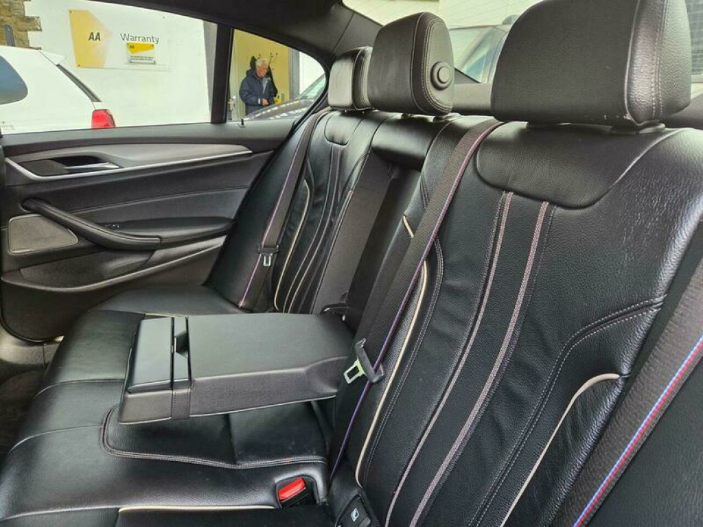 This 2018 BMW 5 Series 520i M Sport boasts a full BMW service history, ensuring its excellent provenance. This striking M Sport variant is powered by a 2.0 litre petrol engine and meets Euro 6 emissions standards. It comes equipped with 19in M Light M Double Spoke 664M Black alloy wheels, a premium Harman Kardon loudspeaker system, and M Seat Belts. The M Sport Plus Package enhances the driving experience, while PDC Park Distance Control with front and rear sensors, including parking assistance, makes manoeuvring effortless. You can expect impressive fuel economy with this BMW 5 Series, achieving up to 50 miles per gallon, which is a significant advantage over many similar vehicles. Its low CO2 emissions further contribute to its efficiency. This model also offers generous boot space, making it practical for everyday use and longer journeys. A 12 month MOT will be provided on purchase, offering peace of mind for the new owner. 12V Power Socket, Alarm, Automatic Rearview Mirror Dimming, Central Locking, Cruise Control, Cup Holders, DVD Player, Daytime Running Lights, Electric Heated Seats, Front Airbags, Heated Windscreen, LED Lights, Parking Assistance, Power Assisted Steering, Radio, Rain Sensor, Reading Lights, Safety Belts, Satellite Navigation, Sports Seats, Sports Suspension, Steering Wheel Controls