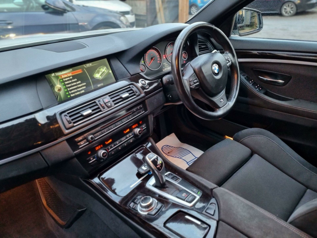 IF YOU ARE LOOKING FOR AN AUTOMATIC FAMILY CAR, THEN THIS BEAUTIFUL MINT CONDITION BMW 5 SERIES M.SPORTS SALOON WITH VERY LOW MILES AND ONLY 1 OWNER CAR COULD BE A GREAT OPTION FOR YOU.ON SALE THIS BEAUTIFUL BMW 520i M.SPORTS AUTOMATIC, 4 DOOR FAMILY CAR.ULEZ FREE, NO CATEGORY, FRESH ENGINE AND TRANSMISSION SERVICED AND VERY LONG MOT VALID TILL DECEMBER 2026 WITH NO ADVISORIES. THIS BMW 5 SERIES IS MECHANICALY ABSOLUTELY IN EXCELLENT CONDITION, DRIVE VERY SMOOTH WITHOUT ANY FAULTS OR ANY ISSUES DUE TO VERY LOW MILES. ENGINE AND GEARBOX BOTH ARE INSPECTED AND EVERYTHING WORKS GREAT AS IT SHOULD. ALSO ITS A VERY CLEAN CAR FOR ITS AGE AND VERY LOW MILES .DEFINITELY WORTH COMING FOR THIS BEAUTIFUL BMW 520i M SPORTS AUTO.FOR PEACE OF MIND OUR VEHICLES COMES WITH 6 MONTHS GOLD COVER WARRANTY, FREE 12 MONTHS BREAKDOWN COVER FROM AA AND WE DELIVER FOR FREE IN LOCAL.ALSO WE HAVE EXTENDED WARRANTY OPTION AVAILABLE, AND YES WE DO NATIONWIDE DELIVERY WITH A BIT OF EXTRA COST, DEPENDS ON MILES, BUT GURRANTED CHEAPEST DELIVERY CHARGES IN MARKET. FOR MORE INFORMATION PLEASE CONTACT US WE ARE OPEN 7 DAYS A WEEK, SO ANY INSPECTION,TESTDRIVE AND VIEWING MOST WELCOME. FOR MORE CARS PLEASE VISIT OUR WEBSITE WWW.KHANROVERS.CO.UK KIND REGARDS ALI v power socket - front, 12v power socket - rear of centre console, 18in alloy wheels - light m double spoke - 350m, 6.5in colour display screen, abs - anti lock braking system, asc - automatic stability control, advanced head protection system front and rear, air conditioning - automatic with extended features, airbags - driver, airbags - impact dependent system for driver and front passenger, airbags - passenger, airbags - passenger deactivation, alarm system thatcham 1 with remote control, ambient interior lighting, armrest - front with storage compartment, automatically dimming rear view mirror, auxiliary input, bmw online services, bmw professional radio - single cd and mp3, bmw teleservices, battery in luggage compartment, black panel display - partial, brake callipers - aluminium - front and rear, brake drying, brake fade compensation, brake pad wear indicator, brake pre-tensioning, bumper - rear dark chrome insert, cbc - cornering brake control, cathodic dip paintwork preservation of hollow cavities underfloor protection, check control warning system, child proof locking system - rear doors, child seat isofix attachment - rear x2, courtesy lights - front with soft on-off dimming, crash sensor, crash sensor - activating central locking-hazard warning lights-fuel cut off, cruise control with brake function, cup holders - front x1 and rear x1, dbc - dynamic brake control, dsc - dynamic stability control plus, dtc - dynamic traction control, deformation zones - front and rear, display - 7in colour screen, door mirrors - electric and heated and aspheric, door sill finishers - bmw designation, double-wishbone suspension - front, drive performance control, driver belt force limiter and belt restrainer, dynamic brake lights, ebd - electronic brake-force distribution, eco pro mode, electric windows - front and rear with open-close fingertip control, electro mechanical parking brake, engine immobiliser, enhanced bluetooth telephone functionality, exhaust tailpipes - dark chrome, exterior parts in body colour - bumpers - door handles - mirror caps - roof mouldings, exterior trim - high-gloss shadowline, first aid kit, floor mats - velour, fogging sensor - front windscreen, footwell lights - front, front fog lights, head restraints - front anti-whiplash, headlight range control - electric, headlining - anthracite, heated windscreen washer jets, hill start assist, incorrect fuelling protection system, interior trim - aluminium hexagon, keyless start, kidney grille - chrome with chrome fronted and black sided vertical slats, locking wheel bolts, luggage compartment - electric unlocking via the keys remote control, luggage compartment - release button in a-pillar, m aerodynamic bodystyling, m aerodynamics package, m sport package, m sport suspension, multifunction controls for steering wheel, obc - on-board computer, pdc - park distance control - front and rear, pdc - park distance control - rear, passenger seat occupancy sensor - front, power steering - electric with servotronic, rain sensor with automatic headlight activation, reading lights - front and rear, remote control locking, run flat tyres, seat belts - front inertia reel with pyrotechnical belt latch tensioner, seats - front heated, securing rings in luggage compartment x4, side impact protection, smokers package, speaker system with six speakers, sport seats - front, sport seats - front part electric adjustment, standard seats - front - part electric adjustment, steering column with manual reach and rake adjustment, steering wheel - m sport leather multifunction, sun visors with illuminated vanity mirrors, tpws - tyre pressure warning system, tool kit located in luggage compartment, usb audio interface, windows - heat insulated tinted all round, idrive controller with shortcut buttons