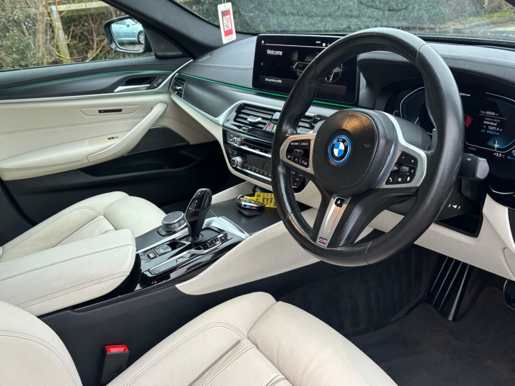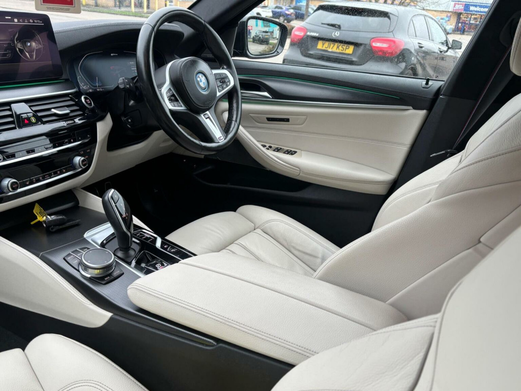 WE ARE PLEASED TO OFFER THIS HIGHLY DESIRABLE HIGH SPECIFICATION WELL MAINTAINED ECONOMICAL RARE PETROL PLUG-IN HYBRID FOUR WHEEL DRIVE BMW 5 SERIES 2.0 530e 12kWh M SPORT STEPTRONIC xDRIVE EURO SIX FOUR DOOR + FINISHED IN SAPPHIRE BLACK METALLIC PAINTWORK AND IS COMPLEMENTED WITH AN IVORY WHITE SEAMLESS DAKOTA LEATHER UPHOLSTERY + ONLY 85,526 MILES HAS BEEN COVERED IN TOTAL + LAST COMPANY DIRECTOR OWNER SINCE DECEMBER 2024 AND IS BACKED WITH AN EXCELLENT SERVICE HISTORY + THE SERVICES HAVE BEEN CARRIED OUT AT 21408 MILES, 41986 MILES, 63194 MILES, 73292 MILES AND 85526 MILES + 12 MONTHS MOT + EXCEPTIONAL CONDITION THROUGHOUT AND DRIVES SUPERB + 292 BHP MODEL + FULL M SPORT SPECIFICATION WITH A HOST OF EXPENSIVE FACTORY OPTIONS WHICH INCLUDES TECHNOLOGY PACK / HEADS UP DISPLAY / HEATED FRONT SEATS AND STEERING WHEEL / HARMAN KARDON SURROUND SOUND SYSTEM / COMFORT PACKAGE / M SPORT PRO PACK / M SPORT BRAKED WITH HIGH GLOSS RED PAINTED BRAKE CALIPERS / 20 M LIGHT Y SPOKE 846 BICOLOUR JET BLACK ALLOY WHEELS / COMFORT PACKAGE / SUN PROTECTION GLASS / AMBIENT INTERIOR LIGHTING / PARKING ASSISTANCE SYSTEM WITH CAMERA / FULL ELECTRIC PACK WITH POWER ADJUSTABLE FRONT SEATS / SATELLITE NAVIGATION / HIGH GLOSS SHADOW LINE / BMW GESTURE CONTROL / PROFESSIONAL CONNECTED PACKAGE / COMFORT SEATS / 2 X CHARGERS PLUS MUCH MORE + HANDBOOK PACK + DIGITAL SERVICE HISTORY + DIGITAL KEY + 2 X KEYS + ANY TRIAL OR INSPECTION IS WELCOMED + HPI CLEAR WITH CERTIFICATE + SIX MONTHS NATIONWIDE WARRANTY IS INCLUDED + THIS TRULY CHERISHED EXAMPLE REPRESENTS OUTSTANDING VALUE ON COST NEW PRICE AND VIEWING IS HIGHLY RECOMMENDED TO APPRECIATE. We have been established in Baildon for over 20 years. All our vehicles are fully inspected, prepared and valeted. We are finance specialists. Part exchange is welcome. All major credit and debits accepted. Open 7 days. Our postcode is BD177EX.