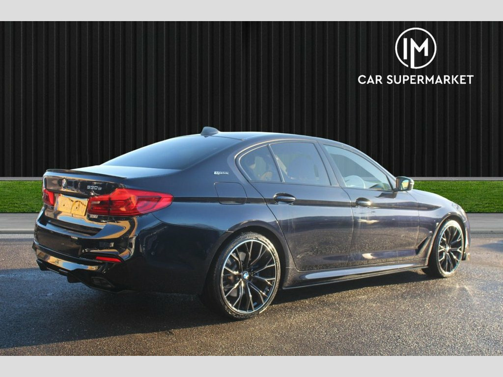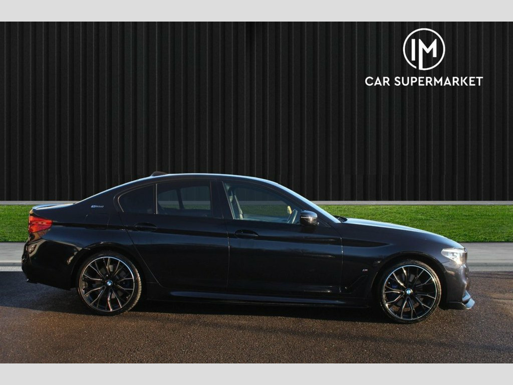 IM car supermarket is pleased to offer this very well BMW 5 Series 2.0 530e 9.2kWh M Sport Auto Euro 6 (s/s) 4dr in black colour with only 71,000 miles on the clock. The car comes with 3 months warranty. MOT valid until 3 November 2026. service history info; A high specification includes Leather Seats, Reverse Parking Sensors, Wireless Apple Car Play,mClimate Control, Heated Front Seats, Phone and Media BT Connection. This 2018 BMW 5 Series 530e M Sport is a superb example, having been cherished by only two owners from new. It boasts a sophisticated 2.0 litre petrol plug-in hybrid engine, meeting Euro 6 emission standards, all presented in the sporty M Sport trim. You'll appreciate the convenience of Park Distance Control, which includes front and rear sensors, alongside automatic headlight activation thanks to the rain sensor. For comfort, the front seats are heated, and the cabin maintains a perfect temperature with automatic air conditioning and climate control. The LED headlights provide excellent visibility, enhancing both safety and the car's modern appearance. These features, combined with the efficient plug-in hybrid technology and the dynamic M Sport styling, set this BMW 5 Series apart from others. It offers a refined driving experience with a focus on comfort and advanced technology, making it a compelling choice for those seeking a premium saloon. 19in Alloy Wheels - M Light M Double Spo, 20GB Hard Disc Drive HDD Memory, Access to BMW Connected Plus (12 Month S, Acoustic Glazing, Active Air Stream Kidney Grille, Active Guard, Air Conditioning - Automatic - Dual Zone, Airbags, Alarm System - Thatcham 1 with Remote Co, All Round Anti-Corrosion System, Ambient Lighting, Anti Roll Bars - Front and Rear, Armrests, BMW ConnectedDrive Online Services, BMW ConnectedDrive Services, BMW Emergency Call, BMW Professional Radio with Single CD Pl, BMW TeleServices, Battery in Luggage Compartment with Jump, Black-Panel Instrument Cluster with Hybr, Bluetooth Hands Free with USB Audio Inte, Brake Force Display, Charging Flap Located on the Front Left