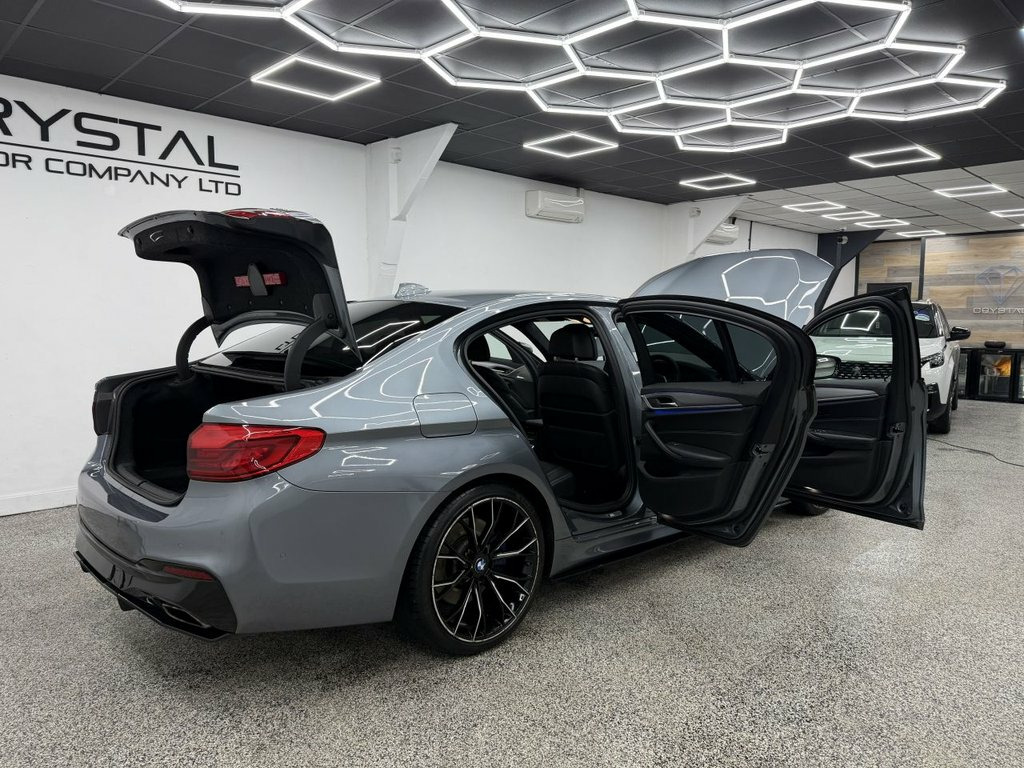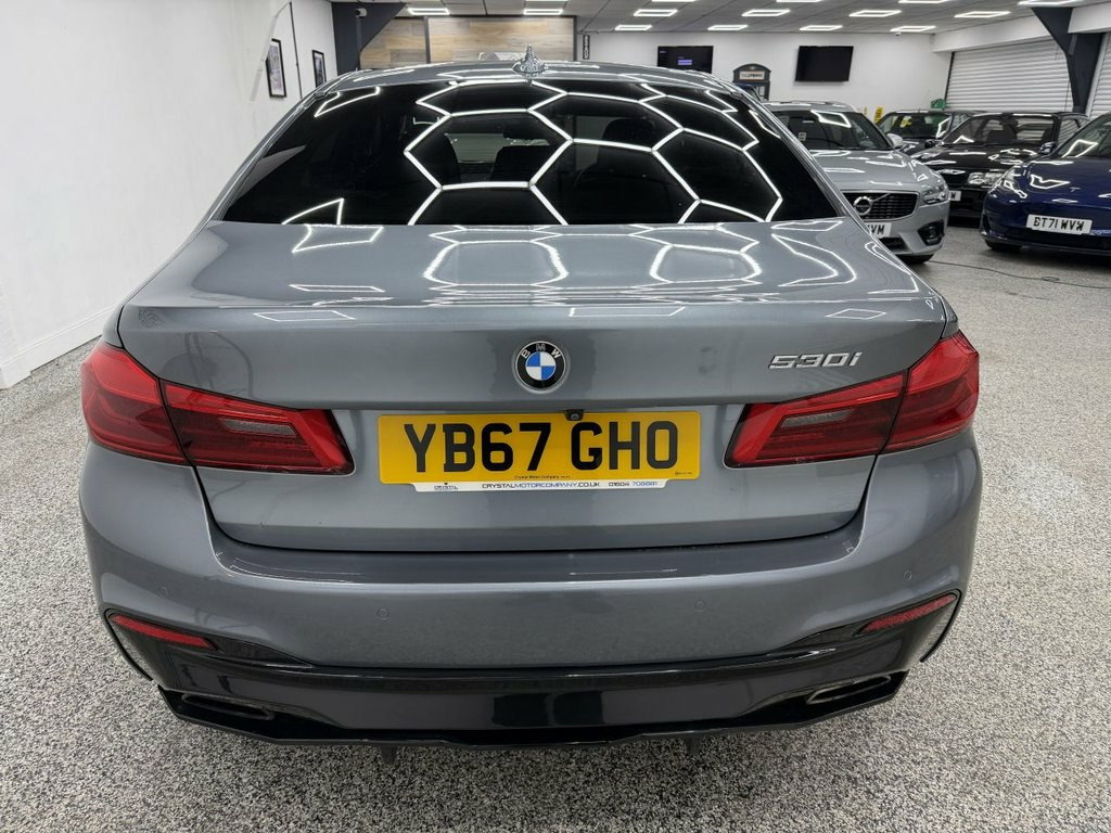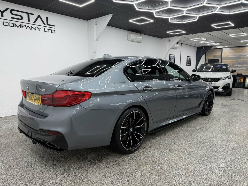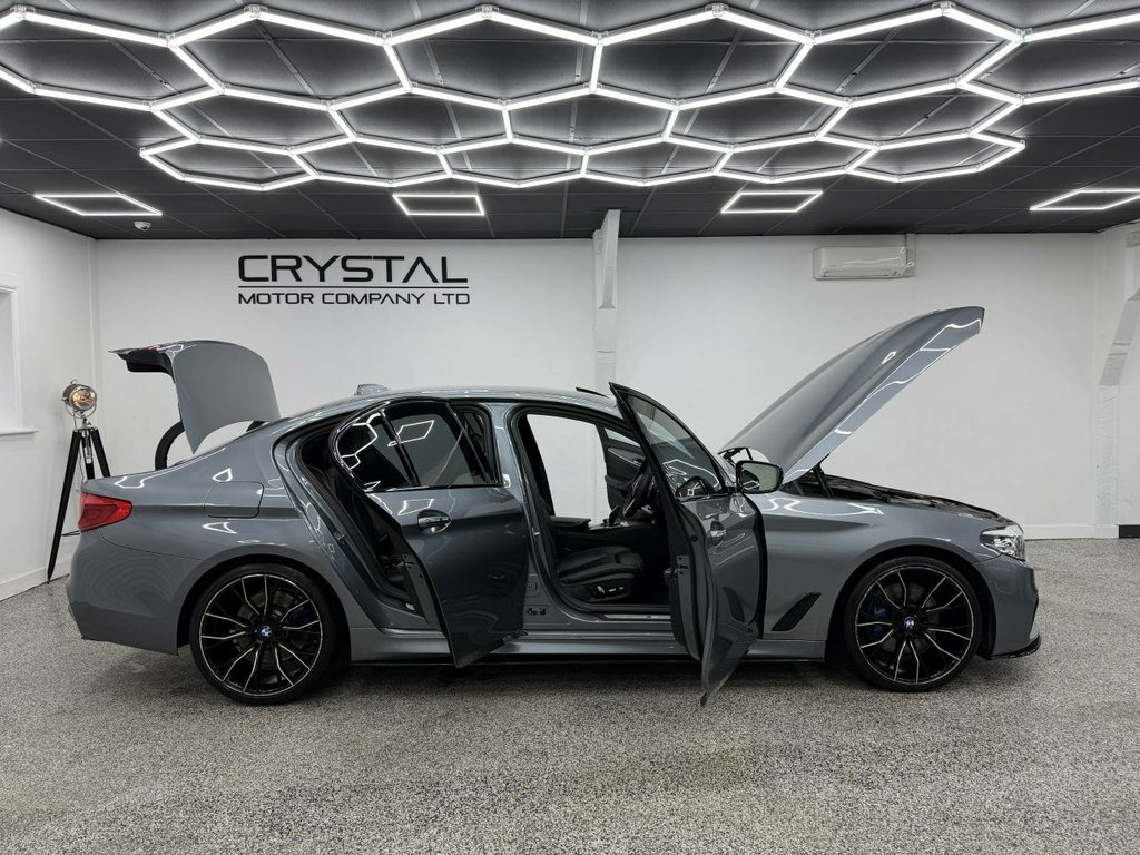 Crystal motor company are delighted to offer for sale this beautifully presented 2017 BMW 5 SERIES 2.0 530i M Sport Saloon 4dr Petrol Auto Euro 6 (s/s) (252 ps) finished in BLUESTONE. This car comes with TWO KEYS, ONE FORMER KEEPER, SERVICE HISTORY. This car is equipped with 20" ALLOY WHEELS, BLUE BRAKE CALLIPERS, FRONT AND REAR PARKING SENSORS, REAR REVERSING CAMERA, LED HEADLIGHTS, EXCLUSIVE LEATHER SEATS, ELECTRIC FRONT SEATS, MEMORY FRONT SEATS, HEATED FRONT SEATS, PADDLE SHIFT, CRUISE CONTROL, VIRTUAL COCKPIT, HEADS UP DISPLAY, AMBIENT LIGHTING (6 COLOUR CHOICE), DAB RADIO, BLUETOOTH AUDIO, BLUETOOTH PHONE CONNECTION, SATNAV. The car is 100% HPi clear. Part exchange and finance are available and all major credit and debit cards accepted. Crystal Motor Company Ltd Used Programme includes a full PDI inside and out, MOT, mileage certificate and a full inside and out valet. You can request a personalised video with attention given to any specifics you would like a better view of and we will be pleased to assist you. Likewise, we offer our customers a free collection service. Our journey began in 1996 with the aim to deliver the best possible customer experience, you will enjoy a completely hassle free approach, no pressure and great prices, values we stand by to this day. Looking to finance your next car? We have over 30 lenders on board to help each customer with their financial circumstance. Every vehicle benefits from a minimum of 3 months warranty with the option 19in Alloy Wheels - M Light M Double Spo, 20GB Hard Disc Drive HDD Memory, 20in Alloy Wheels - BMW Individual Light, Access to BMW Connected Plus (12 Month S, Active Air Stream Kidney Grille, Active Guard, Air Conditioning - Automatic, Airbags, Alarm System - Thatcham 1 with Remote Co, All Round Anti-Corrosion System, Ambient Lighting, Anti Roll Bars - Front and Rear, Armrests, Battery in Luggage Compartment with Jump, Bluestone, Bluetooth Hands Free with USB Audio Inte, BMW Professional Radio with Single CD Pl, BMW TeleServices, Brake Force Display, Child Seat ISOFIX Attachment Two in Rear, Comfort Seats - Front, Control Display - 10.25in Colour Touch S, Crash Sensor - Activating Central Lo