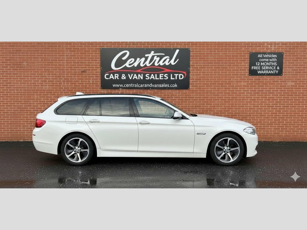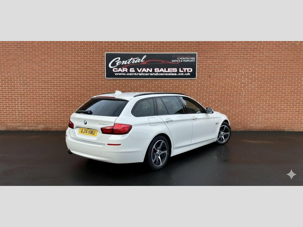 Boasting a full dealership service history and having had only two owners, this 2014 BMW 5 Series 530d Luxury presents a compelling proposition. Under the bonnet, a powerful 3.0L diesel engine delivers impressive performance, achieving 0-60mph in a swift 5.9 seconds, all while meeting the Euro 6 emission standards. The Luxury trim ensures a refined driving experience, complemented by notable features such as the premium Harman Kardon speaker system for exceptional audio quality, and enhanced Bluetooth telephone preparation with USB audio interface and voice control for seamless connectivity. Further enhancing comfort and convenience are the Climate Comfort Windscreen and extended luggage features, alongside the sophisticated BMW Individual Piano Black interior trim. This BMW 5 Series stands out with its combination of dynamic capability and practical design, highlighted by its substantial boot space, making it ideal for both daily commutes and longer journeys. The inclusion of a 12 month MOT on purchase and a 3 month warranty provides added peace of mind for the new owner. These elements collectively demonstrate a vehicle that has been meticulously maintained and offers a superior ownership experience compared to other models in its class. July 2014 BMW 530D Luxury Touring Automatic/Tiptronic Estate EURO 6 258ps. The car is finished in Alpine White with full black leather trim. The car has had 1 previous owner and has 4 main dealer services recorded and will be serviced by ou 12V Power Socket - Front, 12V Power Socket - Rear of Centre Consol, 12V Power Sockets, 18" Alloy Wheels, 18in Alloy Wheels - Light Multi-spoke St, 18in Alloy Wheels - Light Streamline Sty, 40-20-40 Split Folding Rear Seats, ABS - Anti Lock Braking System, Advanced Parking Package, Air Conditioning - Automatic with Extend, Air Microfilter, Airbags - Curtain Head Protection system, Airbags - Driver, Airbags - Front Side, Airbags - Passenger, Airbags - Passenger Deactivation, Alarm - Thatcham Cat 1 and Immobiliser, Alpine White, Ambient Lighting - Switchable BMW Classi, Armrest - Front with Storage Compartment, Armrest - Rear Centre, ASC - Automatic Stability Control, Automatically Dimming