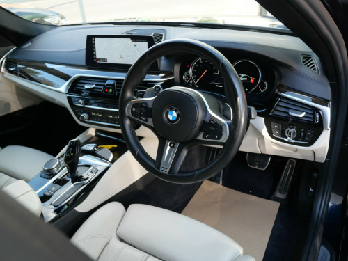 Stunning Well Specked BMW 530d M Sport Auto In Carbon Black Metallic With Full Dakota Ivory Leather & Full Service History, 9.9% APR Finance Available. Buy This Car Online Using Our Simple Click & Collect Service Or Free Home Delivery Within A 60 Mile Radius (Longer distance Delivery Charges Apply) All Vehicles Are Sanitised Before Collection Or Delivery. in alloy wheels - m light m double spoke - 664m, active air stream kidney grille, all round anti-corrosion system, electric windows - front and rear with open-close fingertip control - anti-trap facility and comfort closing function, engine cover with twinpower turbo designation, exhaust tailpipes - single - left and right - chrome - quadrilateral, exterior door handle illumination, exterior mirrors - electrically adjustable and heated includes integrated direction indicators, exterior trim - high gloss shadowline, locking wheel bolts - thatcham approved, m aerodynamic bodystyling, m designation on front side panels - left and right, m sport package, run flat tyres, windscreen washer jets - heated, 20gb hard disc drive hdd memory, access to bmw connected plus (12 month subscription from new), bmw connecteddrive online services, bmw connecteddrive services, bmw emergency call, bmw professional radio with single cd player - mp3 and dvd playback compatibility, bmw teleservices, bluetooth hands free with usb audio interface, control display - 10.25in colour touch sensitive display screen, dab digital radio, navigation system - bmw professional multimedia, power sockets 12v - 2x front - 1x rear, real time traffic information, active guard, airbags, alarm system - thatcham 1 with remote control and engine immobiliser, anti roll bars - front and rear, child seat isofix attachment two in rear - includes top tether, crash sensor - activating central locking - hazard warning lights - fuel cut off - interior lights, dsc - dynamic stability control - stabilises the vehicle in extreme situations - controls traction, deformation zones - front and rear, electro mechanical parking brake with automatic drive-away and auto-hold function, first aid kit and warning triangle, head restraints - front anti-whiplash, remote control locking, seat belts - front - inertia reel with pyrotechnical belt latch tensioner - belt force limiter and belt restrainer, seat belts - rear - three with inertia reel, side impact protection, speed limit function, air conditioning - automatic, ambient lighting, armrests, battery in luggage compartment with jump start facility in engine bay, cup holders - front x2 and rear x2, digital cockpit, door sill inlays - bmw m designation illuminated, favourite buttons, footwell lights - front and rear, glove compartment - lockable and illuminated, headlining - anthracite, instrument panel in sensatec - artificial leather, interior rear-view mirror with automatic anti-dazzle function, interior trim - aluminium rhombicle with highlight trim finishers pearl chrome, m specific floor mats, m specific key, m specific pedals, m specific steering wheel, m sport multi-function leather steering wheel - three-spoke, multi-functional instrument panel, rain sensor with automatic headlight activation, reading lights - front and rear, seat heating - front, seats - front with partial electric adjustment, sport seats - front, steering column with adjustable height and length - activation via lateral lever on steering column, two tone horn, brake force display, cruise control with brake function, drive performance control with eco pro - comfort and sport modes, eps - electric power steering with servotronic, m sport braking system, m sport suspension, obc - on-board computer, obd - on board diagnosis, oil sensor for level and grade, pdc - park distance control - front and rear, sport automatic transmission, tpms - tyre pressure monitoring system, idrive touch controller with shortcut buttons, daytime running lights - led, dynamic brake lights with led technology, follow me home headlight function, led fog lights - front, led headlights