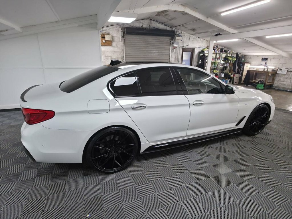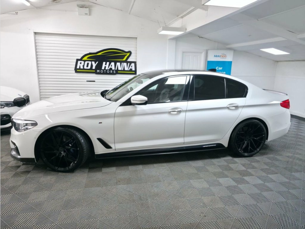 A truly beautiful & practical 2017 BMW 530d M Sport with M-Performance kit just arrived at Roy Hanna Motors! 2 Keys. This car will be sold with a full years MOT! A great service history with digital records at - ~ 15,334 miles. ~ 27,513 miles. ~ 40,550 miles. ~ 53,687 miles. ~ 66,489 miles. ~ 79,772 miles. We will service this vehicle along with a full pre-delivery inspection for its new owners. *Brand new alloy wheels and tyres shown in pictures are an optional extra* * We have a variety of wheels to chose from for each vehicle* Packed full of factory extras like - ~ iDrive controller and display with 6.5" monitor. ~ On board computer. ~ Heated front seats. ~ Tinted windows. ~ Front & rear parking sensors. ~ Check control system. ~ Enhanced Bluetooth telephone functionality. ~ Dual zone automatic air conditioning. ~ Full leather interior. ~ Electric tailgate. ~ Heated front seats. ~ Remote central locking. ~ Cruise, Climate and traction controls. ~ Steering wheel mounted controls. ~ AUX & USB connectivity. ~ CD/Radio Player. ~ Body Coloured Bumpers. ~ Electric windows. *We Have Many Different Finance HP & PCP Deals Available To Suit Your Budget, You Can Drive Away In Your New Car With £0 Deposit & Pay Nothing For 2 Full Months! *For A Personalised Quote Give Us A PM / Text / Call Or Propose Yourself For Finance On Our Website *All Usual Dealer Facilities Available. *Credit/Debit Cards Accepted. *Trade Ins Welcome. *Every Vehicle 19in Alloy Wheels - M Light M Double Spo, 20GB HDD Memory, 20in Alloy Wheels - BMW Individual Light, Active Air Stream Kidney Grille, Active Guard, Air Conditioning - Automatic - Dual Zone, Airbags, Alarm System - Thatcham 1 with Remote Co, Alpine White, Ambient Lighting, Anti Roll Bars - Front and Rear, Apple CarPlay Preparation, Armrests, Battery in Luggage Compartment with Jump, Bluetooth Hands Free with USB Audio Inte, BMW ConnectedDrive Online Services, BMW ConnectedDrive Services, BMW Display Key, BMW Emergency Call, BMW Professional Radio with Single CD Pl, BMW TeleServices, Brake Force Display, Child Seat ISOFIX Attachment for the Two, Control Display - 10.25in Colour Touch S, Crash