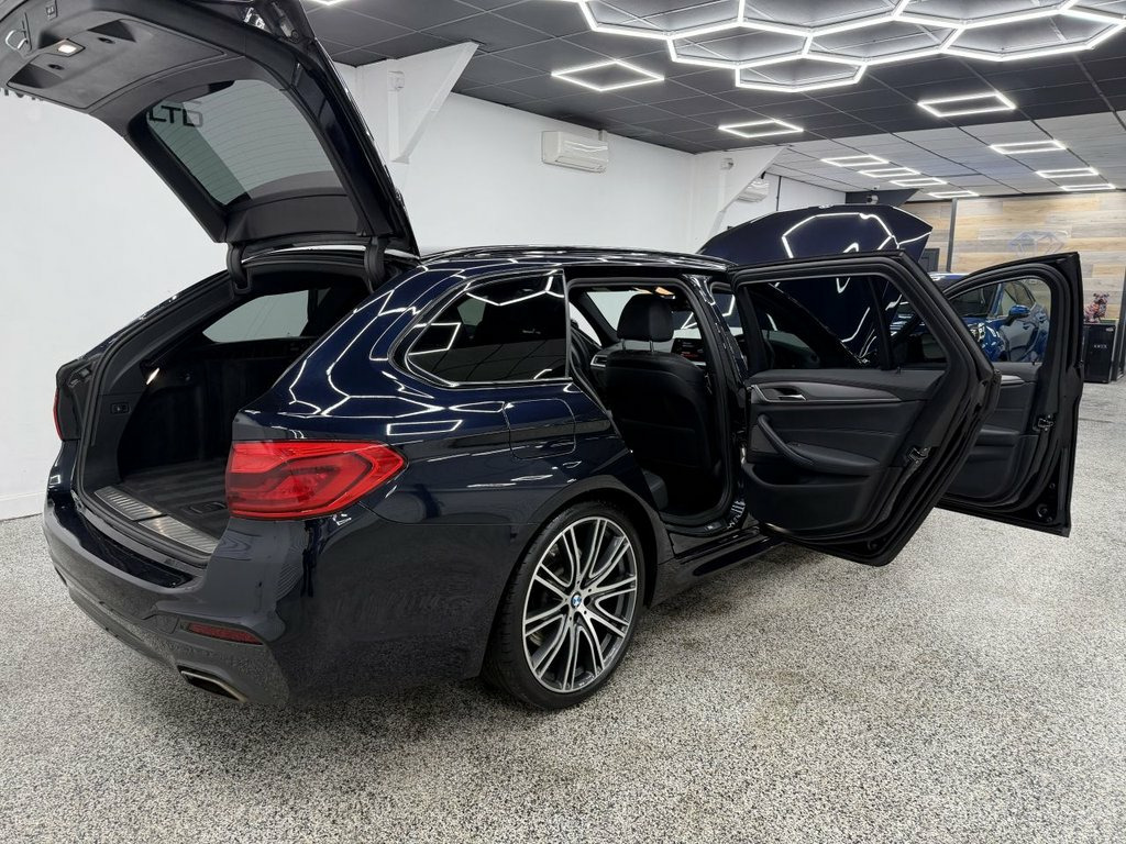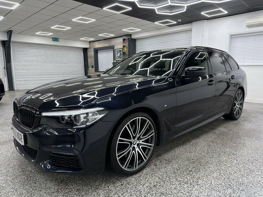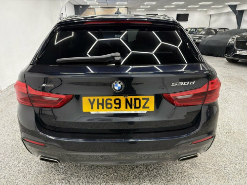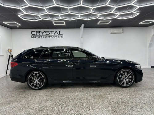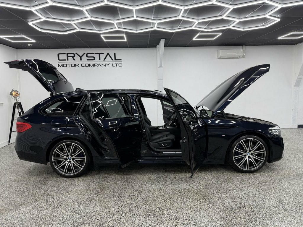 Crystal motor company are delighted to offer for sale this beautifully presented 2019 BMW 5 SERIES 3.0 530d M Sport Touring 5dr Diesel Auto xDrive Euro 6 (s/s) (265 ps) finished in CARBON BLACK. This car comes with TWO KEYS, ONE DISPLAY KEY, TWO FORMER KEEPER, FULL BMW SERVICE HISTORY. This car is equipped with 20" ALLOY WHEELS, M SPORT BRAKES, FRONT AND REAR PARKING SENSORS, REAR REVERSING CAMERA, ELECTRIC REAR TAILGATE, ELECTRIC FOLDING WING MIRRORS, REAR PRIVACY GLASS, BLACK LEATHER SEATS, ELECTRIC FRONT SEATS, MEMORY DRIVERS SEAT, HEATED FRONT SEATS, PADDLE SHIFT, CRUISE CONTROL, HEATED STEERING WHEEL, VIRTUAL COCKPIT, HEADS UP DISPLAY, AMBIENT LIGHTING (6 COLOUR CHOICE), HARMAN KARDON SOUND SYSTEM, DAB RADIO, BLUETOOTH AUDIO, BLUETOOTH PHONE CONNECTION, SATNAV. The car is 100% HPi clear. Part exchange and finance are available and all major credit and debit cards accepted. Crystal Motor Company Ltd Used Programme includes a full PDI inside and out, MOT, mileage certificate and a full inside and out valet. You can request a personalised video with attention given to any specifics you would like a better view of and we will be pleased to assist you. Likewise, we offer our customers a free collection service. Our journey began in 1996 with the aim to deliver the best possible customer experience, you will enjoy a completely hassle free approach, no pressure and great prices, values we stand by to this day. Looking to finance your next car? We have over 30 lenders on 20GB Hard Disc Drive HDD Memory, 20in Alloy Wheels - BMW Individual Light, Acoustic Glazing, Active Air Stream Kidney Grille, Active Guard, Air Conditioning - Automatic - Dual Zone, Airbags, Alarm System - Thatcham 1 with Remote Co, All Round Anti-Corrosion System, Ambient Lighting, Anti Roll Bars - Front and Rear, Armrests, Automatically Retracting and Lowering Lo, Battery in Luggage Compartment with Jump, Bluetooth Hands Free with USB Audio Inte, BMW ConnectedDrive Online Services, BMW ConnectedDrive Services, BMW Display Key, BMW Gesture Control, BMW Professional Radio with Single CD Pl, BMW TeleServices, Brake Force Display, Carbon Black, Child Seat ISOFIX Attachment - Outer Rea, Comfort