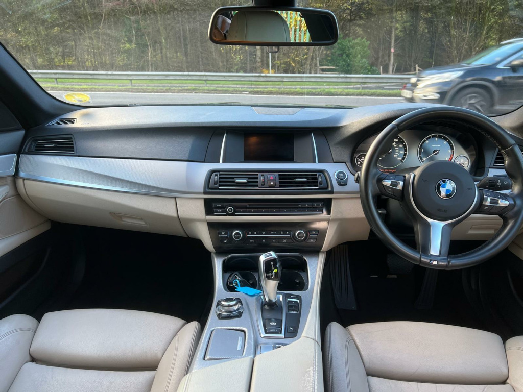 This 2015 BMW 5 Series 530d M Sport is presented with a clear vehicle history check and has had only two owners, benefiting from a full service history. This Euro 6 compliant model features a powerful 3.0L diesel engine and comes with a 6 month warranty for your peace of mind. Notable features include Adaptive LED headlights, 12V power sockets, a BMW Advanced speaker system, extended storage solutions, and a through loading ski bag, all contributing to a refined driving experience.The M Sport trim enhances the already impressive 5 Series, offering a dynamic driving feel and a striking appearance. Its acceleration is a particular highlight, achieving 0-62mph in just 5.9 seconds, demonstrating its potent performance. Furthermore, the generous boot space ensures practicality for everyday use and longer journeys, making this BMW 530d M Sport a compelling choice that stands out from other vehicles in its class.. 12V Power Socket - Front, 12V Power Socket - Rear of Centre Console, 18in Alloy Wheels - Light M Double Spoke Style - 613M, 40-20-40 Split Folding Rear Seats, ABS - Anti Lock Braking System, ASC - Automatic Stability Control, Air Conditioning - Automatic with Extended Features, Air Microfilter, Airbags - Curtain Head Protection system, Airbags - Driver, Airbags - Front Side, Airbags - Passenger, Airbags - Passenger Deactivation, Alarm - Thatcham Cat 1 and Immobiliser, Ambient Lighting - Switchable BMW Classic Orange - Cold White - LED, Armrest - Front with Storage Compartment, Armrest - Rear Centre, Automatically Dimming Rear View Mirror, Auxiliary Input, BMW Emergency Call, BMW Navigation Business System, BMW Professional Radio - Single CD and MP3, BMW TeleServices, Bluetooth Hands Free with Audio Streaming, Bluetooth Hands Free with USB Audio Interface, Brake Drying, Brake Fade Compensation, Brake Pad Wear Indicator, Brake Pre-Tensioning, Bumpers - Body Colour, CBC - Cornering Brake Control, Central Locking - Remote, Child Proof Locking System - Rear Doors, Comfort Go Keyless Start, Crash Sensor, Cruise Control with Brake Function, Cup Holders - Front and Rear, DAB - Digital Radio, DBC - Dynamic Brake Control, DTC - Dynamic Traction Control, Display - 6.5in Colour Screen, Door Handles - Body Colour, Door Mirrors - Body Coloured Housing, Door Mirrors - Electric and Heated - Aspheric Drivers Side, Door Sill Finishers - Illuminated, Drive Performance Control with ECO PRO - Comfort and Sport Modes, Dynamic Brake Lights, EBD - Electronic Brake-Force Distribution, Electric Windows - Front and Rear with Fingertip Control and Anti Pinch, Electro Mechanical Parking Brake, Exterior Trim - Chromeline, Exterior Trim - High-Gloss Shadowline, First Aid Kit, Floor Mats - Velour, Footwell Lights - Front, Full Black Panel Display, Headlight Range Control - Electric, Headlight Wash, Headlights - Auto On, Headlining - M Anthracite, Hill Start Assistant, ISOFIX - Rear, Interior Trim - Aluminium Hexagon, Kidney Grille - Chrome with Chrome Vertical Slats, LED Fog Lights - Front, Luggage Compartment - Automatically Retracting and Lowering Load Cover, Luggage Compartment - Dividing Net - Retractable, M Aerodynamics Package, M Sport Package, Navigation System - BMW Business Advanced, OBC - On Board Computer, PDC - Park Distance Control - Front, PDC - Park Distance Control - Front and Rear, PDC - Park Distance Control - Rear, Passenger Seat Occupancy Sensor - Front, Personal Profile, Power Steering - Electric with Servotronic, Rain Sensor with Automatic Headlight Activation, Roof Rails - Matt Aluminium, Run Flat Tyres, Seat Adjustment - Front - Part Electric, Seats - Front Heated, Seats - Front Sports, Seats - Height Adjustable Drivers, Securing Rings in Luggage Compartment x4, Self-levelling Air Suspension - Rear, Shark Fin Aerial, Smokers Package, Speakers x6, Speed Limit Function, Steering Column - Reach and Rake Manual Adjustment, Steering Wheel - Leather - M Sport, Steering Wheel - Multifunction Controls, Sun Visors with Illuminated Vanity Mirrors, Suspension - M Sport, TPMS - Tyre Pressure Monitoring System, Tailgate Operation - Powered, Tailgate Window - Independently Opening, Toolkit, USB Connection, Wheels - Locking Wheel Nuts, Windows - Heated Protection Glazing with Green Tint, Windscreen Washer Jets - Heated, Xenon Headlights, iDrive Controller with Shortcut Buttons, Remote Services, Roof Rails - High-Gloss Shadowline, Dakota Leather with Exclusive Stitching - Oyster with Black Interior, 12V Power Sockets, Speaker System - BMW Advanced, Headlights - Adaptive LED, Roof Rails - Black, Sun Protection Glazing, Extended Storage, Through-Loading Ski Bag. Full service history