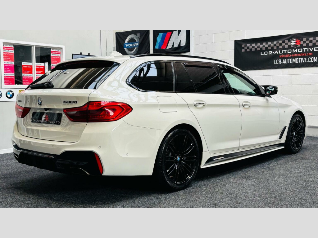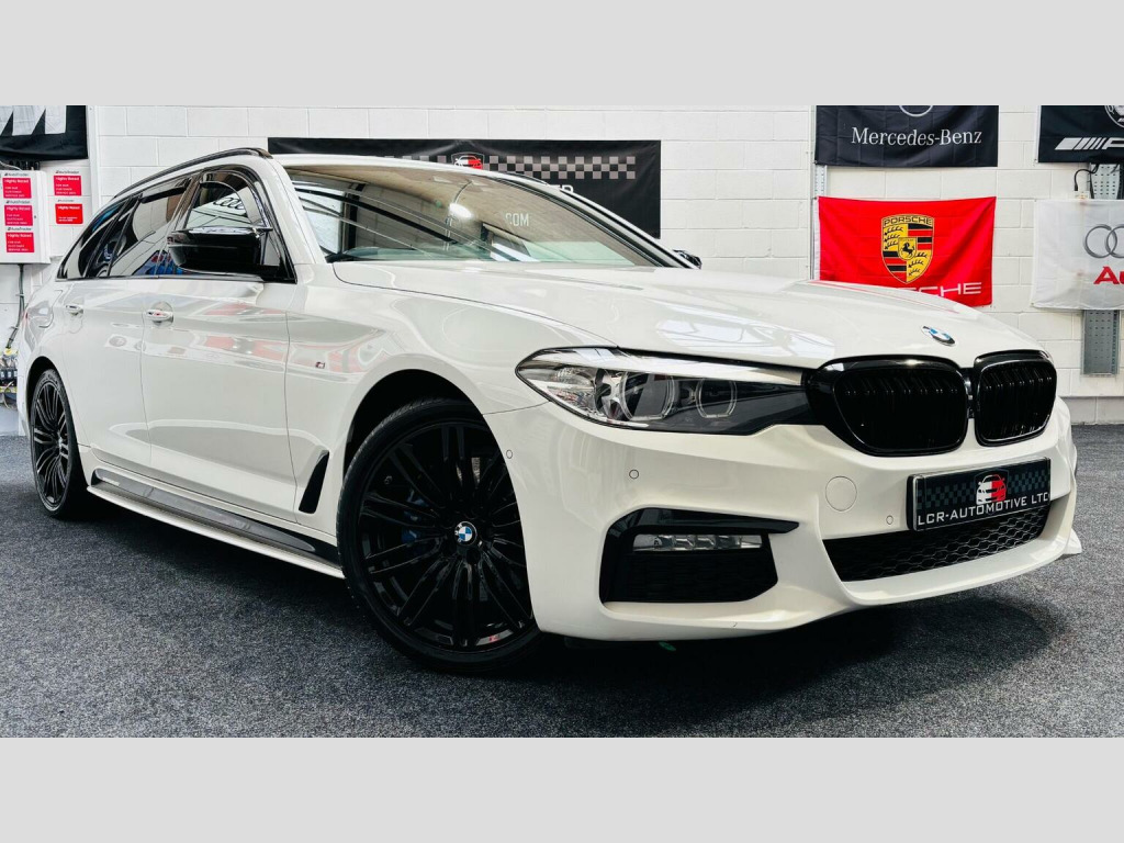 WOW!! GREAT SPEC!!, GREAT PRICE!, Alpine White, Black Dakota Heated Leather, (FINANCE THIS CAR WITH LCR P/X WELCOME) LCR-AUTOMOTIVE LTD Are proud to offer this stunning BMW 5 Series 530d M Sport Touring xDrive Auto Euro 6 Finshed In Alpine White with contrasting Black Dakota Heated Leather Seats with Exclusive Grey Contrast Stitching. 19 High Glass Black Alloys, Black Rear Defusr, Black Front Grille. , Boasting an MOT valid until January 2027 and a comprehensive service history with the last service completed on 2026-02-12 at 88530 miles, this 2017 BMW 5 Series 530d M Sport is presented in excellent condition. This Euro 6 compliant model features a powerful 3.0L Diesel engine paired with Four Wheel Drive, offering a dynamic driving experience. Notable features include Enhanced Bluetooth Telephone Preparation with Wireless Charging, a Reversing Assist Camera with Parking Assistance, and PDC Park Distance Control for both front and rear. You will also benefit from Bluetooth Hands Free with USB Audio Interface and Voice Control, alongside a Rain Sensor with Automatic Headlight Activation. 2 Keys are supplied along with a Handbook pack, 2 New Rear Tyres have just been fitted and replacement drive shaft boots have been fitted as they were advised on the last MOT. , This BMW 5 Series stands out with its Glass Black Alloys , door Mirrors, front Grille and Rear Defuser, With very impressive acceleration, achieving 0-62mph in just 5.6 seconds, demonstrating its performance capabilities. The M Sport trim enhances its sporty appeal and handling. Furthermore, this vehicle offers a generous boot space, making it practical for everyday use and longer journeys. Its low insurance group rating also indicates that running costs are kept competitive compared to similar vehicles. A 6 month warranty is included for your peace of mind. WE ARE VERY PROUD TO BE AWARDED THE VERY PRESTIGIOUS AUTOTRADER HIGHLY RATED AWARD FOR CUSTOMER SERVICE FOR THE 5TH CONSECUTIVE YEAR AND PLEASE CHECKOUT ALL OF OUR 5 STAR GOOGLE AND AUTOTRADER CUSTOMER REVIEWS TO GIVE YOU CONFIDENCE IN US AND OUR CARS.