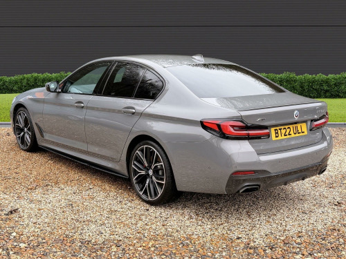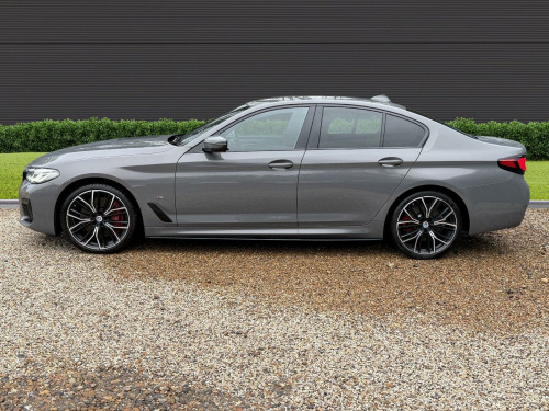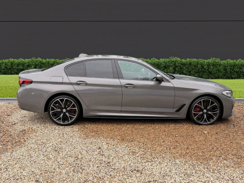 This 2022 BMW 5 Series 530d M Sport is presented with a clear vehicle history check, offering peace of mind for its next owner. This four wheel drive model features a powerful 3.0 litre diesel hybrid engine, meeting Euro 6 emission standards. The M Sport trim enhances its sporty appeal, complemented by striking 20 inch M Light Y-Spoke Style 846 Bicolour Jet Black alloy wheels fitted with run flat tyres. Inside, you will find the premium Harman Kardon Surround Audio Sound System for an immersive listening experience, alongside the comprehensive Driving Assistant Professional( Adaptive cruise control, Lane assistant, Blind spot monitoring)and Visibility Pack which includes LED headlights, ensuring excellent illumination and advanced safety, Exclusive Mocha nappa leather interior, Comfort seats for long trips, Adaptive suspension.The M Sport Pro Package further refines the driving dynamics and aesthetic of this already impressive vehicle. Experience exhilarating performance with an acceleration of 0 to 62 miles per hour in just 5.4 seconds, demonstrating its capability. This BMW 5 Series also boasts generous boot space, making it a practical choice for everyday use and longer journeys alike. These features collectively highlight how this 530d M Sport offers a superior driving experience and a higher level of specification compared to other vehicles in its class.. 19in Alloy Wheels - M Light Y-Spoke Style 845 Bicolour Jet Black with Mixed Tyres, 32GB Hard Disc Drive HDD Memory, Active Air Stream Kidney Grille - High Gloss Black, Active Guard, Air Conditioning - Automatic - Two-Zone, Airbags, Alarm System - Thatcham 1 with Remote Control and Engine Immobiliser, All Round Anti-Corrosion System, Ambient Lighting, Armrests, Automatic Start-Stop Button, Automatic Windscreen Wiper and Headlights, BMW Connected Package Professional, BMW ConnectedDrive Online Services, BMW Individual Headliner - Anthracite, BMW Individual High-Gloss Shadowline, BMW Live Cockpit Professional, BMW TeleServices, Brake Pad Wear Indicator, Child Seat ISOFIX Attachment - Outer Rear Seats - includes Top Tether, Chrome Trim, Crash Sensor - Activating Central Locking - Hazard Warning Lights - Fuel Cut Off - Interior Lights, Cruise Control, Cup Holders - Front x2 and Rear x2, DAB Digital Radio, DSC - Dynamic Stability Control - Stabilises the Vehicle in Extreme Situations - Controls Traction, Daytime Running Lights - LED, Deformation Zones - Front and Rear, Drive Performance Control with ECO PRO - Comfort and Sport Modes, Driving Experience Switch, Dynamic Brake Lights, EPS - Electric Power Steering with Servotronic, Electric Memory Seats, Electric Windows - Front and Rear with Open-Close Fingertip Control - Anti-Trap Facility and Comfort Closing Function, Electro-Mechanical Parking Brake with Automatic Drive-Away Release and Auto-Hold Function, Engine Cover with TwinPower Turbo Designation, Exhaust Tailpipe - Visible - Trapezoidal, Expanded Exterior Mirror Package, Exterior Door Handle Illumination, Exterior Mirrors - Electrically Adjustable and Heated Includes Integrated Direction Indicators and Automatic Parking Function, Favourite Buttons, First Aid Kit and Warning Triangle, Floor Mats - Velour, Follow Me Home Headlight Function, Footwell Lights - Front and Rear, Glove Compartment - Lockable and Illuminated, Head Restraints - Front Anti-Whiplash, Instrument Panel in Sensatec - Artificial Leather, Intelligent Emergency Call, Interior Lighting, Interior Rear-View Mirror with Automatic Anti-Dazzle Function, Interior Trim - Aluminium Rhombicle Smoke Grey with Highlight Trim Finisher Pearl Chrome, LED Headlights, Locking Wheel Bolts, Lumbar Support - Driver and Front Passenger, M Aerodynamics Package, M Designation on Front Side Panels - Left and Right - Chrome, M Door Sill Finishers, M Leather Steering Wheel, M Specific Floor Mats, M Specific Pedals, M Sport Brakes with Blue Calipers, M Sport Package, M Sport Suspension, Multi-Function Controls for Leather Steering Wheel, Multi-Functional Instrument Panel, OBC - On-Board Computer, OBD - On Board Diagnosis, Oil Sensor For Level and Grade, Parking Assistant, Passive Protection for Pedestrians, Power Sockets 12V - 1x Front - 1x Rear, Preparation For High-Beam Assistant, Reading Lights - Front, Rear Doors with Mechanical Childproof Lock, Seat Heating - Front, Side Impact Protection, Speed Limit Function, Sport Seats - Front, Steering Column with Adjustable Height and Length - Activation via Lateral Lever on Steering Column, Steptonic Transmission with Gearshift Paddles - 8-Speed with Steptronic Manual Gearshifting by Means of Paddles on the Steering Wheel, Stereo Speaker System, TPMS - Tyre Pressure Monitoring System, Third LED Brake Light, Three-Point Seat Belts, Two Tone Horn, Tyre Repair Kit, Windscreen Washer Jets - Heated, iDrive Touch Controller with Shortcut Buttons, xDrive Designation on Tailgate, Comfort Package, M Sport Pro Package, Technology Package, Driving Assistant Professional, Visibility Pack, 20in Alloy Wheels - M Light Y-Spoke Style 846 Bicolour Jet Black with Mixed Tyres and Run Flat Tyres, Harman Kardon Surround Audio Sound System, 40-20-40 Split Folding Rear Seats, Sun Protection Glass, Interior Trim - Fine-Wood Trim Ash Trunkwood Open-Pored with Highlight Trim Finisher Pearl Chrome, Steering Wheel - Heated, M Sport Brake - High-Gloss Red Painted Brake.