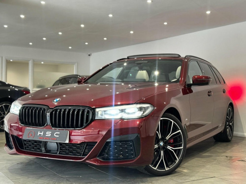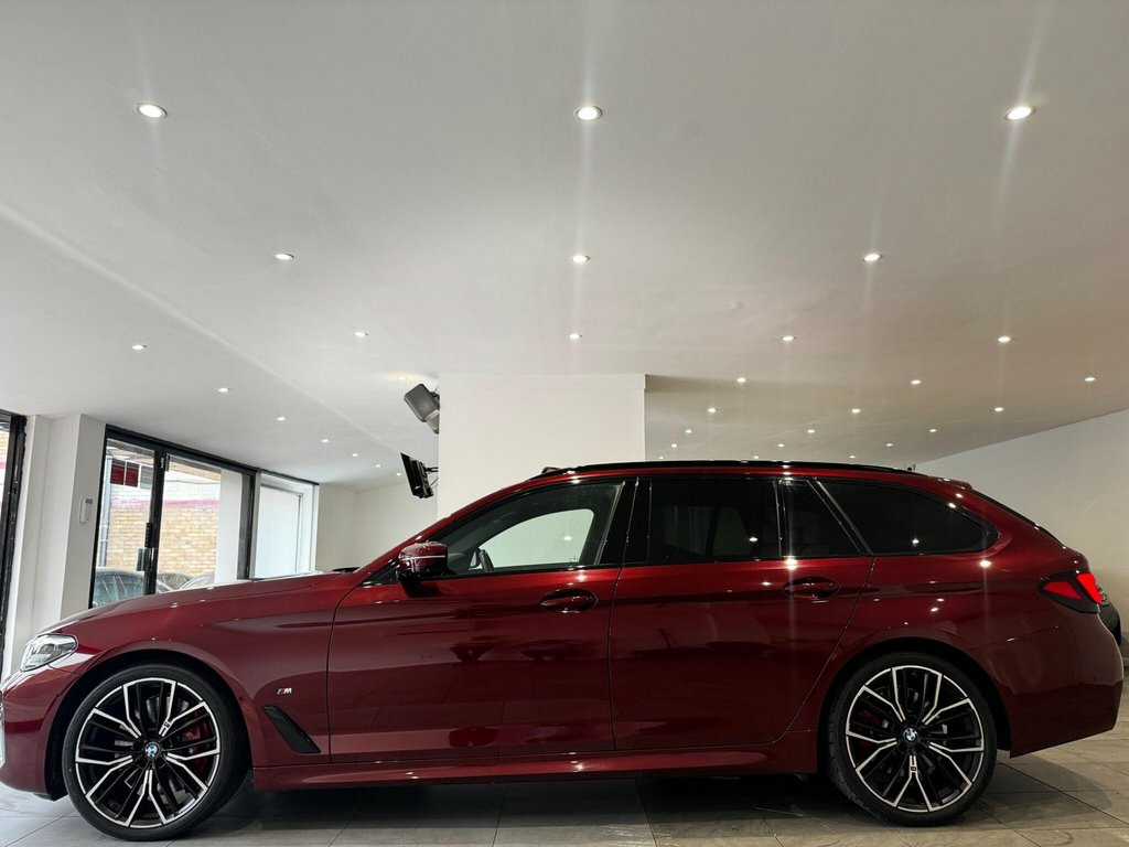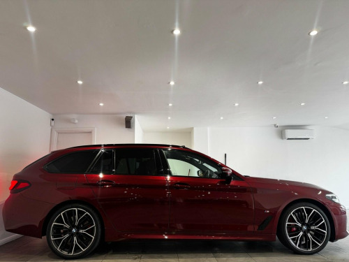 This 2022 BMW 530d M Sport, presented in excellent condition in an Individual paint colour called Aventurine red metallicwith a clear vehicle history check, offers a compelling blend of performance and refinement. Powered by a potent 3.0L Diesel Hybrid engine and featuring Four Wheel Drive for assured handling in all conditions, this Euro 6 compliant model is equipped with the desirable M Sport Pro Package. Notable features include a striking Panoramic Glass Sunroof, a premium Harman Kardon Surround Audio Sound System for an immersive listening experience, and advanced Driving Assistant Professional for enhanced safety and convenience. The vehicle also boasts stylish 20 inch M Light Y-Spoke Style 846 Bicolour Jet Black alloy wheels fitted with mixed and run flat tyres. Beyond its impressive specifications, this BMW 5 Series provides a truly elevated driving experience. The inclusion of the Panoramic Glass Sunroof, which opens for added enjoyment, and the exceptional Harman Kardon audio system clearly distinguish it from other vehicles in its class. Furthermore, the generous boot space ensures practicality for everyday use and longer journeys, making this 530d M Sport a well rounded and desirable executive saloon. 19in Alloy Wheels - M Light Y-Spoke Styl, 20in Alloy Wheels - M Light Y-Spoke Styl, 32GB Hard Disc Drive HDD Memory, 40-20-40 Split Folding Rear Seats, Active Air Stream Kidney Grille - High G, Active Guard, Air Conditioning - Automatic - Two-Zone, Airbags, Alarm System - Thatcham 1 with Remote Co, All Round Anti-Corrosion System, Ambient Lighting, Armrests, Automatic Powered Electric Bootlid, Automatic Start-Stop Button, Automatic Windscreen Wiper and Headlight, BMW Connected Package Professional, BMW ConnectedDrive Online Services, BMW Individual Headliner - Anthracite, BMW Individual High-Gloss Shadowline, BMW Individual Roof Rails High-Gloss Sha, BMW Live Cockpit Professional, BMW TeleSe