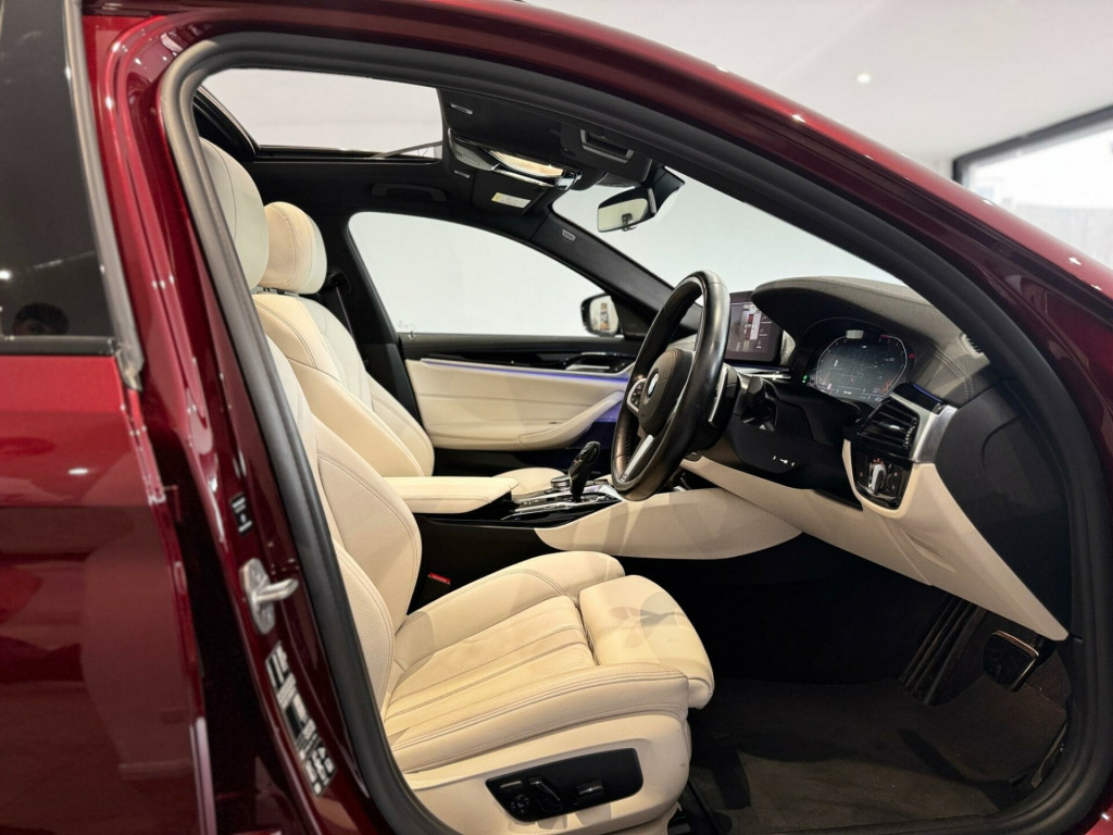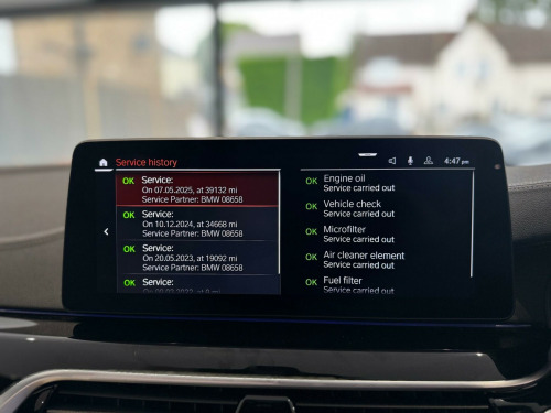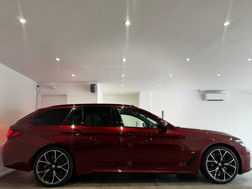 This 2022 BMW 530d M Sport, presented in excellent condition in an Individual paint colour called Aventurine red metallicwith a clear vehicle history check, offers a compelling blend of performance and refinement. Powered by a potent 3.0L Diesel Hybrid engine and featuring Four Wheel Drive for assured handling in all conditions, this Euro 6 compliant model is equipped with the desirable M Sport Pro Package. Notable features include a striking Panoramic Glass Sunroof, a premium Harman Kardon Surround Audio Sound System for an immersive listening experience, and advanced Driving Assistant Professional for enhanced safety and convenience. The vehicle also boasts stylish 20 inch M Light Y-Spoke Style 846 Bicolour Jet Black alloy wheels fitted with mixed and run flat tyres.Beyond its impressive specifications, this BMW 5 Series provides a truly elevated driving experience. The inclusion of the Panoramic Glass Sunroof, which opens for added enjoyment, and the exceptional Harman Kardon audio system clearly distinguish it from other vehicles in its class. Furthermore, the generous boot space ensures practicality for everyday use and longer journeys, making this 530d M Sport a well rounded and desirable executive saloon. in alloy wheels - m light y-spoke style 845 bicolour jet black with mixed tyres, 32gb hard disc drive hdd memory, 40-20-40 split folding rear seats, active air stream kidney grille - high gloss black, active guard, air conditioning - automatic - two-zone, airbags, alarm system - thatcham 1 with remote control and engine immobiliser, all round anti-corrosion system, ambient lighting, armrests, automatic powered electric bootlid, automatic start-stop button, automatic windscreen wiper and headlights, bmw connected package professional, bmw connecteddrive online services, bmw individual headliner - anthracite, bmw individual high-gloss shadowline, bmw individual roof rails high-gloss shadow line, bmw live cockpit professional, bmw teleservices, brake pad wear indicator, child seat isofix attachment - outer rear seats - includes top tether, chrome trim, crash sensor - activating central locking - hazard warning lights - fuel cut off - interior lights, cruise control, cup holders - front x2 and rear x2, dab digital radio, dsc - dynamic stability control - stabilises the vehicle in extreme situations - controls traction, daytime running lights - led, deformation zones - front and rear, drive performance control with eco pro - comfort and sport modes, driving experience switch, dynamic brake lights, eps - electric power steering with servotronic, electric memory seats, electric windows - front and rear with open-close fingertip control - anti-trap facility and comfort closing function, electro-mechanical parking brake with automatic drive-away release and auto-hold function, engine cover with twinpower turbo designation, exhaust tailpipe - visible - trapezoidal, expanded exterior mirror package, exterior door handle illumination, exterior mirrors - electrically adjustable and heated includes integrated direction indicators and automatic parking function, favourite buttons, first aid kit and warning triangle, floor mats - velour, follow me home headlight function, footwell lights - front and rear, glove compartment - lockable and illuminated, head restraints - front anti-whiplash, instrument panel in sensatec - artificial leather, intelligent emergency call, interior lighting, interior rear-view mirror with automatic anti-dazzle function, interior trim - aluminium rhombicle smoke grey with highlight trim finisher pearl chrome, led headlights, locking wheel bolts, luggage compartment separating net, lumbar support - driver and front passenger, m aerodynamics package, m designation on front side panels - left and right - chrome, m door sill finishers, m leather steering wheel, m specific floor mats, m specific pedals, m sport braking system, m sport package, m sport suspension, multi-function controls for leather steering wheel, multi-functional instrument panel, obc - on-board computer, obd - on board diagnosis, oil sensor for level and grade, parking assistant, passive protection for pedestrians, power sockets 12v - 1x front - 1x rear, preparation for high-beam assistant, reading lights - front, rear doors with mechanical childproof lock, seat heating - front, side impact protection, speed limit function, sport seats - front, steering column with adjustable height and length - activation via lateral lever on steering column, steptonic transmission with gearshift paddles - 8-speed with steptronic manual gearshifting by means of paddles on the steering wheel, stereo speaker system, tpms - tyre pressure monitoring system, tailgate window - independently opening, third led brake light, three-point seat belts, two tone horn, tyre repair kit, windscreen washer jets - heated, idrive touch controller with shortcut buttons, xdrive designation on tailgate, m sport pro package, driving assistant professional, panoramic glass sunroof, 20in alloy wheels - m light y-spoke style 846 bicolour jet black with mixed tyres and run flat tyres, harman kardon surround audio sound system, interior trim - bmw individual - piano black, sun protection glass, m sport brake - high-gloss red painted brake calipers with m designation, dakota leather - ivory white with black interior