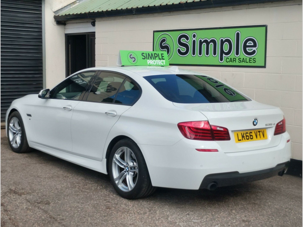 We are delighted to offer for sale and new in to stock this superb BMW 5 Series 3.0 535d M Sport Auto Euro 6 (s/s) 4dr, finished in stunning White, with Contrasting Full Black Leather Interior. These really are fantastic cars to drive, with lots of power, superb handling and they benefit from modern and up to date interior and equipment. It is also very comfortable, which is complimented superbly by the smooth engine and gearbox, excellent road holding, an all round, very well balanced car. As you can see from the pictures it is a great looking car in lovely condition both inside and out - it is a credit to the previous owner! It comes with a 12 month MOT (with no outstanding advisories) and it will have a full service before it goes. It has a excellent service history, it has four new tyres and it drives faultlessly. Engine, gearbox, brakes and exhaust are all working perfectly, leaving the new owner needing to spend nothing on it for the foreseeable future. The car comes with an excellent specification to include; it has the following; Full Black Leather Interior, M Sport Styling, Sat Nav, Bluetooth phone, Alloy wheels, Heated Seats, Privacy Glass, Power Tailgate, plus much more. The car comes with a 3 month ''Simple Protect'' warranty which can be extended up to 12 months, should you wish. Part exchanges are welcome and we offer an excellent range or finance options. We can also arrange delivery directly to your door. In summary this car is beautifully specified and represents excellent value for money. If you would like further information feel free to get in touch.. 12V Power Socket - Front, 12V Power Socket - Rear of Centre Console, 18in Alloy Wheels - Light M Double Spoke Style - 613M, ABS - Anti Lock Braking System, ASC - Automatic Stability Control, Air Conditioning - Automatic with Extended Features, Air Conditioning - Automatic with Two-Zone Control, Air Microfilter, Airbags - Curtain Head - Front, Airbags - Curtain Head - Rear, Airbags - Driver, Airbags - Front Side, Airbags - Passenger, Airbags - Passenger Deactivation, Alarm System Thatcham 1 with Remote Control, Ambient Lighting - Switchable BMW Classic Orange - Cold White - LED, Armrest - Front with Storage Compartment, Armrest - Rear Centre, Automatically Dimming Rear View Mirror, Auxiliary Input, BMW ConnectedDrive Services, BMW Emergency Call, BMW Navigation Business System, BMW Professional Radio - Single CD and MP3, BMW TeleServices, Battery in Luggage Compartment, Bluetooth Hands Free Facility, Bluetooth Hands Free with Audio Streaming, Brake Drying, Brake Fade Compensation, Brake Pad Wear Indicator, Brake Pre-Tensioning, Bumpers - Body Colour, CBC - Cornering Brake Control, Central Locking - Remote, Check Control Warning System, Child Proof Locking System - Rear Doors, Child Seat ISOFIX Attachment - Rear x2, Courtesy Lights - Front and Rear with Soft On-Off Dimming, Crash Sensor, Crash Sensor - Activating Central Locking-Hazard Warning Lights-Fuel Cut Off, Cruise Control with Brake Function, Cup Holders - Front, Cup Holders - Rear x2, DAB - Digital Radio, DBC - Dynamic Brake Control, DSC - Dynamic Stability Control Plus, DTC - Dynamic Traction Control, Display - 6.5in Colour Screen, Door Handles - Body Colour, Door Mirrors - Body Coloured Housing, Door Mirrors - Electric and Heated - Aspheric Drivers Side, Door Sill Finishers - Illuminated, Drive Performance Control with ECO PRO - Comfort and Sport Modes, Dynamic Brake Lights, EBD - Electronic Brake-Force Distribution, Electric Windows - Front and Rear with Fingertip Control and Anti Pinch, Electro Mechanical Parking Brake, Engine Immobiliser, Exhaust Tailpipes - Single - Left and Right - Dark Chrome, Exterior Trim - High-Gloss Shadowline, Favourite Buttons, First Aid Kit, Floor Mats - Velour, Fogging Sensor - Front Windscreen, Footwell Lights - Front, Full Black Panel Display, Glove Compartment, Headlight Range Control - Electric, Headlight Wash, Headlights - Auto On, Headlining - M Anthracite, Hill Start Assistant, Incorrect Fuelling Protection System, Indicator Lenses - Clear, Interior Trim - Aluminium Hexagon, Keyless Start, Kidney Grille - Chrome with Chrome Fronted and Black Sided Vertical Slats, LED Fog Lights - Front, Luggage Compartment - Electric Unlocking via the Keys Remote Control, Luggage Compartment - Release Button in A-Pillar, M Aerodynamic Bodystyling, M Sport Package, Navigation System - BMW Business Advanced, OBC - On Board Computer, OBD - On Board Diagnosis, Outside Temperature Display, PDC - Park Distance Control - Front, PDC - Park Distance Control - Front and Rear, PDC - Park Distance Control - Rear, Passenger Seat Occupancy Sensor - Front, Personal Profile, Power Steering - Electric with Servotronic, Rain Sensor, Reading Lights - Front and Rear, Run Flat Tyres, Seat Adjustment - Front - Part Electric, Seats - Front Heated, Seats - Front Sports, Seats - Height Adjustable Drivers, Securing Rings in Luggage Compartment x4, Shark Fin Aerial, Side Exterior M Designation Badges, Smokers Package, Speakers x6, Speed Limit Function, Start-Stop Button with Keyless Operation, Steering Column - Reach and Rake Manual Adjustment, Steering Wheel - Leather - M Sport, Steering Wheel - Multifunction Controls, Sun Visors with Illuminated Vanity Mirrors, Suspension - M Sport, TPMS - Tyre Pressure Monitoring System, Tool Kit Located in Luggage Compartment, Traffic Jam Assistant, USB Connection, Warning Triangle, Wheels - Locking Wheel Nuts, Windows - Heated Protection Glazing with Green Tint, Windscreen Washer Jets - Heated, Xenon Headlights, iDrive Controller with S.