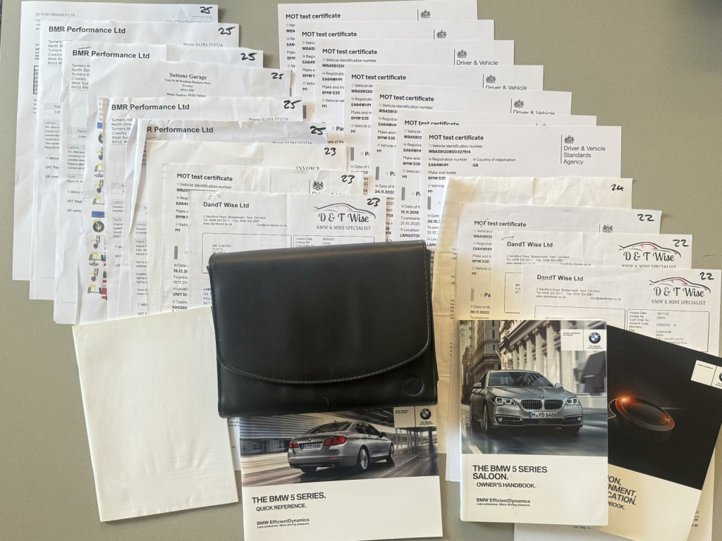 This example stands out for its rare factory specification. It is equipped with Bang and Olufsen Advanced Audio, a very uncommon option on the F10 and highly regarded for sound quality and cabin presentation. The interior is finished in BMW Individual Extended Merino Leather in Nutmeg with black, paired with BMW Individual high-gloss Light Sen wood trim, M Anthracite headlining and BMW Individual door sill finishers. Variable Damper Control is fitted, giving selectable Comfort and Sport suspension settings, along with the Sport Automatic transmission. Additional factory options include Climate Comfort windscreen, sun protection glazing, front sports seats, remote services and model designation deletion.
