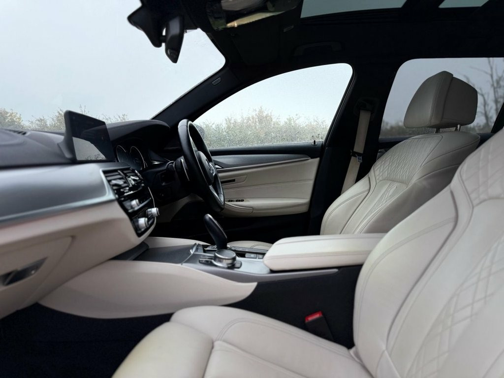 BMW 540i xDrive M Sport Touring – Full History | Tech Pack | M Performance Styling FTR Performance LTD is pleased to offer this BMW 540i xDrive M Sport Touring, finished in Mediterranean Blue Metallic with Ivory Exclusive Special Edition interior. First registered in 2018, this vehicle comes with a Full Service History from BMW and recognised BMW specialists, and is equipped with a highly desirable factory options list. Exterior Features – Mediterranean Blue Metallic Paint – 20" 759M Style Gloss Black Alloy Wheels – M Performance Exterior Styling Package (Front Splitter, Rear Diffuser, Side Skirts) – Panoramic Glass Sunroof – Sun Protection Glazing – Exterior Mirrors with Auto Anti-Dazzle – Comfort Access with Smart Opener Interior Features – Ivory Exclusive Special Edition Leather – Comfort Front Seats – Heated Steering Wheel – Extended Storage Package – BMW Display Key – M Sport Plus Package Technology & Performance – 3.0L Turbocharged Petrol Engine (340 PS) – xDrive All-Wheel Drive – 8-Speed Automatic Transmission – VDC Variable Damping Control – Head-Up Display – Gesture Control – Harman Kardon Upgraded Sound System – Enhanced Bluetooth with Wireless Charging – WIFI Hotspot Preparation – Remote Services – Remote Control Parking – Parking Assistant Plus – Technology Package A superb example of the hi 19in Alloy Wheels - M Light M Double Spo, 20GB Hard Disc Drive HDD Memory, Access to BMW Connected Plus (12 Month S, Active Air Stream Kidney Grille, Active Guard, Air Conditioning - Automatic, Airbags, Alarm System - Thatcham 1 with Remote Co, All Round Anti-Corrosion System, Ambient Lighting, Anti Roll Bars - Front and Rear, Armrests, Automatically Retracting and Lowering Lo, BMW ConnectedDrive Online Services, BMW ConnectedDrive Services, BMW Emergency Call, BMW Professional Radio with Single CD Pl, BMW TeleServices, Battery in Luggage Compartment with Jump, Bluetooth Hands Free with USB Audio Inte, Brake Force Display, Child Seat ISOFIX Attachment Two in Rear, Control Display - 10.25in C