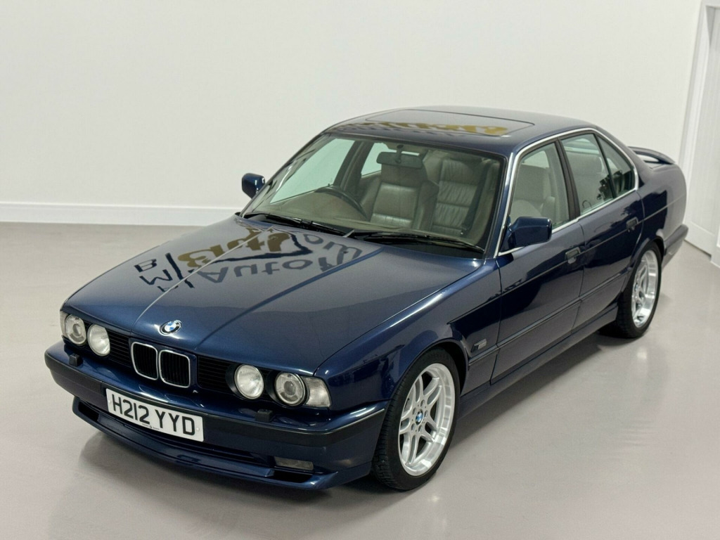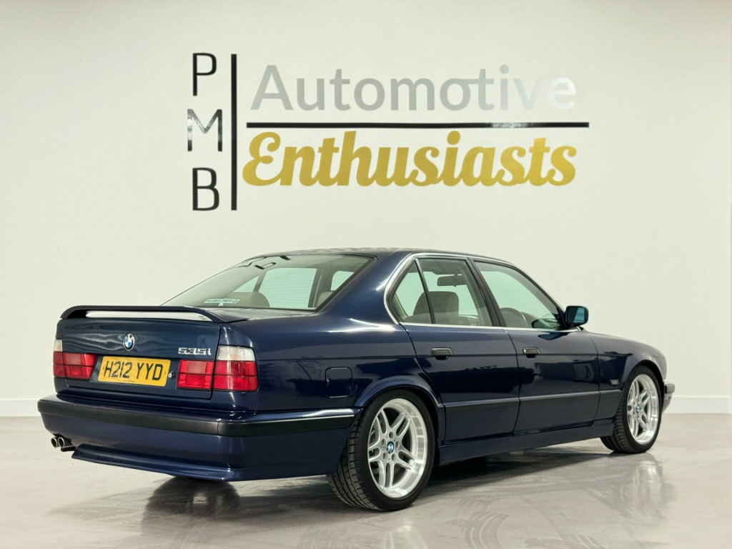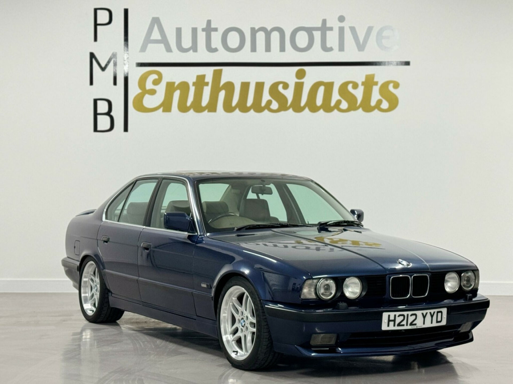 BMW 535i SPORT Manual E34 genuine Sport model registered on the V5 1991 model finished in the stunning and rare Lazer Blue Metallic with Parchment Full Leather interior. Coming with substantial recent history showing a clean MOT until June 2026 plus a service carried out at 166,218 miles. This car has had a huge amount of reconditioning in the past 3 years, invoices confirm cooling system service and flush plus rear brake discs, pads and calipers, brake fluid change plus brake master cylinder in March 25, also in March 25 front suspension top mounts, rear prop/gearbox oil seal, new rear door lock actuator, exhaust mounts, water pump and power steering pump belt all totalling over £3,000 spent. Prior in 2024 this car has history showing it has also benefitted from a new thermostat, all new coolant hoses, radiator, all temperature and level sensors, crank sensor, air intake boots, fuel lines and return valves and fuel pump. Also in 2024 this 535i had a major service including differential oil and gearbox oil. This is a very reliable and usable classic car and is an extremely rare sight on the UK roads. Features on this 535i Sport include electric tilt/slide sunroof, electric windows, central locking, electric mirrors, multi-function onboard computer, genuine BMW alloy wheels with Continental tyres, radio CD, rear seat air vents, tool kit with triangle and glove box torch. In September 2025 this car went into GTECHNIQ for paint enhancement, interior detail, Crystal Serum Light & EXOv5 Ceramic coating, G12 Glass coating, Leather Guard, Smart Fabric plus an Engine Bay detail. ather upholstery, servotronic power steering, electric adjustable mirror
