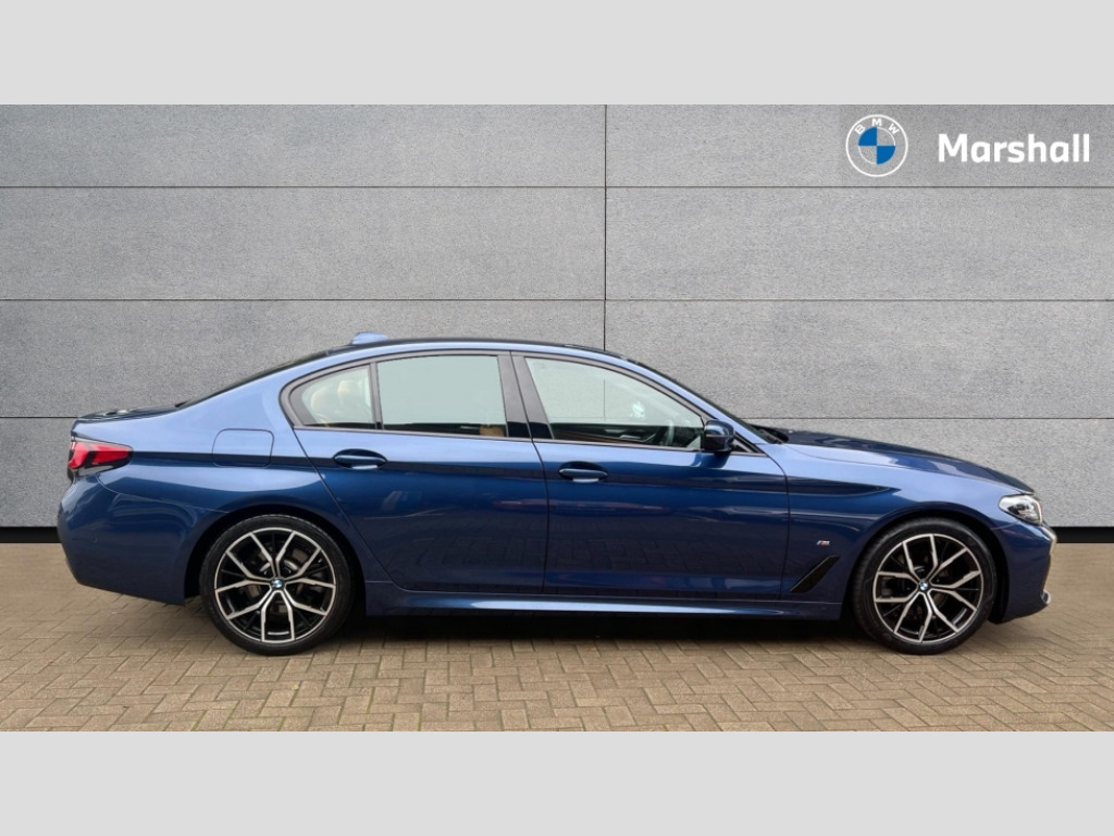 BMW 5 Series 520d MHT M Sport 4dr Step Auto 32GB hard disc drive (HDD) memory, Active Guard, BMW Live Cockpit Professional sat nav system with 12.3" instrument display and high resolution control display, BMW Teleservices, Brake pad wear indicator, Cruise control with brake assist, Driving experience switch, Electric Power Steering (EPS) with Servotronic, iDrive touch controller with shortcut buttons, Intelligent emergency call, Multifunctional instrument panel, Oil sensor for level and grade, On board computer inc. average speed, fuel consumption, liquid crystal Info display, journey computer, outside temperature display, personal profile, On-board diagnosis - OBD, Powered by Operating System 7.0, Service interval indicator, Speed limiting function, Stop/start button, 48V Mild hybrid technology, Diesel particulate filter, Drive performance control with ECO PRO comfort + sport mode, Engine cover with twin turbo designation, M sport suspension, Steptronic sport transmission with gearshift paddle switches on steering wheel, DAB Digital radio, Favourite buttons, Acoustic glazing, All round anti-corrosion system, Automatic windscreen wipers and automatic headlight, Automatically dimming rear view mirror, BMW Individual high gloss shadow line includes exterior mirror frame, window frame surround, B pillar finish, air breather in high gloss black, Body colour door handles, Body coloured bumpers, Door handle illumination, Dynamic brake lights with LED technology, Electric front and rear windows with fingertip open/close + anti-trap facility and comfort closing function, Electrically adjustable and heated exterior mirrors includes integrated direction indicators and automatic parking function, Folding exterior side mirror with auto- dimming, Follow me home headlight function, Heated windscreen washer jets, High gloss black active air stream kidney grille, LED daytime running lights, LED third brake light, M designation on front side panels, left and right in chrome, Trapezoidal visible exhaust tailpipes, 12V power socket in front and rear, 2 cup holders in front, Armrest - front and rear integrated door trim, centre console includes storage compartment, rear centre includes 2 cupholders, Child seat ISOFIX attachment with rear outer seats includes top tether, Front and rear footwell lights, Front reading lights, Height and length adjustable steering column and activation via lateral lever on the steering column, Lockable glove compartment with light, M door sill finishers, M specific pedals, M specific velour floor mats, Multifunction controls for leather steering wheel, Rear headrests, Three spoke sport M leather steering wheel, Ambient lighting pack - 5 Series, Connected package professional - 5 Series, M Aerodynamic pack - 5 Series, Parking assistant pack - 5 Series, Airbags - driver/front passenger, rear and side, first and second row seats head airbags, front passenger seat airbag deactivation, Anti-lock braking system (ABS), Automatic Stability Control (ASC), Brake assist function, Brake energy regeneration, Cornering brake control (CBC), Crash sensor activating central locking release, hazard warning lights, fuel cut off and interior lighting, Deformation zones - front and rear with door reinforcements and bumpers up to 2.5 mph, DSC - Dynamic Stability Control, Dynamic brake control, Dynamic Traction Control - DTC, Electromechanical parking brake with automatic drive away release and auto hold function, Electronic brake force distribution, Engine drag torque control, Front and rear brake discs with interior ventilation, Front head restraints with anti-whiplash, Hill start assist, Mechanical child proof lock on rear doors, Passive protection for pedestrians, Side impact protection, Three point seat belts for all four seats, Two tone horn, Tyre pressure indicator, Warning triangle and first aid kit, Alarm system (Thatcham 1) with remote control and electronic engine immobiliser, Locking wheel bolts