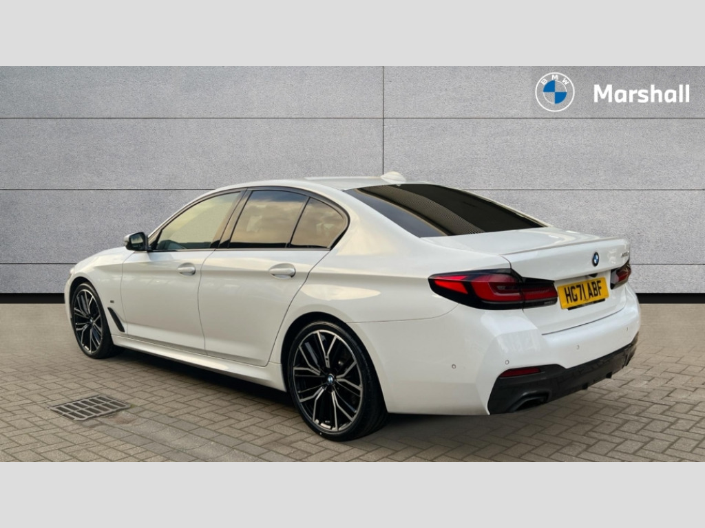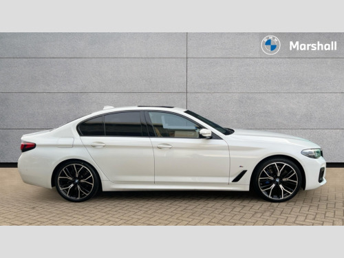 BMW 5 Series 520d MHT M Sport 4dr Step Auto 32GB hard disc drive (HDD) memory, Active Guard, BMW Live Cockpit Professional sat nav system with 12.3" instrument display and high resolution control display, BMW Teleservices, Brake pad wear indicator, Cruise control with brake assist, Driving experience switch, Electric Power Steering (EPS) with Servotronic, iDrive touch controller with shortcut buttons, Intelligent emergency call, Multifunctional instrument panel, Oil sensor for level and grade, On board computer inc. average speed, fuel consumption, liquid crystal Info display, journey computer, outside temperature display, personal profile, On-board diagnosis - OBD, Powered by Operating System 7.0, Service interval indicator, Speed limiting function, Stop/start button, 48V Mild hybrid technology, Diesel particulate filter, Drive performance control with ECO PRO comfort + sport mode, Engine cover with twin turbo designation, M sport suspension, Steptronic sport transmission with gearshift paddle switches on steering wheel, DAB Digital radio, Favourite buttons, Acoustic glazing, All round anti-corrosion system, Automatic windscreen wipers and automatic headlight, Automatically dimming rear view mirror, BMW Individual high gloss shadow line with extended contents includes kidney frame and struts in high gloss black and black chrome exhaust tailpipes, Body colour door handles, Body coloured bumpers, Door handle illumination, Dynamic brake lights with LED technology, Electric front and rear windows with fingertip open/close + anti-trap facility and comfort closing function, Electrically adjustable and heated exterior mirrors includes integrated direction indicators and automatic parking function, Folding exterior side mirror with auto- dimming, Follow me home headlight function, Heated windscreen washer jets, High gloss black active air stream kidney grille, LED daytime running lights, LED third brake light, M designation on front side panels, left and right in chrome, M Sport exterior styling with rear spoiler bonded to luggage compartment lid, Sun protection glazing, Trapezoidal visible exhaust tailpipes, 12V power socket in front and rear, 2 cup holders in front, Armrest - front and rear integrated door trim, centre console includes storage compartment, rear centre includes 2 cupholders, Child seat ISOFIX attachment with rear outer seats includes top tether, Front and rear footwell lights, Front reading lights, Height and length adjustable steering column and activation via lateral lever on the steering column, Lockable glove compartment with light, M door sill finishers, M specific pedals, M specific velour floor mats, Multifunction controls for leather steering wheel, Rear headrests, Three spoke sport M leather steering wheel, Ambient lighting pack - 5 Series, Connected package professional - 5 Series, M Aerodynamic pack - 5 Series, Parking assistant pack - 5 Series, Airbags - driver/front passenger, rear and side, first and second row seats head airbags, front passenger seat airbag deactivation, Anti-lock braking system (ABS), Automatic Stability Control (ASC), Brake assist function, Brake energy regeneration, Cornering brake control (CBC), Crash sensor activating central locking release, hazard warning lights, fuel cut off and interior lighting, Deformation zones - front and rear with door reinforcements and bumpers up to 2.5 mph, DSC - Dynamic Stability Control, Dynamic brake control, Dynamic Traction Control - DTC, Electromechanical parking brake with automatic drive away release and auto hold function, Electronic brake force distribution, Engine drag torque control, Front and rear brake discs with interior ventilation, Front head restraints with anti-whiplash, Hill start assist, M Sport seatbelts, Mechanical child proof lock on rear doors, Passive protection for pedestrians, Side impact protection, Three point seat belts for all four seats, Two tone horn, Tyre pressure indicator, Warning triangle and first aid kit, Alarm system (Thatcham 1) with remote control and electronic engine immobiliser, Locking wheel bolts, 20" M Y-spoke bicolour light alloy wheels with run flat tyres - style 846 M