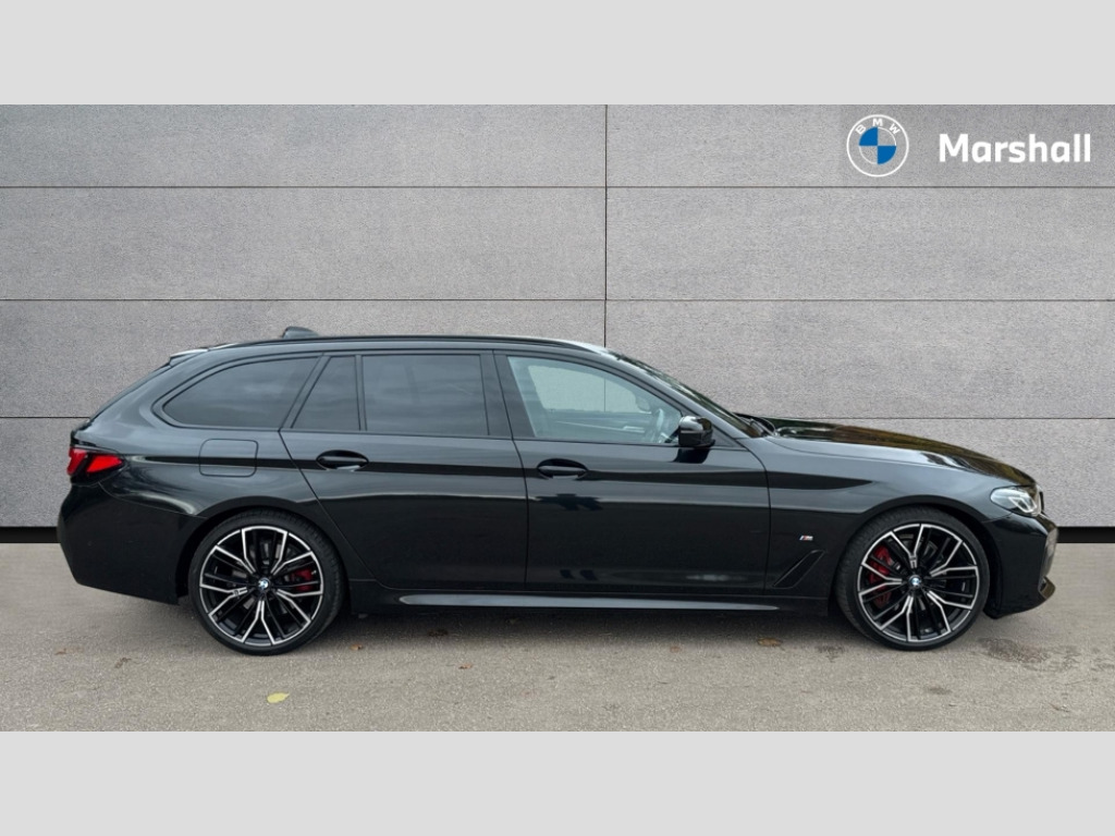 BMW 5 Series 520d MHT M Sport 5dr Step Auto 32GB hard disc drive (HDD) memory, Active Guard, Bluetooth connection, BMW ConnectedDrive online services, BMW Live Cockpit Professional sat nav system with 12.3" instrument display and high resolution control display, BMW Teleservices, Brake pad wear indicator, Cruise control with brake assist, Driving experience switch, eCall emergency call system, Electric boot lid - electrically opening/closing rear tailgate, Electric Power Steering (EPS) with Servotronic, iDrive controller with shortcut buttons, Intelligent emergency call, Multifunctional instrument panel, Oil sensor for level and grade, On board computer inc. average speed, fuel consumption, liquid crystal Info display, journey computer, outside temperature display, personal profile, On-board diagnosis - OBD, Powered by Operating System 7.0, Service interval indicator, Speed limiting function, Stop/start button, 48V Mild hybrid technology, Diesel particulate filter, Drive performance control with ECO PRO comfort + sport mode, Engine cover with twin turbo designation, M sport suspension, Steptronic sport transmission with gearshift paddle switches on steering wheel, DAB Digital radio, Favourite buttons, Acoustic glazing, All round anti-corrosion system, Automatic windscreen wipers and automatic headlight, Automatically dimming rear view mirror, BMW Individual high gloss shadow line includes exterior mirror frame, window frame surround, B pillar finish, air breather in high gloss black, Body colour door handles, Body coloured bumpers, Door handle illumination, Dynamic brake lights with LED technology, Electric front and rear windows with fingertip open/close + anti-trap facility and comfort closing function, Electrically adjustable and heated exterior mirrors includes integrated direction indicators and automatic parking function, Folding exterior side mirror with auto- dimming, Follow me home headlight function, Heated windscreen washer jets, High gloss black active air stream kidney grille, High gloss shadow line roof rails, Independent opening for tailgate window, LED daytime running lights, LED Headlights, LED third brake light, M designation on front side panels, left and right in chrome, M Sport exterior styling, Preparation for high beam assistant, Rear side wing doors, Rear wiper, Trapezoidal visible exhaust tailpipes, 12V power socket in front and rear, 3 seat bench in 2nd row, 40/20/40 split folding rear seats with additional mechanism in luggage compartment, Anthracite headlining, Armrest - front and rear integrated door trim, centre console includes storage compartment, rear centre includes 2 cupholders, Child seat ISOFIX attachment with rear outer seats includes top tether, Cup holders (2 front and 2 rear), Front and rear footwell lights, Front reading lights, Height and length adjustable steering column and activation via lateral lever on the steering column, Lockable glove compartment with light, M door sill finishers, M specific pedals, M specific velour floor mats, Multifunction controls for leather steering wheel, Rear headrests, Retractable luggage compartment dividing net, Single front passenger seat, Three spoke sport M leather steering wheel, Ambient lighting pack - 5 Series, Connected package professional - 5 Series, M Aerodynamic pack - 5 Series, Airbags - driver/front passenger, rear and side, first and second row seats head airbags, front passenger seat airbag deactivation, Anti-lock braking system (ABS), Automatic Stability Control (ASC), Brake assist function, Brake energy regeneration, Cornering brake control (CBC), Crash sensor activating central locking release, hazard warning lights, fuel cut off and interior lighting, Deformation zones - front and rear with door reinforcements and bumpers up to 2.5 mph, DSC - Dynamic Stability Control, Dynamic brake control, Dynamic Traction Control - DTC, Electromechanical parking brake with automatic drive away release and auto hold function, Electronic brake force distribution, Engine drag torque control, Front and rear brake discs with interior ventilation, Front head restraints with anti-whiplash, Hill start assist, Mechanical child proof lock on rear doors, Passive protection for pedestrians, Rear door child safety locks, Side impact protection, Three point seat belts for all four seats, Two tone horn, Tyre pressure indicator, Warning triangle and first aid kit, Alarm system (Thatcham 1) with remote control and electronic engine immobiliser, Locking wheel bolts