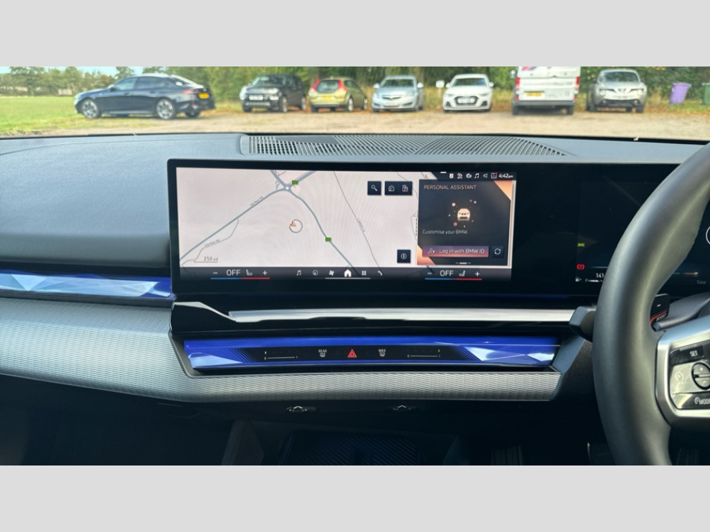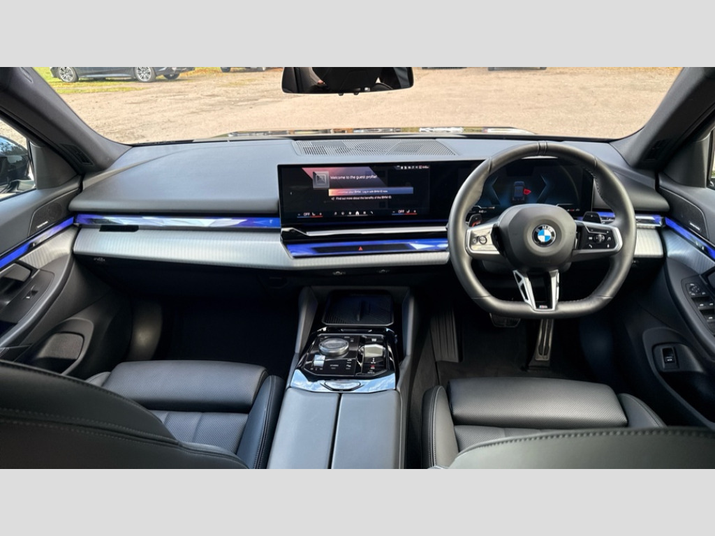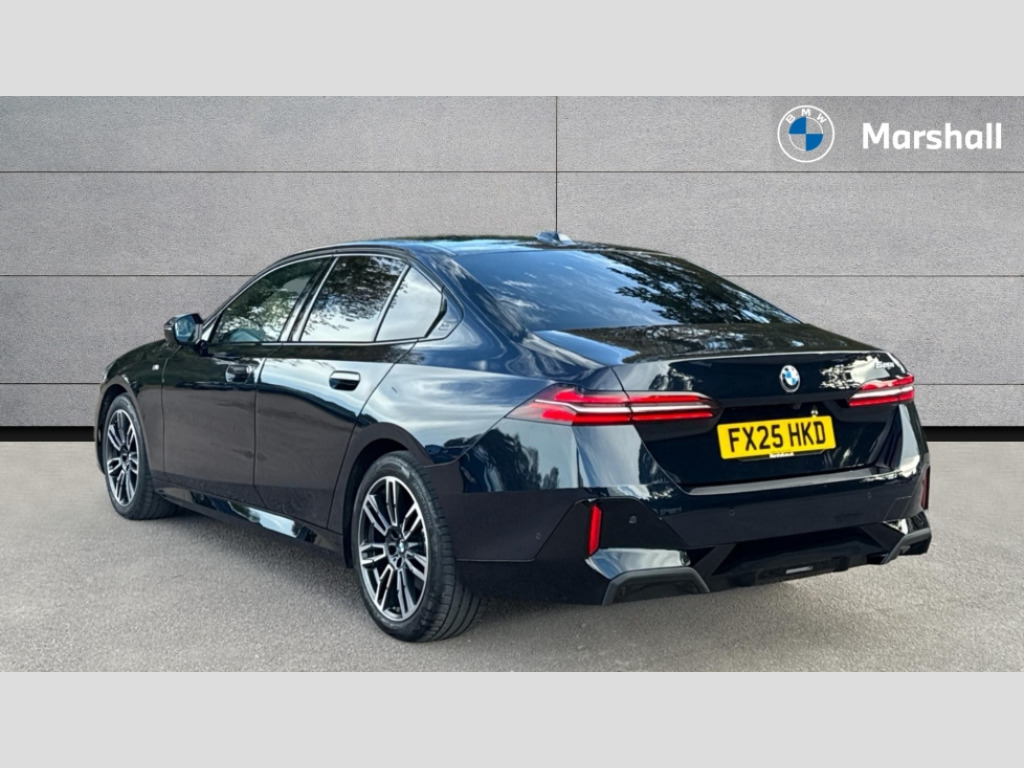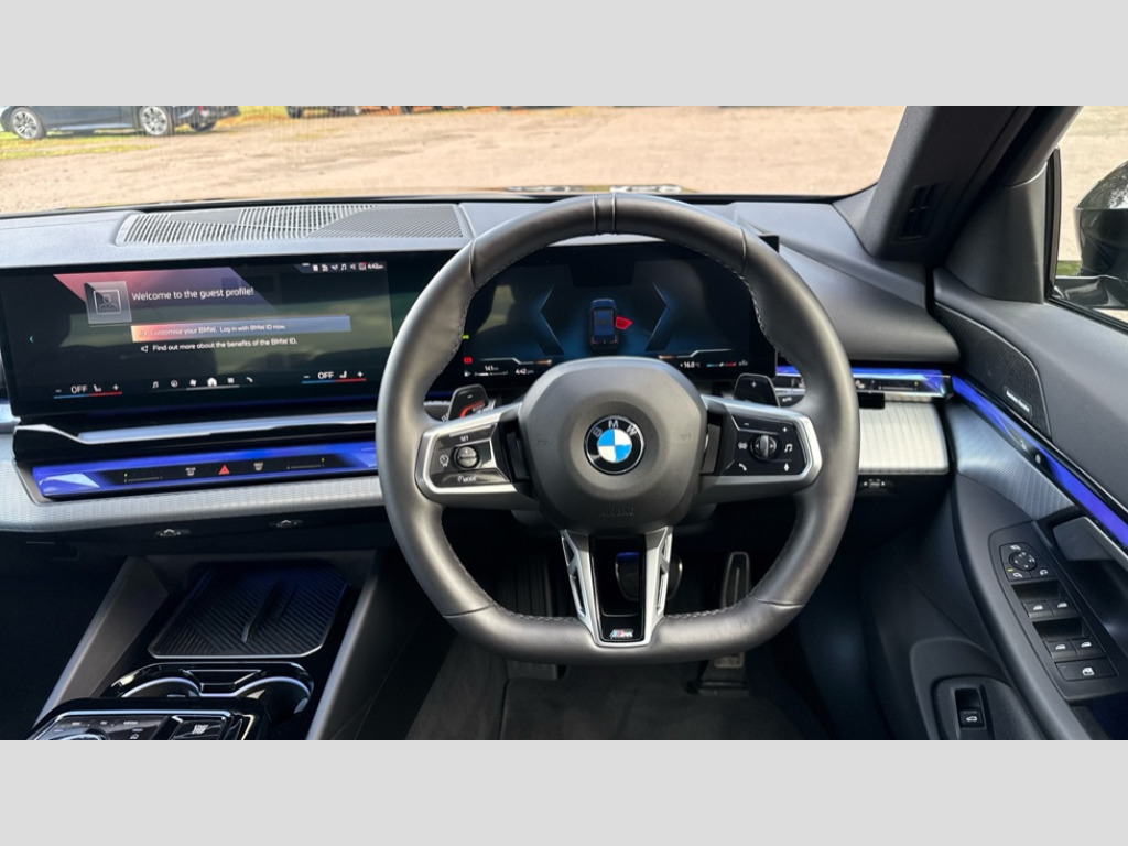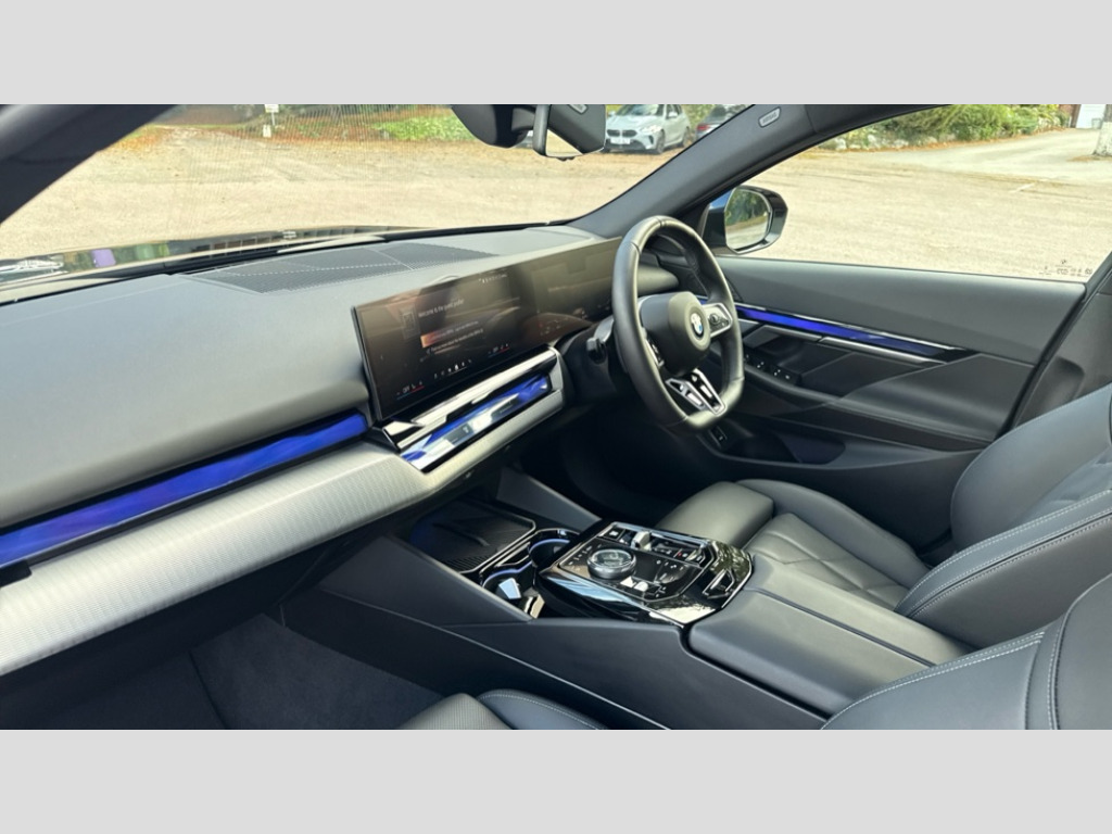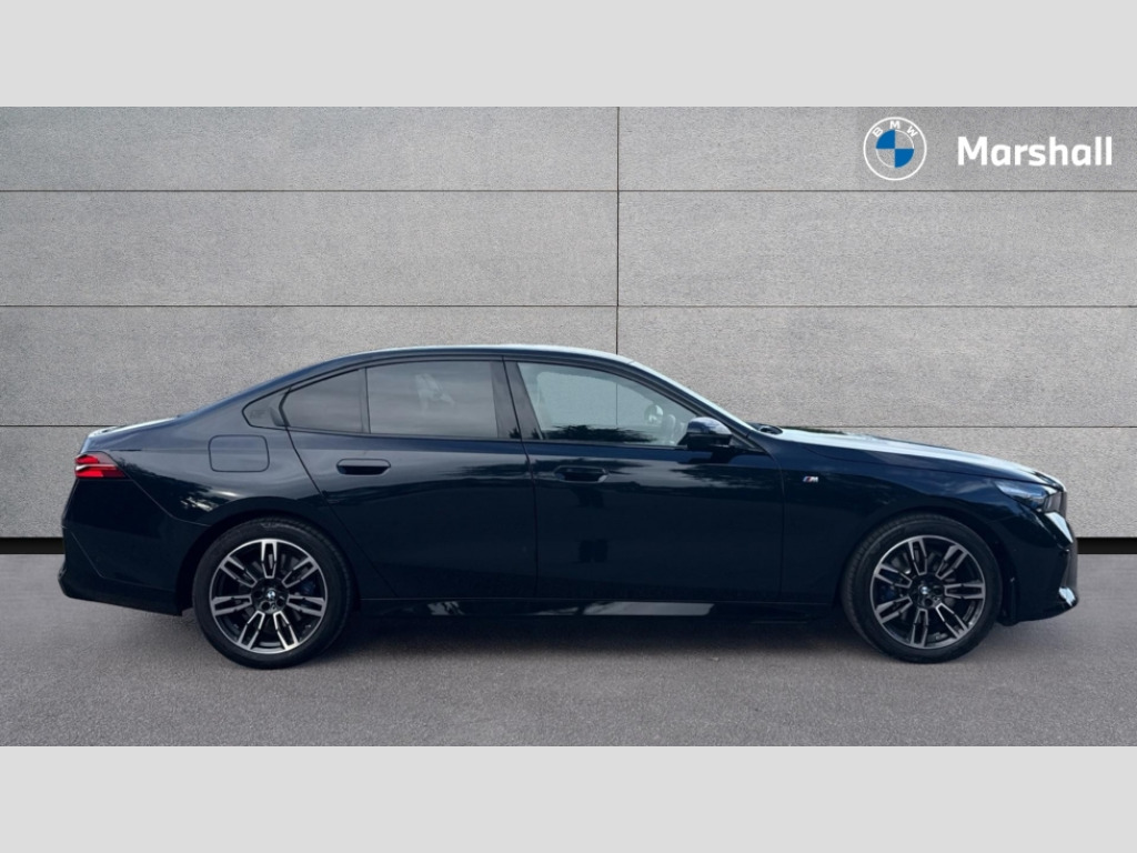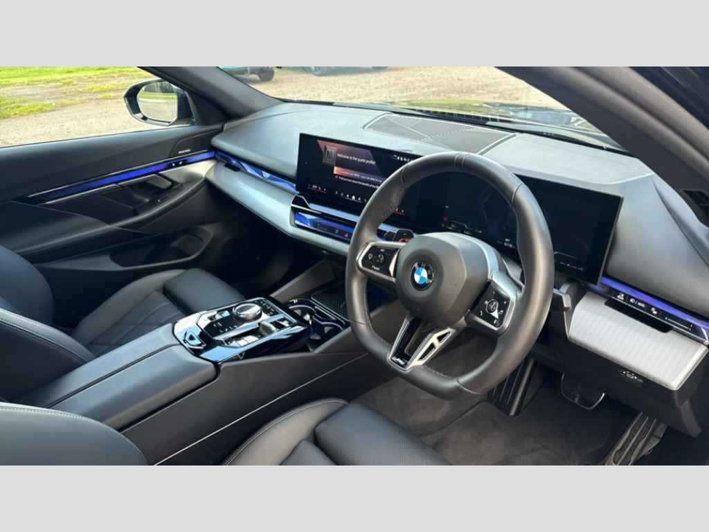 BMW 5 Series 520i M Sport 4dr Auto BMW ConnectedDrive online services, BMW legal emergency call, BMW Teleservices, Brake pad wear indicator, Cruise control with brake assist, Driving Assistant Plus Preparation, Front collision warning with brake intervention, Lane departure warning with active return, Left turn warning with brake function, Multifunctional instrument panel, Oil sensor for level and grade, On board computer inc. average speed, fuel consumption, liquid crystal Info display, journey computer, outside temperature display, personal profile, On-board diagnosis - OBD, PAS, Personal e-SIM, Powered by Operating System 7.0, Run flat indicator, Service interval indicator, Speed limit Info with manual speed limit assist, Stop/start button, 8 speed automatic steptronic transmission with gearshift paddles, DAB tuner, Acoustic glazing, Adaptive LED Headlights, Automatic cornering lights, Automatic windscreen wipers and automatic headlight, BMW selective beam, Body colour door handles, Body coloured bumpers, Dynamic brake lights with LED technology, Electric adjustable door mirrors, Electric front and rear windows with fingertip open/close + anti-trap facility and comfort closing function, Follow me home headlight function, Headlight elements in blue, Heated windscreen washer jets, LED daytime running lights, LED third brake light, Light colour close to that of ordinary daylight, Optimum, homogeneous illumination of the road, Rear boot, Rear side wing doors, 2 zone automatic air conditioning, 3 seat bench in 2nd row, 3 spoke leather M steering wheel in BMW M specific design with M badge, Armrest - front and rear integrated door trim, centre console includes storage compartment, rear centre includes 2 cupholders, Child seat ISOFIX attachment with rear outer seats includes top tether, Electric adjustable front sports seats, Electric adjustable steering column, Electrically adjustable lumbar support for driver and front passenger, Heated driver and front passenger seats, High-gloss black door switch cluster, power window switch and tailgate button on first and second row seat, M Anthracite headlining, M Sport pedal covers in stainless steel, Rear headrests, Single front passenger seat, Through loading system with 40/20/40 rear seat backrest split, Velour floormats, Wireless charging tray, Ambient lighting pack - 5 Series/I5, Connected package professional - 5 Series/I5, Driving assistance pack - 5 Series/I5, Expanded exterior mirror package - 5 series/I5, M high gloss shadow line pack - 5 Series/ I5, M Sport exterior styling pack - 5 Series/I5, 3 rear three point seatbelts, Active protection, Airbag deployment is controlled with respect to the intensity and scope, Anti-lock braking system (ABS), Brake assist, Brake energy regeneration, Cornering brake control (CBC), Crash sensor activating central locking release, hazard warning lights, fuel cut off and interior lighting, Driver and front passenger airbags, Driver central airbag, Driver/front passenger side airbags, DSC - Dynamic Stability Control, Dynamic brake control, Dynamic Traction Control - DTC, Electromechanical parking brake with automatic drive away release and auto hold function, Electronic brake force distribution, Engine drag torque control, Front and rear brake discs with interior ventilation, Front and rear curtain airbags, Front head restraints with anti-whiplash, Head airbags for first and second row seats, Hill start assist, Locking of doors after driving off, M Sport brakes in dark blue metallic painted brake callipers with M designation, Mechanical child proof lock on rear doors, PC iBrake PostCrash approach control warning with light braking function, Side impact protection, Trailer stability control, Two tone horn, Tyre pressure monitoring system, Warning triangle and first aid kit, Alarm system, Locking wheel bolts including wheel bolt adapter, Tyre repair kit plus