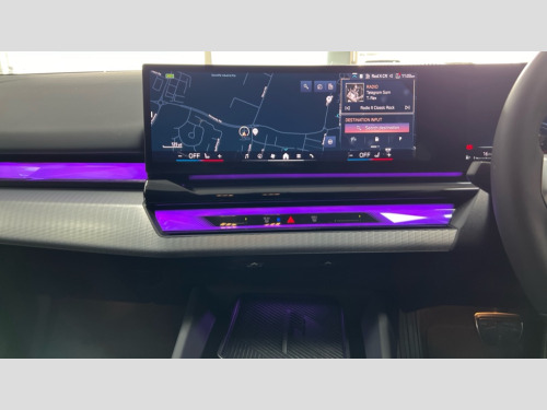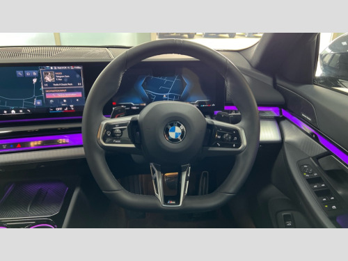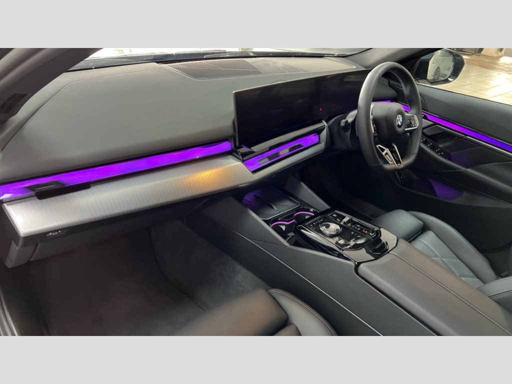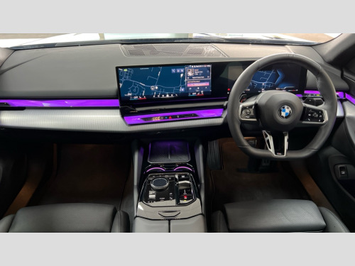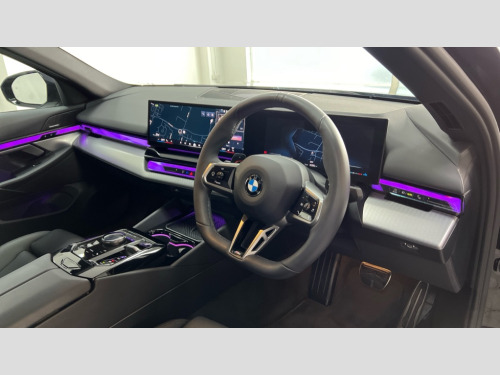BMW 5 Series 520i M Sport 4dr Auto BMW ConnectedDrive online services, BMW legal emergency call, BMW Teleservices, Brake pad wear indicator, Cruise control with brake assist, Driving Assistant Plus Preparation, Front collision warning with brake intervention, Lane departure warning with active return, Left turn warning with brake function, Multifunctional instrument panel, Oil sensor for level and grade, On board computer inc. average speed, fuel consumption, liquid crystal Info display, journey computer, outside temperature display, personal profile, On-board diagnosis - OBD, PAS, Personal e-SIM, Powered by Operating System 7.0, Run flat indicator, Service interval indicator, Speed limit Info with manual speed limit assist, Stop/start button, 8 speed automatic steptronic transmission with gearshift paddles, DAB tuner, Acoustic glazing, Adaptive LED Headlights, Automatic cornering lights, Automatic windscreen wipers and automatic headlight, BMW selective beam, Body colour door handles, Body coloured bumpers, Dynamic brake lights with LED technology, Electric adjustable door mirrors, Electric front and rear windows with fingertip open/close + anti-trap facility and comfort closing function, Follow me home headlight function, Headlight elements in blue, Heated windscreen washer jets, LED daytime running lights, LED third brake light, Light colour close to that of ordinary daylight, Optimum, homogeneous illumination of the road, Rear boot, Rear side wing doors, 2 zone automatic air conditioning, 3 seat bench in 2nd row, 3 spoke leather M steering wheel in BMW M specific design with M badge, Armrest - front and rear integrated door trim, centre console includes storage compartment, rear centre includes 2 cupholders, Child seat ISOFIX attachment with rear outer seats includes top tether, Electric adjustable front sports seats, Electric adjustable steering column, Electrically adjustable lumbar support for driver and front passenger, Heated driver and front passenger seats, High-gloss black door switch cluster, power window switch and tailgate button on first and second row seat, M Anthracite headlining, M Sport pedal covers in stainless steel, Rear headrests, Single front passenger seat, Through loading system with 40/20/40 rear seat backrest split, Velour floormats, Wireless charging tray, Ambient lighting pack - 5 Series/I5, Connected package professional - 5 Series/I5, Driving assistance pack - 5 Series/I5, Expanded exterior mirror package - 5 series/I5, M high gloss shadow line pack - 5 Series/ I5, M Sport exterior styling pack - 5 Series/I5, 3 rear three point seatbelts, Active protection, Airbag deployment is controlled with respect to the intensity and scope, Anti-lock braking system (ABS), Brake assist, Brake energy regeneration, Cornering brake control (CBC), Crash sensor activating central locking release, hazard warning lights, fuel cut off and interior lighting, Driver and front passenger airbags, Driver central airbag, Driver/front passenger side airbags, DSC - Dynamic Stability Control, Dynamic brake control, Dynamic Traction Control - DTC, Electromechanical parking brake with automatic drive away release and auto hold function, Electronic brake force distribution, Engine drag torque control, Front and rear brake discs with interior ventilation, Front and rear curtain airbags, Front head restraints with anti-whiplash, Head airbags for first and second row seats, Hill start assist, Locking of doors after driving off, M Sport brakes in dark blue metallic painted brake callipers with M designation, Mechanical child proof lock on rear doors, PC iBrake PostCrash approach control warning with light braking function, Side impact protection, Trailer stability control, Two tone horn, Tyre pressure monitoring system, Warning triangle and first aid kit, Alarm system, Locking wheel bolts including wheel bolt adapter, Tyre repair kit plus