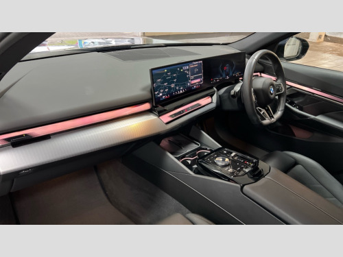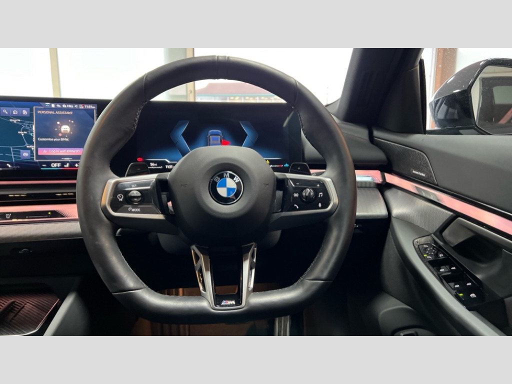 BMW 5 Series 520i M Sport 4dr Auto BMW ConnectedDrive online services, BMW legal emergency call, BMW Teleservices, Brake pad wear indicator, Cruise control with brake assist, Driving Assistant Plus Preparation, Front collision warning with brake intervention, Lane departure warning with active return, Left turn warning with brake function, Multifunctional instrument panel, Oil sensor for level and grade, On board computer inc. average speed, fuel consumption, liquid crystal Info display, journey computer, outside temperature display, personal profile, On-board diagnosis - OBD, PAS, Personal e-SIM, Powered by Operating System 7.0, Run flat indicator, Service interval indicator, Speed limit Info with manual speed limit assist, Stop/start button, 8 speed automatic steptronic transmission with gearshift paddles, DAB tuner, Acoustic glazing, Adaptive LED Headlights, Automatic cornering lights, Automatic windscreen wipers and automatic headlight, BMW selective beam, Body colour door handles, Body coloured bumpers, Dynamic brake lights with LED technology, Electric adjustable door mirrors, Electric front and rear windows with fingertip open/close + anti-trap facility and comfort closing function, Follow me home headlight function, Headlight elements in blue, Heated windscreen washer jets, LED daytime running lights, LED third brake light, Light colour close to that of ordinary daylight, Optimum, homogeneous illumination of the road, Rear boot, Rear side wing doors, 2 zone automatic air conditioning, 3 seat bench in 2nd row, 3 spoke leather M steering wheel in BMW M specific design with M badge, Armrest - front and rear integrated door trim, centre console includes storage compartment, rear centre includes 2 cupholders, Child seat ISOFIX attachment with rear outer seats includes top tether, Electric adjustable front sports seats, Electric adjustable steering column, Electrically adjustable lumbar support for driver and front passenger, Heated driver and front passenger seats, High-gloss black door switch cluster, power window switch and tailgate button on first and second row seat, M Anthracite headlining, M Sport pedal covers in stainless steel, Rear headrests, Single front passenger seat, Through loading system with 40/20/40 rear seat backrest split, Velour floormats, Wireless charging tray, Ambient lighting pack - 5 Series/I5, Connected package professional - 5 Series/I5, Driving assistance pack - 5 Series/I5, Expanded exterior mirror package - 5 series/I5, M high gloss shadow line pack - 5 Series/ I5, M Sport exterior styling pack - 5 Series/I5, 3 rear three point seatbelts, Active protection, Airbag deployment is controlled with respect to the intensity and scope, Anti-lock braking system (ABS), Brake assist, Brake energy regeneration, Cornering brake control (CBC), Crash sensor activating central locking release, hazard warning lights, fuel cut off and interior lighting, Driver and front passenger airbags, Driver central airbag, Driver/front passenger side airbags, DSC - Dynamic Stability Control, Dynamic brake control, Dynamic Traction Control - DTC, Electromechanical parking brake with automatic drive away release and auto hold function, Electronic brake force distribution, Engine drag torque control, Front and rear brake discs with interior ventilation, Front and rear curtain airbags, Front head restraints with anti-whiplash, Head airbags for first and second row seats, Hill start assist, Locking of doors after driving off, M Sport brake in blue high gloss painted brake callipers with monochrome logo on front calliper, Mechanical child proof lock on rear doors, PC iBrake PostCrash approach control warning with light braking function, Side impact protection, Trailer stability control, Two tone horn, Tyre pressure monitoring system, Warning triangle and first aid kit, Alarm system, Locking wheel bolts including wheel bolt adapter, Tyre repair kit plus