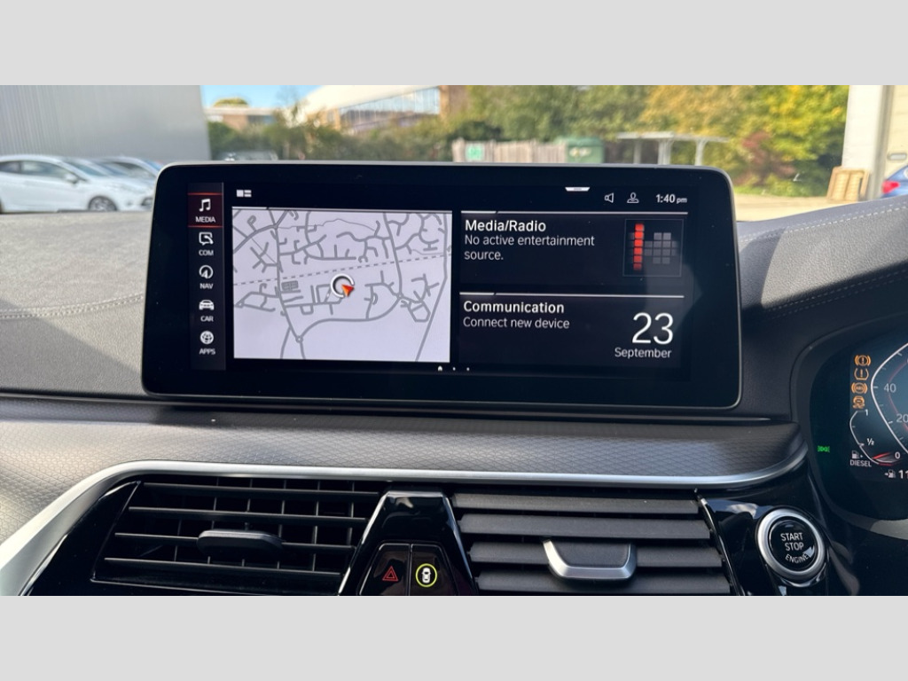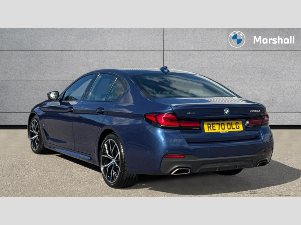 BMW 5 Series 530d xDrive MHT M Sport 4dr Auto 32GB hard disc drive (HDD) memory, Active Guard, BMW ConnectedDrive online services, BMW Live Cockpit Professional sat nav system with 12.3" instrument display and high resolution control display, BMW Teleservices, Brake pad wear indicator, Cruise control with brake assist, Driving experience switch, Electric Power Steering (EPS) with Servotronic, iDrive touch controller with shortcut buttons, Intelligent emergency call, Multifunctional instrument panel, Oil sensor for level and grade, On board computer inc. average speed, fuel consumption, liquid crystal Info display, journey computer, outside temperature display, personal profile, On-board diagnosis - OBD, Powered by Operating System 7.0, Service interval indicator, Speed limiting function, Stop/start button, 48V Mild hybrid technology, Diesel particulate filter, Drive performance control with ECO PRO comfort + sport mode, Engine cover with twin turbo designation, M sport suspension, Steptronic sport transmission with gearshift paddle switches on steering wheel, DAB Digital radio, Favourite buttons, Acoustic glazing, All round anti-corrosion system, Automatically dimming rear view mirror, BMW Individual high gloss shadow line includes exterior mirror frame, window frame surround, B pillar finish, air breather in high gloss black, Body colour door handles, Body coloured bumpers, Door handle illumination, Dynamic brake lights with LED technology, Electric front and rear windows with fingertip open/close + anti-trap facility and comfort closing function, Electrically adjustable and heated exterior mirrors includes integrated direction indicators and automatic parking function, Follow me home headlight function, Heated windscreen washer jets, High gloss black active air stream kidney grille, Interior rear view electrochromatic mirror with automatic anti dazzle function, LED daytime running lights, LED third brake light, M designation on front side panels, left and right in chrome, Rain sensor with automatic headlight activation, Trapezoidal visible exhaust tailpipes, xDrive designation on tailgate, 12V power socket in front and rear, Armrest - front and rear integrated door trim, centre console includes storage compartment, rear centre includes 2 cupholders, Child seat ISOFIX attachment with rear outer seats includes top tether, Cup holders (2 front and 2 rear), Front and rear footwell lights, Front reading lights, Height and length adjustable steering column and activation via lateral lever on the steering column, Illuminated M door sill finishers, Lockable glove compartment with light, M specific pedals, M specific velour floor mats, Multifunction controls for leather steering wheel, Rear headrests, Three spoke sport M leather steering wheel, Ambient lighting pack - 5 Series, Connected package professional - 5 Series, Expanded exterior mirror pack - 5 Series, M Aerodynamic pack - 5 Series, 3x3 point rear seatbelts, Airbags - driver/front passenger, rear and side, first and second row seats head airbags, front passenger seat airbag deactivation + knee airbag, Anti-lock braking system (ABS), Automatic Stability Control (ASC), Brake assist function, Brake energy regeneration, Cornering brake control (CBC), Crash sensor activating central locking release, hazard warning lights, fuel cut off and interior lighting, Deformation zones - front and rear with door reinforcements and bumpers up to 2.5 mph, DSC - Dynamic Stability Control, Dynamic brake control, Dynamic Traction Control - DTC, Electromechanical parking brake with automatic drive away release and auto hold function, Electronic brake force distribution, Engine drag torque control, Front and rear brake discs with interior ventilation, Front head restraints with anti-whiplash, Hill start assist, M Sport brakes in high gloss blue painted brake callipers with M designation, Mechanical child proof lock on rear doors, Passive protection for pedestrians, Side impact protection, Three point seat belts for all four seats, Two tone horn, Tyre pressure indicator, Warning triangle and first aid kit, Alarm system (Thatcham 1) with remote control and electronic engine immobiliser, Locking wheel bolts