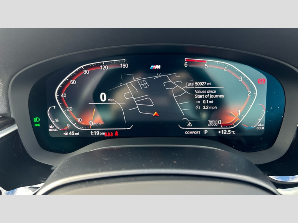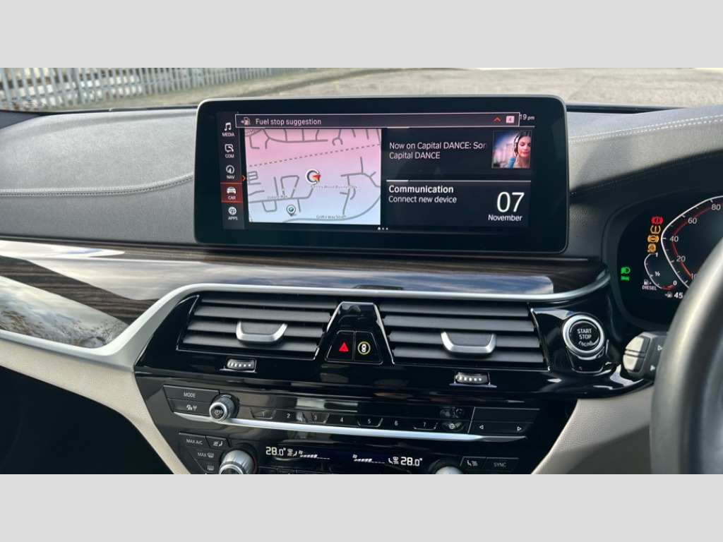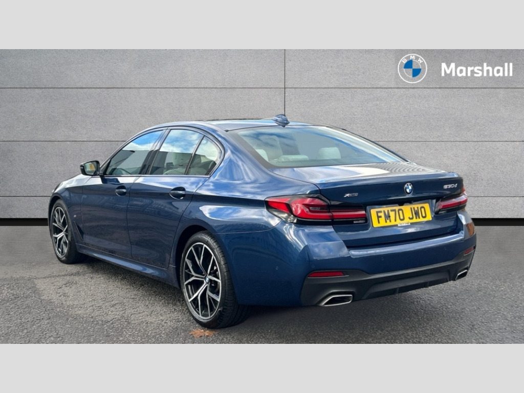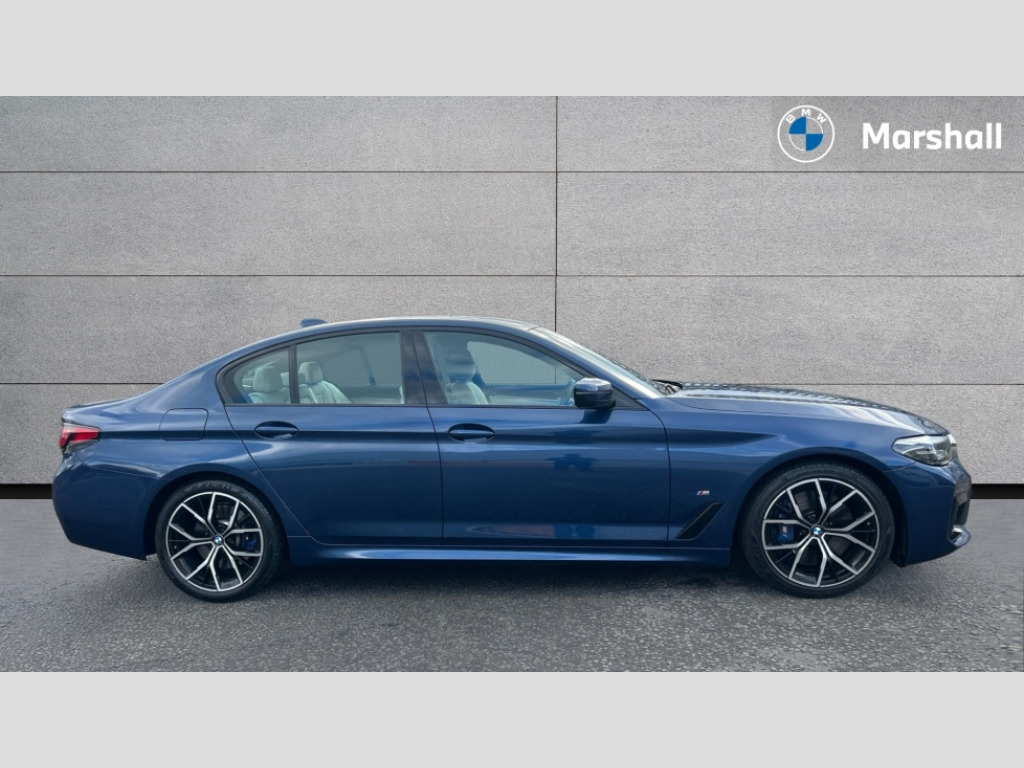 BMW 5 Series 530d xDrive MHT M Sport 4dr Auto 32GB hard disc drive (HDD) memory, Active Guard, BMW ConnectedDrive online services, BMW Live Cockpit Professional sat nav system with 12.3" instrument display and high resolution control display, BMW Teleservices, Brake pad wear indicator, Cruise control with brake assist, Driving experience switch, Electric Power Steering (EPS) with Servotronic, iDrive touch controller with shortcut buttons, Intelligent emergency call, Multifunctional instrument panel, Oil sensor for level and grade, On board computer inc. average speed, fuel consumption, liquid crystal Info display, journey computer, outside temperature display, personal profile, On-board diagnosis - OBD, Powered by Operating System 7.0, Service interval indicator, Speed limiting function, Stop/start button, 48V Mild hybrid technology, Diesel particulate filter, Drive performance control with ECO PRO comfort + sport mode, Engine cover with twin turbo designation, M sport suspension, Steptronic sport transmission with gearshift paddle switches on steering wheel, DAB Digital radio, Favourite buttons, Acoustic glazing, All round anti-corrosion system, Automatically dimming rear view mirror, BMW Individual high gloss shadow line includes exterior mirror frame, window frame surround, B pillar finish, air breather in high gloss black, Body colour door handles, Body coloured bumpers, Door handle illumination, Dynamic brake lights with LED technology, Electric front and rear windows with fingertip open/close + anti-trap facility and comfort closing function, Electrically adjustable and heated exterior mirrors includes integrated direction indicators and automatic parking function, Follow me home headlight function, Heated windscreen washer jets, High gloss black active air stream kidney grille, Interior rear view electrochromatic mirror with automatic anti dazzle function, LED daytime running lights, LED third brake light, M designation on front side panels, left and right in chrome, Rain sensor with automatic headlight activation, Trapezoidal visible exhaust tailpipes, xDrive designation on tailgate, 12V power socket in front and rear, Armrest - front and rear integrated door trim, centre console includes storage compartment, rear centre includes 2 cupholders, Child seat ISOFIX attachment with rear outer seats includes top tether, Cup holders (2 front and 2 rear), Front and rear footwell lights, Front reading lights, Height and length adjustable steering column and activation via lateral lever on the steering column, Illuminated M door sill finishers, Lockable glove compartment with light, M specific pedals, M specific velour floor mats, Multifunction controls for leather steering wheel, Rear headrests, Three spoke sport M leather steering wheel, Ambient lighting pack - 5 Series, Connected package professional - 5 Series, Expanded exterior mirror pack - 5 Series, M Aerodynamic pack - 5 Series, 3x3 point rear seatbelts, Airbags - driver/front passenger, rear and side, first and second row seats head airbags, front passenger seat airbag deactivation + knee airbag, Anti-lock braking system (ABS), Automatic Stability Control (ASC), Brake assist function, Brake energy regeneration, Cornering brake control (CBC), Crash sensor activating central locking release, hazard warning lights, fuel cut off and interior lighting, Deformation zones - front and rear with door reinforcements and bumpers up to 2.5 mph, DSC - Dynamic Stability Control, Dynamic brake control, Dynamic Traction Control - DTC, Electromechanical parking brake with automatic drive away release and auto hold function, Electronic brake force distribution, Engine drag torque control, Front and rear brake discs with interior ventilation, Front head restraints with anti-whiplash, Hill start assist, M Sport brakes in high gloss blue painted brake callipers with M designation, Mechanical child proof lock on rear doors, Passive protection for pedestrians, Side impact protection, Three point seat belts for all four seats, Two tone horn, Tyre pressure indicator, Warning triangle and first aid kit, Alarm system (Thatcham 1) with remote control and electronic engine immobiliser, Locking wheel bolts