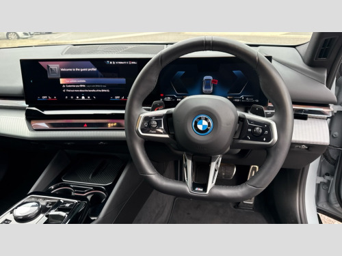 BMW 5 Series 530e M Sport 4dr Auto BMW ConnectedDrive online services, BMW Iconic sounds electric, BMW legal emergency call, BMW Teleservices, Brake pad wear indicator, Cruise control with brake assist, Driving Assistant Plus Preparation, Front collision warning with brake intervention, Lane departure warning with active return, Left turn warning with brake function, Multifunctional instrument panel, Oil sensor for level and grade, On board computer inc. average speed, fuel consumption, liquid crystal Info display, journey computer, outside temperature display, personal profile, On-board diagnosis - OBD, PAS, Personal e-SIM, Powered by Operating System 7.0, Run flat indicator, Service interval indicator, Speed limit Info with manual speed limit assist, Stop/start button, 8 speed automatic steptronic transmission with gearshift paddles, AC charging cable professional (mode 3) for public charging, DAB tuner, Acoustic glazing, Adaptive LED Headlights, Automatic cornering lights, Automatic windscreen wipers and automatic headlight, BMW selective beam, Body colour door handles, Body coloured bumpers, Dynamic brake lights with LED technology, Electric adjustable door mirrors, Electric front and rear windows with fingertip open/close + anti-trap facility and comfort closing function, Follow me home headlight function, Headlight elements in blue, Heated windscreen washer jets, LED daytime running lights, LED third brake light, Light colour close to that of ordinary daylight, Optimum, homogeneous illumination of the road, Rear boot, Rear side wing doors, 2 zone automatic air conditioning, 3 seat bench in 2nd row, 3 spoke leather M steering wheel in BMW M specific design with M badge, Armrest - front and rear integrated door trim, centre console includes storage compartment, rear centre includes 2 cupholders, Child seat ISOFIX attachment with rear outer seats includes top tether, Electric adjustable front sports seats, Electric adjustable steering column, Electrically adjustable lumbar support for driver and front passenger, Heated driver and front passenger seats, High-gloss black door switch cluster, power window switch and tailgate button on first and second row seat, M Anthracite headlining, M Sport pedal covers in stainless steel, Rear headrests, Single front passenger seat, Through loading system with 40/20/40 rear seat backrest split, Velour floormats, Wireless charging tray, Ambient lighting pack - 5 Series/I5, Connected package professional - 5 Series/I5, Driving assistance pack - 5 Series/I5, Expanded exterior mirror package - 5 series/I5, M high gloss shadow line pack - 5 Series/ I5, M Sport exterior styling pack - 5 Series/I5, 3 rear three point seatbelts, Active protection, Airbag deployment is controlled with respect to the intensity and scope, Anti-lock braking system (ABS), Brake assist, Brake energy regeneration, Cornering brake control (CBC), Crash sensor activating central locking release, hazard warning lights, fuel cut off and interior lighting, Driver and front passenger airbags, Driver central airbag, Driver/front passenger side airbags, DSC - Dynamic Stability Control, Dynamic brake control, Dynamic Traction Control - DTC, Electromechanical parking brake with automatic drive away release and auto hold function, Electronic brake force distribution, Engine drag torque control, Front and rear brake discs with interior ventilation, Front and rear curtain airbags, Front head restraints with anti-whiplash, Head airbags for first and second row seats, Hill start assist, Locking of doors after driving off, M Sport brakes in dark blue metallic painted brake callipers with M designation, Mechanical child proof lock on rear doors, PC iBrake PostCrash approach control warning with light braking function, Side impact protection, Trailer stability control, Two tone horn, Tyre pressure monitoring system, Warning triangle and first aid kit, Alarm system, Locking wheel bolts including wheel bolt adapter, Tyre repair kit plus