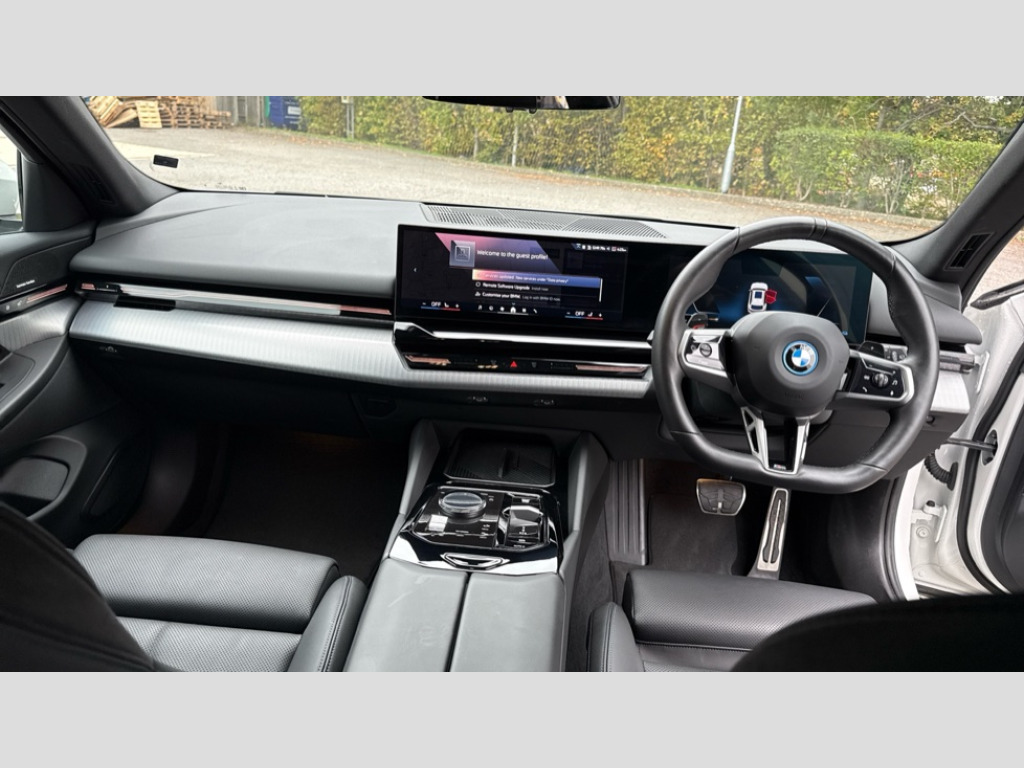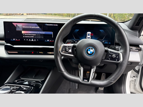 BMW 5 Series 530e M Sport Pro 5dr Auto Automatic tailgate operation, BMW ConnectedDrive online services, BMW Iconic sounds electric, BMW legal emergency call, BMW Teleservices, Brake pad wear indicator, Cruise control with brake assist, Driving Assistant Plus Preparation, Front collision warning with brake intervention, Lane departure warning with active return, Left turn warning with brake function, Multifunctional instrument panel, Oil sensor for level and grade, On board computer inc. average speed, fuel consumption, liquid crystal Info display, journey computer, outside temperature display, personal profile, On-board diagnosis - OBD, PAS, Personal e-SIM, Powered by Operating System 7.0, Run flat indicator, Service interval indicator, Speed limit Info with manual speed limit assist, Stop/start button, 8 speed automatic steptronic transmission with gearshift paddles, AC charging cable professional (mode 3) for public charging, Expert mode, Launch control, DAB tuner, Acoustic glazing, Adaptive LED Headlights, Automatic cornering lights, Automatic windscreen wipers and automatic headlight, BMW selective beam, Body colour door handles, Body coloured bumpers, Dynamic brake lights with LED technology, Electric adjustable door mirrors, Electric front and rear windows with fingertip open/close + anti-trap facility and comfort closing function, Follow me home headlight function, Headlight elements in blue, Heated windscreen washer jets, LED daytime running lights, LED third brake light, Light colour close to that of ordinary daylight, M high gloss shadow line with extended contents - Radiator grille frame, struts and strip in rear light, M light shadowline - Dark design of selected elements of the headlight and rear lights, M rear spoiler, Optimum, homogeneous illumination of the road, Rear side wing doors, Rear wiper, 2 zone automatic air conditioning, 3 seat bench in 2nd row, 3 spoke leather M steering wheel in BMW M specific design with M badge, Armrest - front and rear integrated door trim, centre console includes storage compartment, rear centre includes 2 cupholders, Child seat ISOFIX attachment with rear outer seats includes top tether, Electric adjustable front sports seats, Electric adjustable steering column, Electrically adjustable lumbar support for driver and front passenger, Heated driver and front passenger seats, High-gloss black door switch cluster, power window switch and tailgate button on first and second row seat, M Anthracite headlining, M Sport pedal covers in stainless steel, Rear headrests, Single front passenger seat, Through loading system with 40/20/40 rear seat backrest split, Velour floormats, Wireless charging tray, Ambient lighting pack - 5 Series/I5, BMW Iconic glow kidney grille exterior package, Connected package professional - 5 Series/I5, Driving assistance pack - 5 Series/I5, Expanded exterior mirror package - 5 series/I5, M high gloss shadow line pack - 5 Series/ I5, M Sport exterior styling pack - 5 Series/I5, 3 rear three point seatbelts, Active protection, Airbag deployment is controlled with respect to the intensity and scope, Anti-lock braking system (ABS), Brake assist, Brake energy regeneration, Cornering brake control (CBC), Crash sensor activating central locking release, hazard warning lights, fuel cut off and interior lighting, Driver and front passenger airbags, Driver central airbag, Driver/front passenger side airbags, DSC - Dynamic Stability Control, Dynamic brake control, Dynamic Traction Control - DTC, Electromechanical parking brake with automatic drive away release and auto hold function, Electronic brake force distribution, Engine drag torque control, Front and rear brake discs with interior ventilation, Front and rear curtain airbags, Front head restraints with anti-whiplash, Head airbags for first and second row seats, Hill start assist, Locking of doors after driving off, M seat belts, Mechanical child proof lock on rear doors, PC iBrake PostCrash approach control warning with light braking function, Side impact protection, Trailer stability control, Two tone horn, Tyre pressure monitoring system, Warning triangle and first aid kit, Alarm system, Locking wheel bolts including wheel bolt adapter, Tyre repair kit