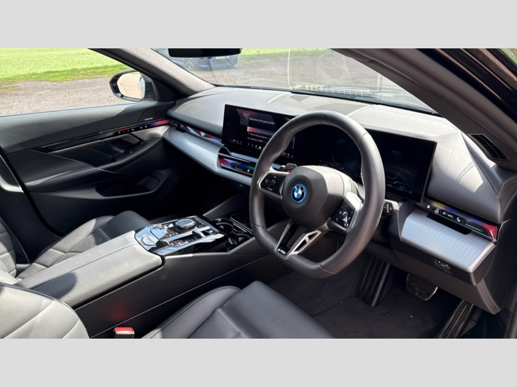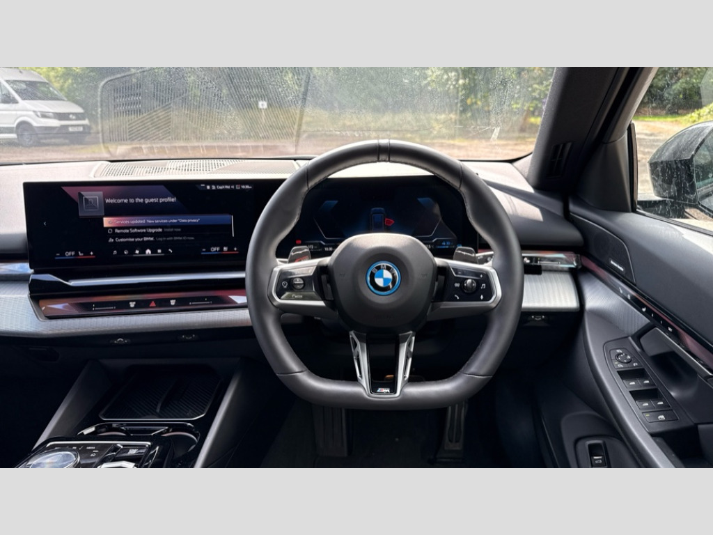 BMW 5 Series 530e M Sport Pro 5dr Auto BMW ConnectedDrive online services, BMW Iconic sounds electric, BMW legal emergency call, BMW Teleservices, Brake pad wear indicator, Cruise control with brake assist, Driving Assistant Plus Preparation, Front collision warning with brake intervention, Left turn warning with brake function, Multifunctional instrument panel, Oil sensor for level and grade, On board computer inc. average speed, fuel consumption, liquid crystal Info display, journey computer, outside temperature display, personal profile, On-board diagnosis - OBD, PAS, Personal e-SIM, Powered by Operating System 7.0, Run flat indicator, Service interval indicator, Stop/start button, 8 speed automatic steptronic transmission with gearshift paddles, AC charging cable professional (mode 3) for public charging, Expert mode, Launch control, DAB tuner, Acoustic glazing, Adaptive LED Headlights, Automatic cornering lights, Automatic windscreen wipers and automatic headlight, BMW selective beam, Body colour door handles, Body coloured bumpers, Dynamic brake lights with LED technology, Electric adjustable door mirrors, Electric front and rear windows with fingertip open/close + anti-trap facility and comfort closing function, Follow me home headlight function, Headlight elements in blue, Heated windscreen washer jets, LED daytime running lights, LED third brake light, Light colour close to that of ordinary daylight, M high gloss shadow line with extended contents - Radiator grille frame, struts and strip in rear light, M light shadowline - Dark design of selected elements of the headlight and rear lights, M rear spoiler, Optimum, homogeneous illumination of the road, Rear side wing doors, Rear wiper, 3 seat bench in 2nd row, 3 spoke leather M steering wheel in BMW M specific design with M badge, Armrest - front and rear integrated door trim, centre console includes storage compartment, rear centre includes 2 cupholders, Child seat ISOFIX attachment with rear outer seats includes top tether, High-gloss black door switch cluster, power window switch and tailgate button on first and second row seat, M Anthracite headlining, M Sport pedal covers in stainless steel, Rear headrests, Single front passenger seat, Through loading system with 40/20/40 rear seat backrest split, Velour floormats, Wireless charging tray, Ambient lighting pack - 5 Series/I5, BMW Iconic glow kidney grille exterior package, Connected package professional - 5 Series/I5, Driving assistance pack - 5 Series/I5, Expanded exterior mirror package - 5 series/I5, M high gloss shadow line pack - 5 Series/ I5, M Sport exterior styling pack - 5 Series/I5, 3 rear three point seatbelts, Active protection, Airbag deployment is controlled with respect to the intensity and scope, Anti-lock braking system (ABS), Brake assist, Brake energy regeneration, Cornering brake control (CBC), Crash sensor activating central locking release, hazard warning lights, fuel cut off and interior lighting, Driver and front passenger airbags, Driver central airbag, Driver/front passenger side airbags, DSC - Dynamic Stability Control, Dynamic brake control, Dynamic Traction Control - DTC, Electromechanical parking brake with automatic drive away release and auto hold function, Electronic brake force distribution, Engine drag torque control, Front and rear brake discs with interior ventilation, Front and rear curtain airbags, Front head restraints with anti-whiplash, Head airbags for first and second row seats, Hill start assist, Locking of doors after driving off, M seat belts, Mechanical child proof lock on rear doors, PC iBrake PostCrash approach control warning with light braking function, Side impact protection, Trailer stability control, Two tone horn, Tyre pressure monitoring system, Warning triangle and first aid kit, Alarm system, Locking wheel bolts including wheel bolt adapter, Tyre repair kit