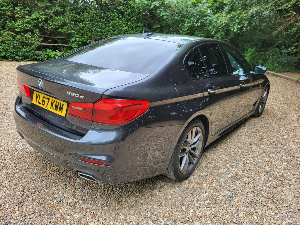 This 2018 BMW 5 Series 520d M Sport 4dr Auto is a sleek and stylish diesel saloon finished in metallic grey with black leather interior, just 72,000 miles with full BMW history, 5 seats, and 4 doors, making it the perfect family car. With an MOT that expires on 06/02/2026 and ULEZ compliance, this vehicle promises reliability and low emissions. Previously owned by 2 registered keepers, it comes equipped with advanced features including a 20GB hard drive, BMW Teleservices, digital cockpit, front/rear parking distance control, and an iDrive controller with a 10.2'' color display monitor with sat nav, auto digital climate control, auto on headlights, rain sensing wipers, USB & AUX in, DAB digital radio, Bluetooth, F1 style gearshift paddles, two keys, Don't miss the chance to experience the luxury and performance of this BMW 5 Series - it's a true driver's dream. Two keys, finance & warranty packages available. gb hard drive, bmw teleservices, digital cockpit, front/rear parking distance control, idrive controller and display with 10.2'' colour display monitor, navigation system professional multimedia, on board computer, outside temperature display, personal profile, service interval indicator, speed limiter, voice control system, anti-roll bars, diesel particulate filter, auxiliary input socket, bluetooth audio streaming, bmw professional radio/cd/mp3, dab digital radio, usb socket, auto dimming rear view mirror, body colour door handles, body coloured bumpers, body coloured door mirrors, body coloured side sills, chrome exhaust tailpipes, chrome kidney grille, dynamic brake lights, electric + heated aspheric door mirrors, electric front and rear windows with fingertip open/close + anti-trap all round, follow me home headlights, heated windscreen washer jets, illuminated door handles, individual door sill finishers, led daytime running lights, led fog lights, m aerodynamic body kit, rain sensor with auto light activation system, twin quadrilateral tailpipes, 12v power socket in rear, 2 x front 12v power sockets, 3 spoke m sports leather steering wheel, ambient interior lighting, anthracite velour floor mats, front centre armrest, front cupholders x 2, front footwell lights, front reading lights, gearshift paddles, heated front seats, illuminated glovebox with lock, isofix rear child seat preparation, multi-function controls for steering wheel, reach + rake adjustable steering column, rear centre armrest with 2 cupholders + storage, rear footwell lights, rear headrests, abs/ebd, automatic stability control (asc), bmw emergency call, cornering brake control (cbc), crash sensor - activates hazard/interior lighting + unlocks doors, driver/front passenger side airbags, driver/passenger airbags (impact dependent), dsc+, dynamic brake control, dynamic traction control - dtc, electromechanical parking brake, front and rear head airbags, front head restraints with anti-whiplash, front passenger airbag deactivation, hill start assist, inertia reel front seatbelts+pretensioners, three inertia reel rear seatbelts, tyre pressure monitoring system, warning triangle and first aid kit, engine immobiliser, locking wheel bolts, remote central locking, remote control thatcham category 1 alarm, 18'' Alloys