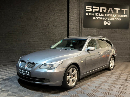 This BMW 5 Series Touring offers the perfect combination of performance, comfort and practicality.A proper executive estate with strong diesel economy and smooth automatic driving.Key Details:2.0 Diesel (177 BHP)Step Automatic GearboxSE Business Edition5 Door Touring (Estate)Smooth & Powerful DriveExcellent MPG for its ClassLarge Boot SpaceSpecification:Professional Satellite NavigationFull Leather InteriorHeated Front SeatsParking SensorsDual Zone Climate ControlCruise ControlMultifunction Steering WheelAlloy WheelsBMW iDrive SystemAuto Lights & WipersPrice - £3,995SVS FlexiPay - Alloy wheel packages, splitter kits, towbars, roof rails. Spread the cost over 4 months - 0% interestIntroducing SVS Assist - Complete Peace of Mind with Every VehicleAt Spratt Vehicle Solutions, we go beyond just sales and servicing.With SVS Assist, you're covered long after you leave our forecourt.Comprehensive Warranty Cover - Protects you against unexpected repair costsNationwide Breakdown Recovery - 24/7 assistance anywhere in the UKCourtesy Vehicle Options - Keep moving while we handle the restRoadside & Home Start Support - We're there whenever you need usEasy Claims Process - Hassle-free and handled directly through SVSCall the sales team todayAndrew - 07885704784Ryan - 07857669665 uetooth telephone preparation with telematics, bmw connecteddrive - assist, bmw connecteddrive - online, brake force display, car/key memory, check control system, cruise control, front/rear parking distance control, idrive controller on centre console, internal boot release, on board computer, on board diagnostics, outside temperature gauge, service interval indicator, servotronic pas, stop/start button, trip computer, self levelling rear air suspension, 6 cd autochanger in glovebox, auxiliary point for auxiliary devices, bmw professional radio/cd/mp3, auto dimming rear view mirror, black roof rails, body colour bumpers, body colour door handles, body colour electric adjustable heated door mirrors, chrome kidney grille with black vertical slats, electric front and rear windows with fingertip open/close + anti-trap all round, front fog lights, heated windscreen washer jets, opening rear tailgate window, rain sensor including auto headlights activation, rear wash/wipe, shark fin roof aerial, soft closing for tailgate, 12v socket in luggage compartment, 60/40 split folding rear seat, anthracite velour floor mats, automatic removable/retractable luggage cover, front and rear courtesy lights with delay, front cupholders x 2, front head restraints, front passenger isofix child seat attachment, front/rear reading lights, illuminated glovebox with lock, isofix rear child seat fastenings, outer rear adjustable head restraints, reach + rake adjustable steering column, rear air con vents, rear centre armrest with 2 cupholders + storage, sliding front centre armrest, storage compartment under load area floor, sunvisors with illuminated vanity mirrors, two 12v sockets in rear, abs, advanced head protection system front + rear, automatic stability control (asc), child locks on rear doors, crash sensor, driver/front passenger airbags, dsc+, dynamic brake control, dynamic traction control - dtc, ebd + brake assist, force limiting pretensioned front seat belts, front passenger airbag deactivation, front passenger seat occupancy sensor, front side airbags, hill start assist, three 3 point rear seatbelts, tyre pressure warning, warning triangle and first aid kit, electronic immobiliser, locking wheel bolts, remote central locking, remote control thatcham category 1 alarm, run flat tyres, 18'' Alloys