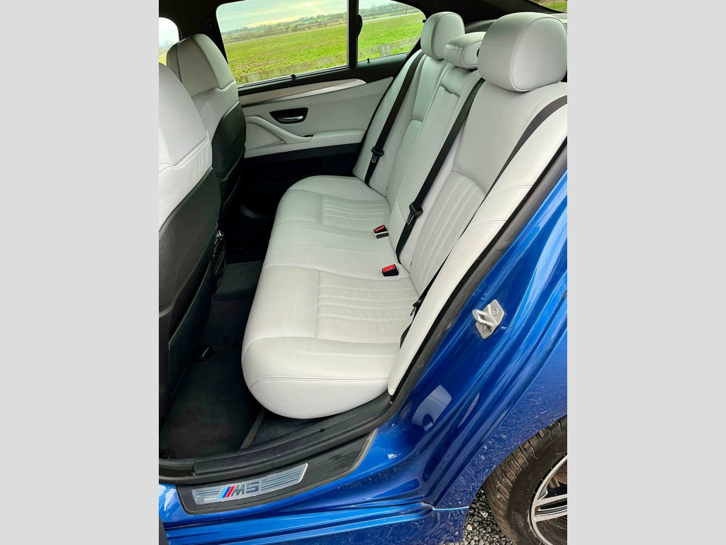 We are pleased to offer this stunning BMW M5, Finished in Monte Carlo Blue with Silver Grey Leather Interior, 2 owners from new with just over 80,500 miles, BMW Service History to 51,000, Full Engine rebuild with New genuine BMW Crank @ 80502 miles, Totally standard example, not tuned / mapped etc, Fitted with M5 Competition front splitter & rear diffuser (Original parts included), Heated multifunction steering wheel retrimmed in half leather / half alcantara with m-sport stitching, , Will come with Private Plate M5 YXV , , Auto start/stop function, Brake Energy Regeneration, Electronic Damper Control (EDC), Head Up Display (HUD), M twin-clutch transmission. with Drivelogic, Alarm system, Phone kit, Floor mats velour, Seat heating driver/passenger, Interior trim strips, Alu Trace, Ambient interior light, Headlight cleaning system, High gloss shadow line, Headlining anthracite, , Vehicle will be supplied with 12 months MOT & 3 month warranty (12 months on engine), ,
