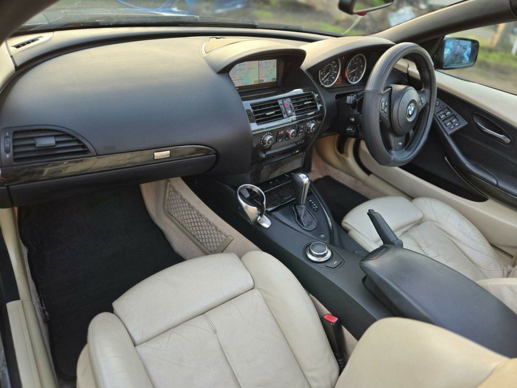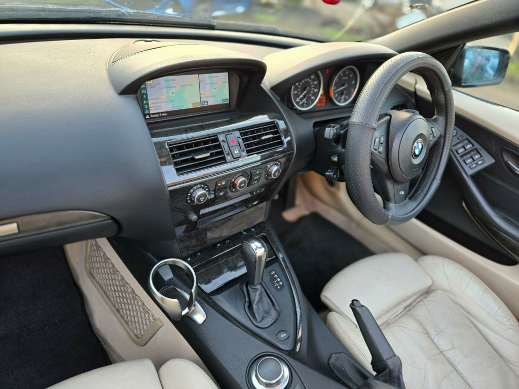 This 2007 BMW 6 Series 630i Sport is presented with a full service history and has had only two owners, offering excellent provenance. This striking model features a powerful 3.0 litre petrol engine and comes with a 12 month warranty for your peace of mind. A 12 month MOT will be provided on purchase, and the vehicle history check is clear. Inside, you'll find comfortable heated front seats, a 6CD changer for your music collection, and the Professional SatNav system to guide you on your journeys.The Sport trim level enhances the driving experience, and the generous boot space ensures practicality for all your needs. These features, combined with the meticulous care evident in its full service history and low owner count, demonstrate that this BMW 6 Series is a superior choice compared to other vehicles of its kind. ofessional satnav, 6cd changer, heated front seats, leather- dakota- cream beige, bmw assist, bmw business radio with single cd player, cd changer preparation - glovebox, dark birch wood high gloss interior trim, delete passenger footwell storage net, extended voice control, hi- fi loudspeaker system, light birch wood high gloss interior trim, model designation deletion, non smokers pack, passenger footwell storage net, ruthenium pearl gloss interior trim, smokers pack, soft top- black, soft top- grey