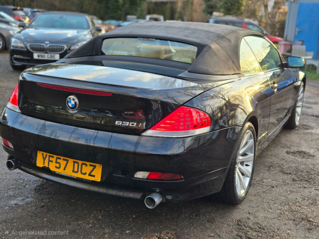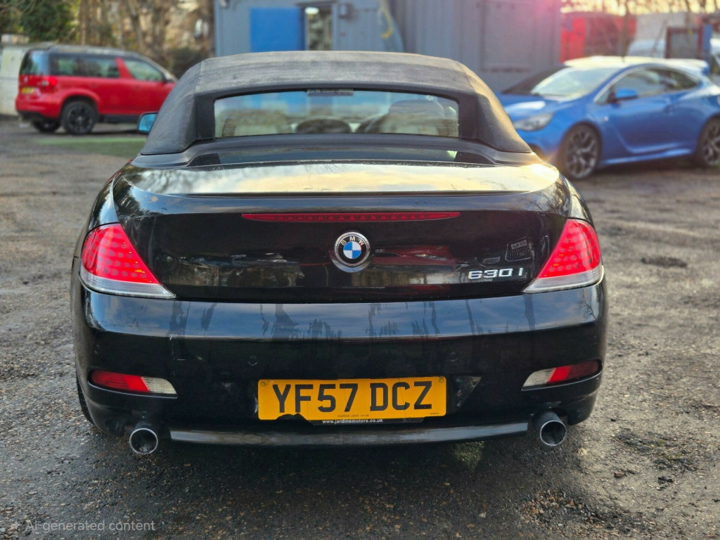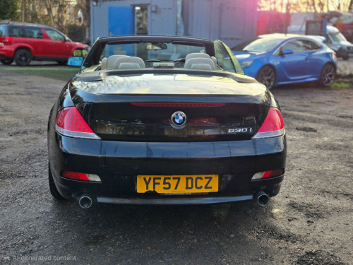 This 2007 BMW 6 Series 3.0 630i Sport Auto Euro 4 2dr Convertible is currently available for £6,500 in Middlesex with Petrol engine and Automatic gearbox. For more information or to arrange a viewing, click here to send us an email using form below.