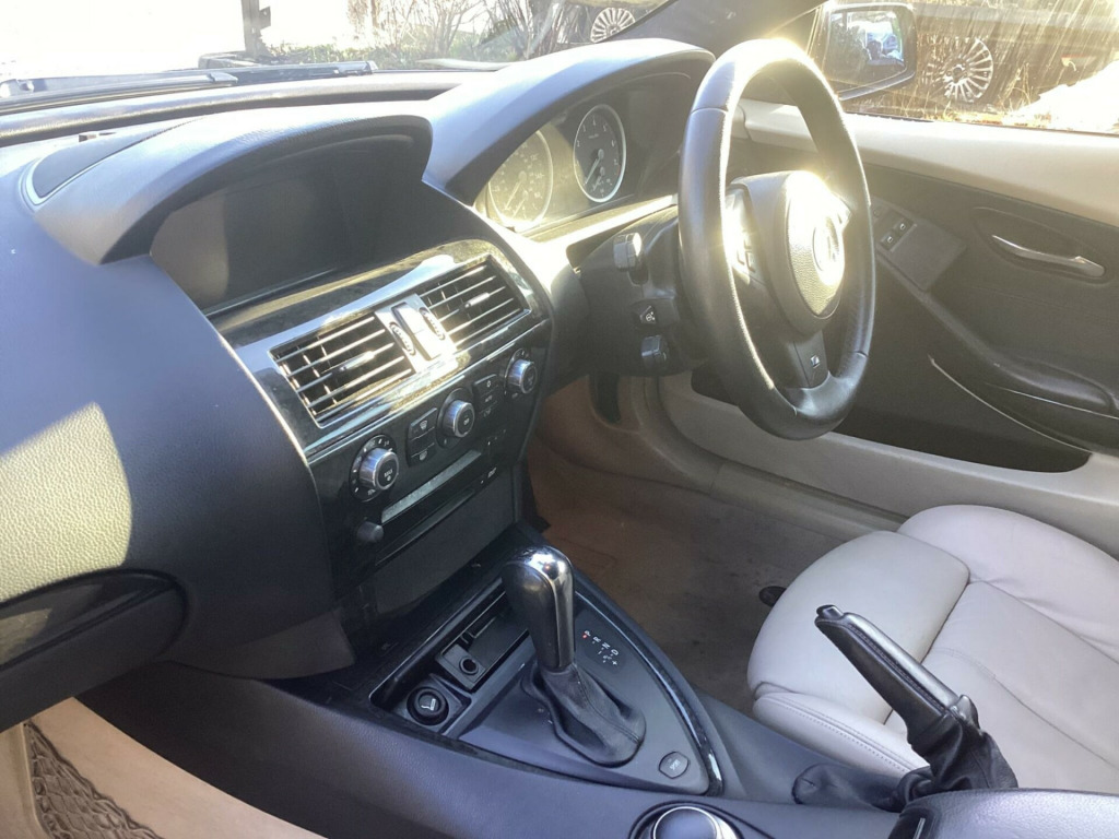 This 2006 BMW 6 Series 630i Sport boasts a full dealership service history, offering peace of mind for its next owner. This striking Sport trim model is powered by a smooth 3.0 litre petrol engine and comes with a 12 month warranty for added security. You will also receive 12 months MOT upon purchase, ensuring its roadworthiness. Inside, you'll find the Professional SatNav system, complete with an MP3 player for your entertainment on the go.This BMW 6 Series offers several advantages over similar vehicles. Its impressive fuel economy of 37 mpg means fewer trips to the petrol station, and its low insurance group rating can help keep running costs down. Furthermore, the generous boot space provides ample room for luggage or shopping. The vehicle also benefits from low CO2 emissions, making it a more environmentally conscious choice. w assist, bmw business radio with single cd player, cd changer preparation - glovebox, dark birch wood high gloss interior trim, delete passenger footwell storage net, extended voice control, hi- fi loudspeaker system, light birch wood high gloss interior trim, model designation deletion, non smokers pack, passenger footwell storage net, ruthenium pearl gloss interior trim, smokers pack, professional satnav with mp3 player, leather- dakota- cream beige
