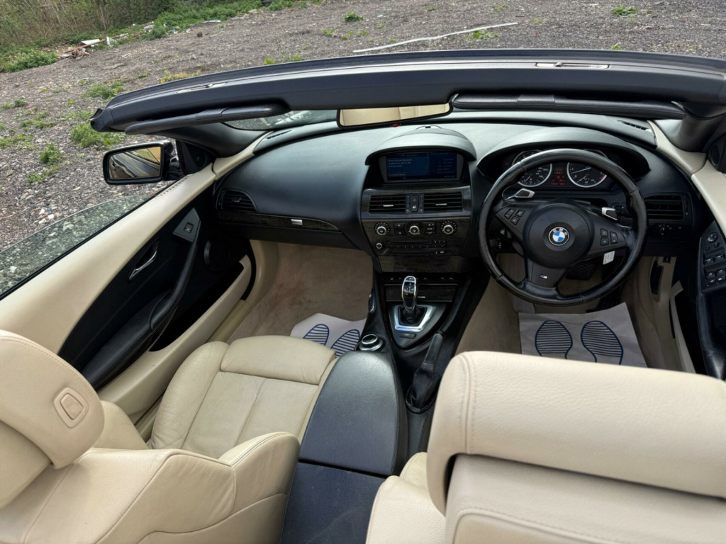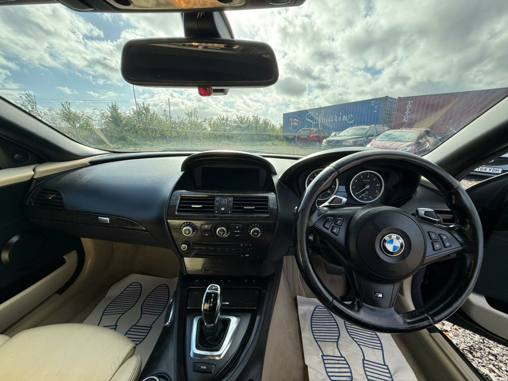 This 2008 BMW 6 Series 630i Sport offers a compelling blend of performance and practicality. Powered by a 3.0 litre petrol engine, this Sport trim model is equipped with a Professional SatNav Multimedia System featuring 8GB storage and a USB port, alongside an MP3 player for your entertainment. Convenience is further enhanced by the High beam Assistant, a USB and Audio interface, and a 6CD Changer, ensuring you have plenty of options for your journeys.The BMW 6 Series 630i Sport is designed to impress with its impressive fuel economy, achieving up to 35 miles per gallon, which is a notable advantage over many similar vehicles. You'll also appreciate the generous boot space, making it ideal for carrying luggage or shopping. Furthermore, its low CO2 emissions highlight its efficiency and environmental consideration, setting it apart from other cars in its class. ofessional satnav multimedia system with 8gb storage & usb port, professional satnav with mp3 player, hi fi logic7 professional loudspeaker system, 6cd changer, electric folding & auto dimming door mirrors, extended lights package, usb & audio interface, high beam assistant, leather- dakota- cream beige, 19in light alloy wheels- style 218 & runflat tyres, bmw business radio with single cd player, bmw connecteddrive- assist, bmw connecteddrive- online, brushed aluminium interior trim, cd changer preparation - glovebox, dark birch wood high gloss interior trim, delete passenger footwell storage net, extended voice control, hi- fi loudspeaker system, m sports multifunction leather steering wheel, maple wood high gloss interior trim, model designation deletion, non smokers pack, passenger footwell storage net, programmable cruise control, ruthenium metallic interior trim, smokers pack, soft top- black, soft top- grey