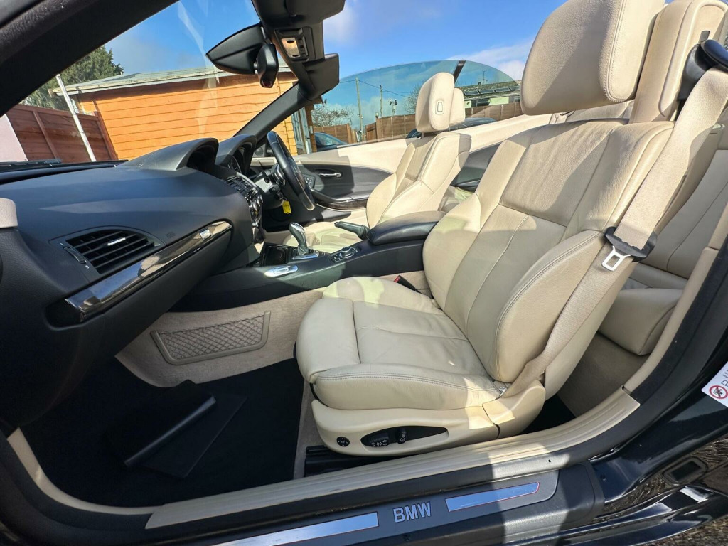 Welcome To Premium Cars For Sale LTD!, Here we have for sale this stunning and excellent condition:BMW 6 Series 3.0 635d Sport Convertible 2dr Diesel Steptronic. This BMW 6 Series has been well looked after over the years.Very rare vehicle,Its very clean inside and outside.Beautoful colour combination Obsidian Black with Beige leather upgraded wheels with Red Calipers makes it looks stunning.Comes with Full Service History,2 Keys,HPI Clear,Mileage is 62k very low mileage for these engines backed up with Full Service History.Just Been serviced and Just Pdi Checked and ready to drive away.Comes with 6 months warranty included in the price.All documents are present and the vehicle is ready for any inspections and ready to drive away. Comes with great spec such as:iDrive Controller on Centre Console with 6.5in Colour Display,BMW Professional Media package/Radio Single CD and MP3/Voice Control/Radio Tuner/BMW Surround Sound System,Comfort Telephony Enhanced Phone Hands Free, Sports Seat,Headlining Anthracite,Heated front seats,Leather Steering Wheel,Bluetooth Phone Hands Free with USB Audio Interface,Driving Sport/Normal/Manual/ Paddle shift Steering wheel, PDC Park Distance Control front and Rear,Rain Sensor, Automatic Air Conditioning,Wide screen with Split screen,Lane Assist,Black Soft top,Electric Windows Front and Rear,Multifunction Function Steering Wheel,Seat Heating Driver/Passenger,Xenon Headlights with Day running lights,Seat Adjustment.Auto lights,Electric Steering Wheel,Seats electric with memory.Finance can be Arranged.Part exchange welcome.VIEWINGS ARE BY APPOINTMENT ONLY. We do this to ensure we can provide you the time and commitment needed when you visit.If you would like to find out more about our cars please follow us on Instagram/premiumcarsforsaleltd,Ring Now to book an appointment.//////////////////////////////////