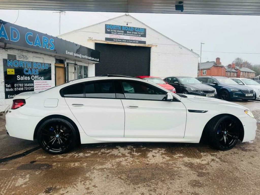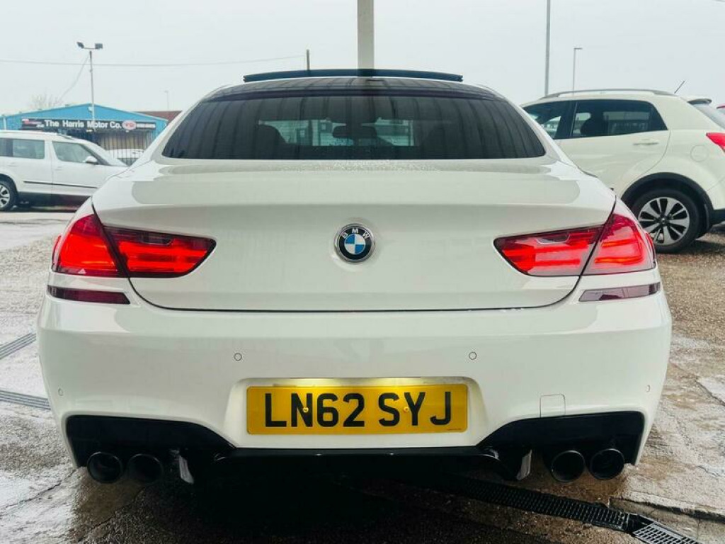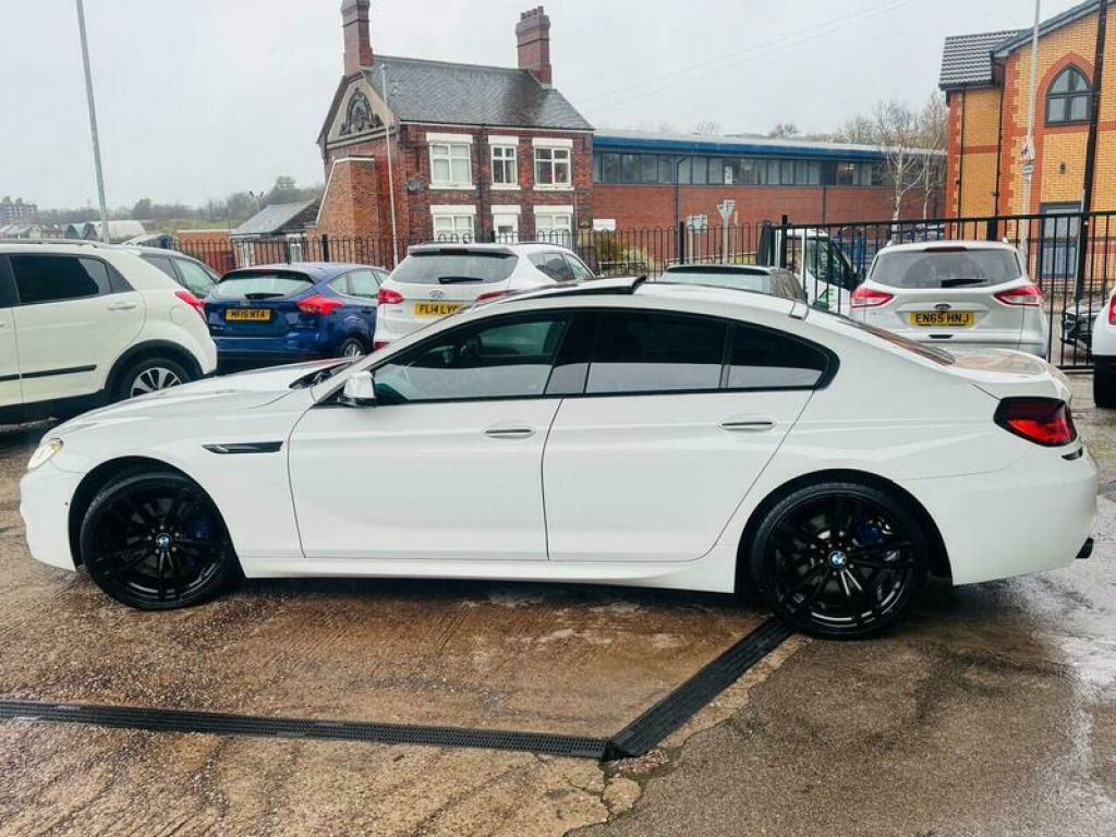Presenting this BMW 6 Series Gran Coupe 3.0 640d M Sport Auto Euro 5 (s/s) 4dr with HEADS UP DISPLAY, SUNROOF, KEYLESS ENTRY/START, HARMON KARDON SOUND SYSTEM, LED HEADLIGHTS, SURROUND CAMERA, SAT NAV, HEATED FRONT SEATS, CRUISE CONTROL, and much more. STUNNING AND TIDY EXAMPLE. VERY WELL LOOKED AFTER. TIMING CHAIN REPLACED. DRIVES SUPERB. BRILLIANT FUEL ECONOMY AND PERFORMANCE. This 2012 BMW 6 Series Gran Coupe 640d M Sport offers a compelling blend of performance and luxury. Powered by a potent 3.0L diesel engine, this M Sport variant is equipped with a host of desirable features. Navigate with ease thanks to the Surround View system providing a 360 degree camera, and enjoy effortless entry with the Comfort Access System for keyless entry. The Adaptive LED Headlights with High Beam Assistant ensure optimal visibility, while the Glass Sunroof adds an open and airy feel to the cabin. A Head Up Display projects vital information directly into your line of sight, enhancing the driving experience. The impressive acceleration of this 640d M Sport is evident in its 0-62mph time of just 5.4 seconds, demonstrating its dynamic capabilities. This performance, combined with the sophisticated M Sport trim and advanced features like the Adaptive LED Headlights and Surround View camera, positions this BMW 6 Series Gran Coupe as a distinguished choice within its class, offering a superior driving experience compared to many similar vehicles. 12V Power Socket, 19in Alloy Wheels, ABS, Alarm, Automatic Rearview Mirror Dimming, Brake Assist, Central Locking, Cruise Control, Cup Holders, Electric Heated Seats, Front Airbags, Heated Windscreen, Hill-Start Assist, Parking Assistance, Rain Sensor, Reading Lights, Satellite Navigation, Side Impact Airbags, Sports Seats, Start Stop System, Voice Control, Xenon Headlights
