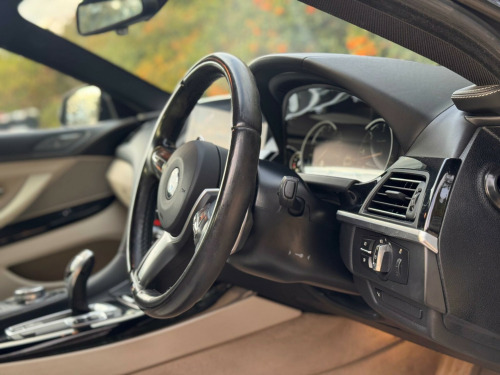 This 2016 BMW 6 Series 640d M Sport offers a compelling blend of performance and luxury, boasting a powerful 3.0L diesel engine that meets Euro 6 emissions standards. The M Sport trim enhances its dynamic appeal, while notable features include a Head Up Display for convenient information access, a premium Harman Kardon speaker system for an immersive audio experience, and elegant BMW Individual Piano Black interior trim. Parking is made easier with a reversing assist camera, and staying connected is effortless thanks to enhanced Bluetooth telephone functionality.Experience impressive acceleration with this BMW 6 Series, reaching 0-62mph in a swift 5.3 seconds, demonstrating its superior performance compared to many similar vehicles. The generous boot space ensures practicality for everyday use and longer journeys. This combination of potent performance, advanced technology, and ample storage makes the 640d M Sport a truly versatile and desirable car. sport plus package, 20in alloy wheels - light m double spoke style - 373m, head-up display, speaker system - harman kardon, interior trim - bmw individual - piano black, reversing assist camera, sun protection glazing, speed limit display, dakota leather - ivory white with black interior, 12v power socket - centre console beneath armrest, 12v power socket - small folding compartment in centre console, 19in alloy wheels - light m double spoke style - 351m, 20gb hdd memory, abs - anti lock braking system, asc - automatic stability control, air conditioning - automatic - dual zone, air inlet - front with chrome finisher, airbags - driver, airbags - front side, airbags - impact dependent system for driver and front passenger, airbags - passenger, airbags - passenger deactivation, alarm system thatcham 1 with remote control, ambient interior lighting, armrest - front with storage compartment, automatically dimming rear view mirror, auxiliary input, bmw apps interface, bmw connecteddrive online services, bmw connecteddrive services, bmw emergency call, bmw professional radio - single dvd and mp3, bmw teleservices, battery in luggage compartment, brake callipers - black - front and rear, brake drying, brake fade compensation, brake pad wear indicator, brake pre-tensioning, bumper - rear dark chrome insert, bumpers - body colour, cbc - cornering brake control, check control warning system, child seat isofix attachment - rear x2, concierge service, contrast stitching, control display - 10.2in colour display, courtesy lights - front with soft on-off dimming, crash sensor, crash sensor - activating central locking-hazard warning lights-fuel cut off, cruise control with brake function, cup holders - centre console x2, dab digital radio, dbc - dynamic brake control, dsc - dynamic stability control plus, dtc - dynamic traction control, daytime driving lights - four white led corona rings, digital cockpit, door handles - body colour, door mirrors - body coloured, door mirrors - folding - automatically dimming, door mirrors - integrated indicators, door sill finishers - bmw designation - chrome plated - illuminated, drive performance control, dynamic brake lights, dynamic safety, ebd - electronic brake-force distribution, electric windows - front open and close fingertip control, electro mechanical parking brake, engine immobiliser, enhanced bluetooth telephone functionality, enhanced bluetooth telephone preparation with usb audio interface and voice control, exhaust tailpipes - single - left and right - dark chrome, exterior trim - high-gloss shadowline, favourite buttons, first aid kit, floor mats - velour, fogging sensor - front windscreen, footwell lights - front, front fog lights - led with high gloss black accent, glove compartment, head restraints - front anti-whiplash, headlights - automatic activation, headlights - height adjustment, headlights - washer system, headlining - anthracite, heated windscreen washer jets, hill start assistant, indicator lenses - clear, information plus, instrument panel - leather, interior trim - aluminium hexagon, keyless start, kidney grille - chrome with chrome fronted and black sided vertical slats, led headlights, launch control, locking wheel bolts, luggage compartment - electric unlocking via the keys remote control, luggage compartment - release button in a-pillar, luggage compartment - storage nets, m aerodynamic bodystyling, m sport package, multi-functional instrument panel, navigation system - bmw professional multimedia, obc - on-board computer, obd - on board diagnosis, outside temperature display, pdc - park distance control - front, pdc - park distance control - front and rear, pdc - park distance control - rear, passenger seat occupancy sensor - front, personal profile, pollen filter, power steering - electric with servotronic, rain sensor, reading lights, real time traffic information, remote control locking, remote services, run flat tyres, seat belts - front inertia reel with pyrotechnical belt latch tensioner and belt force limiter, seats - driver and passenger memory, seats - front - electric height adjustment, seats - front electric adjustment, seats - front heated, securing rings in luggage compartment, side impact protection, side sills - body colour, smokers package, speaker system - bmw advanced, speakers x9, speed limit function, sport seats - front, start-stop button with keyless operation, steering column - electric reach and rake adjustment with memory, steering wheel - gearshift paddles, steering wheel - leather - m sport, steering wheel - multifunction controls, storage net in passenger footwell, storage pockets on seat backrests, sun visors with illuminated vanity mirrors, tpms - tyre pressure monitoring system, tool kit located in luggage compartment, usb connection, voice control, warning triangle, windows - heat insulated tinted all round, idrive touch controller