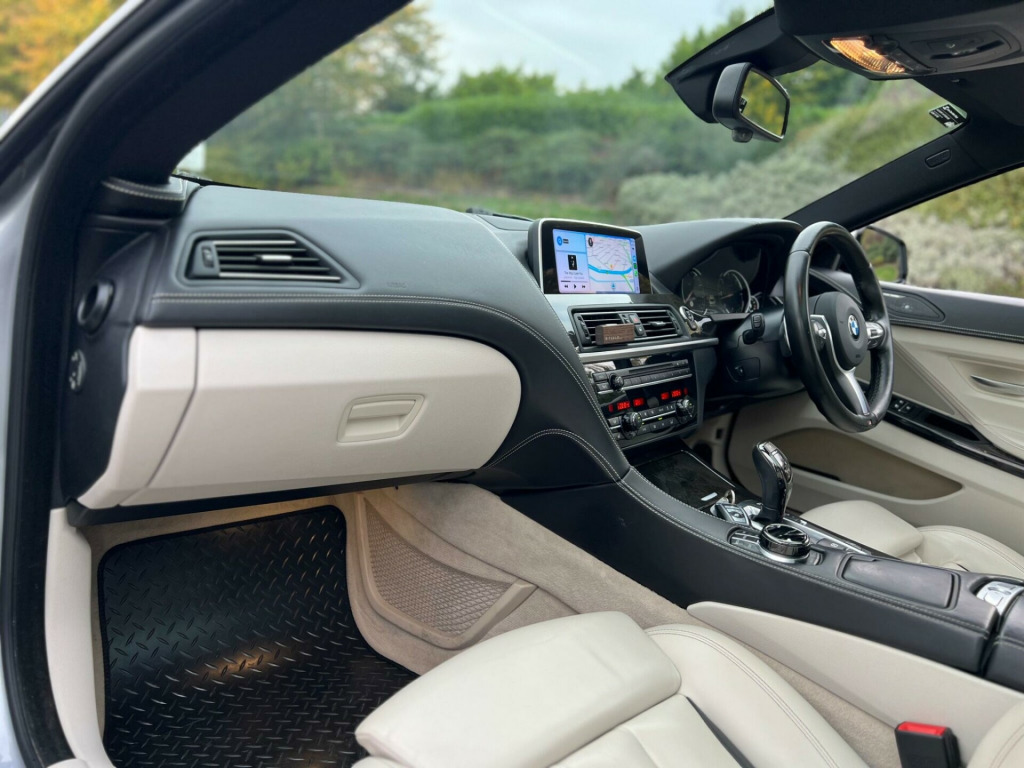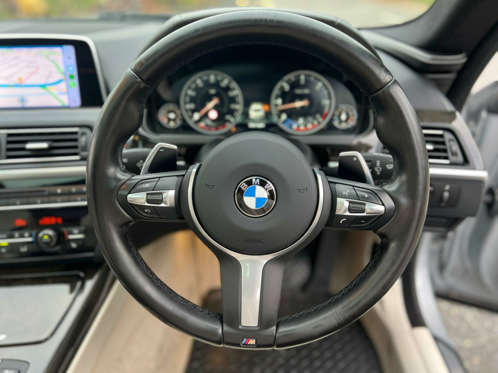2017 BMW 640D M Sport 3.0 diesel finished in silver. 88,000 warranted miles on the clock. MOT til 4th April 2026. 3 former keepers from new. Comes with a top spec including; alloy wheels, leather steering wheel, multi-functional steering wheel, cruise control, on-board computer, Satellite Navigation, Apple CarPlay, electric windows, central locking, AC/Climate control, heated seats, tilting sunroof, cream leather seats, Harmon Kardon surround sound system, reverse camera, driving modes, TPMS, cup holders and many more. Nationwide Delivery Available. P/X Welcome. HPI Clear. ULEZ Compliant. Any questions don't hesitate to contact us on 07443456706 sport plus package, 20in alloy wheels - light m double spoke style - 373m, vdc - variable damper control, glass sunroof, head-up display, loudspeaker system - harman kardon, comfort seats - front, adaptive led headlights with high-beam assistant, soft close doors, ceramic finish for controls, reversing assist camera, lumbar support - driver and front passenger, speed limit display, interior trim - dark grey poplar wood - high-gloss, high-beam assistant, model designation deletion, model designation deletion - side, exclusive nappa leather - ivory white-black bi-colour with ivory white interior, 19in alloy wheels - light m double spoke style - 351m, 20gb hdd memory, 60-40 split-folding rear seat with through-loading, air conditioning - automatic with two-zone control with extended features, airbags, alarm system - thatcham 1 with remote control and engine immobiliser, ambient interior lighting, armrests - front and rear - centre with storage compartments, automatic start-stop button, automatically dimming rear view mirror, auxiliary input point for auxiliary playing devices, bmw connecteddrive online services, bmw connecteddrive services, bmw emergency call, bmw professional radio with single cd player - mp3 and dvd playback compatibility, bmw teleservices, battery in luggage compartment with jump start facility in engine bay, brake callipers - black - front and rear, brake pad wear indicator, check control warning system, child seat isofix attachment - two in rear, concierge service, contrast stitching, control display - 10.2in high-resolution flat screen colour display, courtesy lights - front and rear with soft on-off dimming, cruise control with brake and speed limiting function, cup holders - front and rear, dab digital radio, dsc - dynamic stability control plus, daytime driving lights - four white led corona rings, deformation zones - front and rear, door sill finishers - bmw designation - chrome plated - illuminated, double-wishbone suspension - front, drive performance control with eco pro - comfort and sport modes, dynamic brake lights, dynamic safety, eps - electric power steering with servotronic, electric windows - front and rear with open-close fingertip control - anti-trap facility and comfort closing function, electro mechanical parking brake, enhanced bluetooth telephone preparation with wireless charging, exhaust tailpipes - single - left and right - dark chrome, exterior mirror housing in body colour - mirror base and bottom part of mirror housing in black, exterior mirrors - aspheric - heated with electric adjustment, exterior mirrors - folding - automatically dimming with integrated side turn indicators, exterior parts in body colour - bumpers-side sills-door handles, exterior trim - high gloss shadowline, favourite buttons, first aid kit and warning triangle, floor mats - velour, fogging sensor - front windscreen, footwell lights - front, front air inlet surrounds - chrome, front fog lights - led with high gloss black accent, glove box, head restraints - front anti-whiplash, headlight wash, headlining - anthracite, indicator lenses - clear, instrument panel - leather, integral rear axle, interior trim - aluminium hexagon, keyless starting of engine ignition, kidney grille - chrome with chrome fronted and black sided vertical slats, led headlights, launch control, locking wheel bolts, loudspeaker system - bmw advanced, luggage compartment, m aerodynamic bodystyling, m sport multi-function leather steering wheel - three-spoke, m sport package, multi-functional instrument panel, navigation system - bmw professional multimedia, obc - on-board computer, obd - on board diagnosis, pdc - park distance control - front and rear, personal profile, power socket - 12v in centre console beneath armrest, power socket - 12v in small folding compartment in centre console, rain sensor with automatic headlight activation, reading lights - front, real time traffic information, rear bumper insert - dark chrome, remote control locking, remote services, run flat tyres, seat adjustment - front electric with driver memory, seat belts - front - inertia reel with pyrotechnical belt latch tensioner - belt force limiter and belt restrainer, seat belts - rear - three with inertia reel and belt force limiter for outer seats, seat heating - front, side impact protection, smokers package, sport seats - front, steering column - electric reach and rake adjustment with memory, storage net in passenger footwell - front, storage pockets on seat backrests, sun visors with illuminated vanity mirrors, tpms - tyre pressure monitoring system, toolkit located in luggage compartment, underfloor protection, wifi hotspot preparation, windows - heat insulated-green tinted all round, windscreen washer jets - heated, idrive touch controller with shortcut buttons