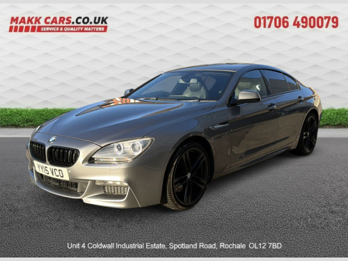 This 2015 BMW 6 Series 3.0 640d M Sport Gran Coupe Saloon is currently available for £11,995 in Rochdale Greater Manchester with Diesel engine and Auto Clutch Manual gearbox. For more information or to arrange a viewing, click here to send us an email using form below.