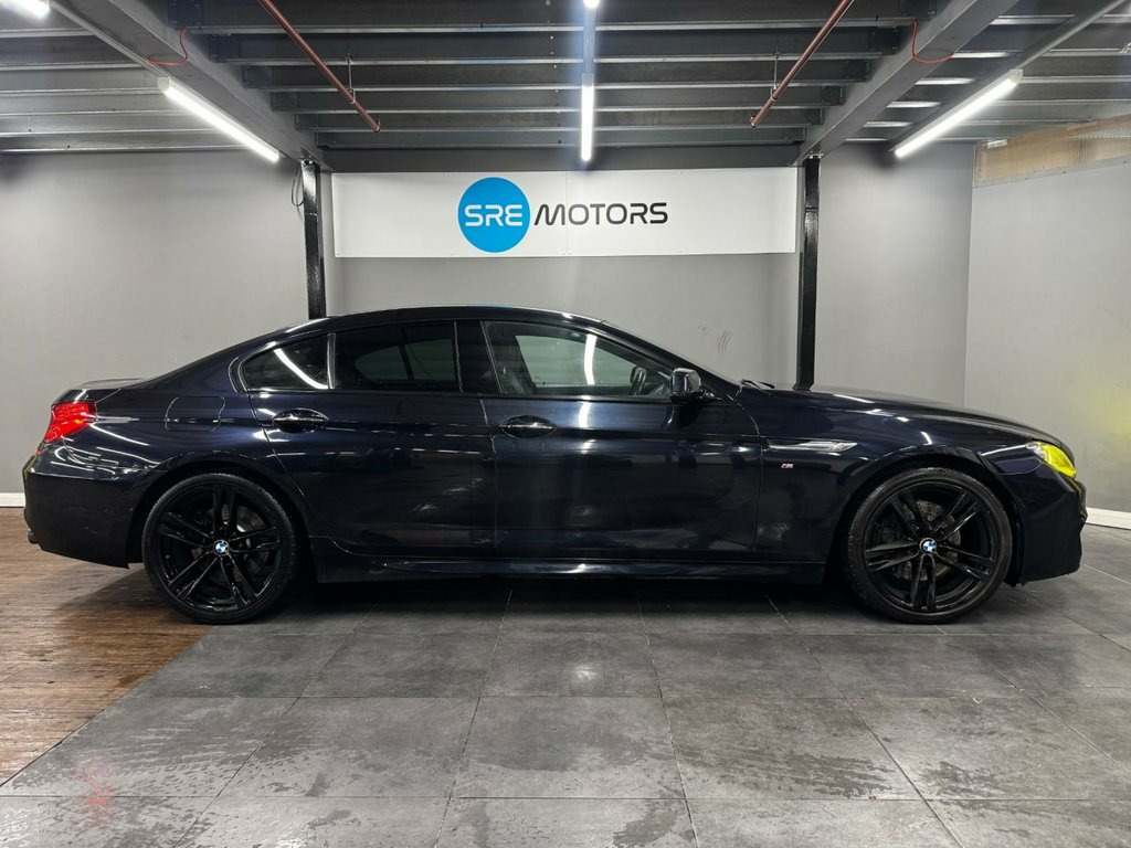 BMW 640D M Sport 3.0 diesel finished in metallic blue with 81,072 miles, is now available at SRE Motors This 2014 BMW 6 Series Gran Coupe 640d M Sport presents a compelling proposition with its remarkably low mileage of just 81,072 miles for its age. This particular example benefits from the sporty M Sport trim, featuring a powerful 3.0 litre diesel engine that delivers impressive performance. Inside, you'll find the sophisticated touch of Dark Grey Poplar Wood interior trim, complemented by heated front seats for added comfort. For convenience and safety, it includes a reversing assist camera with parking assistance and bright Xenon headlights. Connectivity is also catered for with the inclusion of Internet access. The driving experience of this 640d M Sport is a significant highlight, with its ability to accelerate from 0 to 60mph in a swift 5.4 seconds. This performance, combined with the efficient diesel engine and the refined handling characteristic of BMW's M Sport models, sets it apart from many other vehicles in its class. The thoughtful inclusion of features like the heated seats and advanced parking aids further enhance its appeal, offering a blend of dynamic capability and everyday usability. Contact us today to arrange a viewing, arrange finance, reserve this vehicle or for anymore information We offer low rate finance, nationwide delivery, extended warranty and accept part exchange. 12V Power Sockets, 19in Alloy Wheels - Light M Double Spoke, ABS - Anti Lock Braking System, ASC - Automatic Stability Control, Air Conditioning - Automatic - Dual Zone, Airbags - Driver, Airbags - Front Side, Airbags - Impact Dependent System for Dr, Airbags - Passenger, Airbags - Passenger Deactivation, Alarm System Thatcham 1 with Remote Cont, Ambient Interior Lighting, Armrest - Front with Storage Compartment, Automatically Dimming Rear View Mirror, Auxiliary Input, BMW Apps Interface, BMW ConnectedDrive Online Services, BMW Emergency Call, BMW Professional Radio - Single CD and M, BMW TeleServices, Brake Drying, Brake Fade Compensation, Brake Pad Wear Indicator, CBC - Cornering Brake Co
