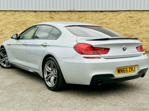 2015 BMW 6 Series Gran Coupé 3.0 640d M Sport Auto – 313 PS Available now at DealDrive Motors.  The BMW 640d M Sport Gran Coupé combines elegant four-door coupé styling with strong diesel performance and premium comfort. With its sleek design, powerful engine, and advanced features, it's a car that blends executive refinement with sporting appeal.  Powered by a 3.0-litre six-cylinder diesel engine producing 313 PS, this 640d delivers effortless acceleration and smooth performance. The automatic gearbox ensures seamless shifts, while Euro 6 compliance makes it fully ULEZ-friendly.  Inside, the M Sport trim enhances the luxurious cabin with leather upholstery, heated seats, and premium finishes. Technology highlights include satellite navigation, Bluetooth connectivity, DAB digital radio, and dual-zone climate control. The Gran Coupé's 4-door layout provides extra practicality while retaining coupé elegance.  Everyday convenience is enhanced with front and rear parking sensors, cruise control, ISOFIX child seat mounts, and a multifunction steering wheel. M Sport body styling, alloy wheels, and LED headlights add to its commanding road presence.  Presented in excellent condition with service history and HPI clear for peace of mind, this BMW 640d M Sport Gran Coupé blends power, luxury, and practicality in a stunning executive coupé. Smokers Package Deletion, 12V Power Socket - Centre Console Beneat, 12v Power Socket - Small Folding Compart, 19in Alloy Wheels - Light M Double Spoke, 20GB HDD Memory, ABS - Anti Lock Braking System, ASC - Automatic Stability Control, Air Conditioning - Automatic - Dual Zone, Air Inlet - Front with Chrome Finisher, Airbags - Driver, Airbags - Front Side, Airbags - Impact Dependent System for Dr, Airbags - Passenger, Airbags - Passenger Deactivation, Alarm System Thatcham 1 with Remote Cont, Ambient Interior Lighting, Armrest - Front with Storage Compartment, Armrest - Rear Centre, Automatically Dimming Rear View Mirror, Auxiliary Input, BMW Apps Interface, BMW ConnectedDrive Online Services