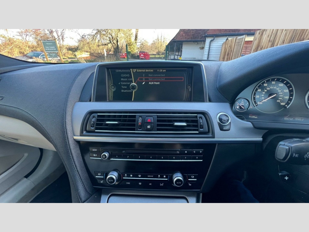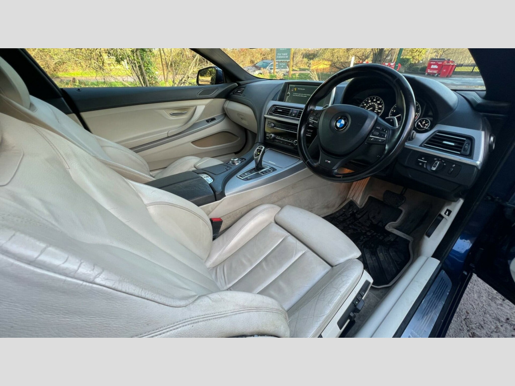 New in! Here we have this stunning! Great value! 6 series far sale! Comes with a full mot with no advisories! Service history! Lovely condition! Looks and drives amazing! Please call any yome! in alloy wheels - light m double spoke style - 373m, sun protection glazing, dab digital radio, dakota leather - ivory white, park assist, exclusive nappa leather - ivory white, 12v power socket - front x2, 19in alloy wheels - light m double spoke style - 351m, abs - anti lock braking system, asc - automatic stability control, air conditioning - automatic with extended features, airbags - driver, airbags - driver and front passenger side, airbags - passenger, airbags - passenger deactivation, alarm system thatcham 1 with remote control, armrest - front centre, automatically dimming rear view mirror, auxiliary input, bmw assist, bmw assist online portal, bmw professional radio - single cd and mp3, child seat isofix attachment - rear x2, crash sensor - activating central locking release, cruise control with brake function, cup holders - two - centre console, dbc - dynamic brake control, dsc - dynamic stability control - stabilises the vehicle in extreme situations - controls traction, door mirrors - electric and heated, door mirrors - folding - automatically dimming, drive performance control - eco pro - comfort - sport - sport plus, dynamic brake lights, ebd - electronic brake-force distribution, eco pro mode, electric windows - front, enhanced bluetooth telephone functionality with telematics, exterior trim - high-gloss shadowline, floor mats - velour, headlights - automatic activation, headlights - washer system, headlining - anthracite, hill start assist, interior trim - aluminium hexagon, keyless start, led fog lights - front, m aerodynamics package, m sport package, navigation system - bmw professional multimedia, obc - on-board computer, obd - on board diagnosis, pdc - park distance control - front and rear, pdc - park distance control - rear, rain sensor with automatic headlight activation, remote audio controls, remote control locking, run flat tyres, seat adjustment - front electric with driver memory, seats - front heated, servotronic steering, side impact protection, smokers package, sport seats - front, standard seats - front - electric adjustment with driver and passenger memory, steering column - electric reach and rake adjustment with memory, steering wheel - m sport leather multifunction, tpws - tyre pressure warning system, usb audio interface, voice control - phone, xenon headlights