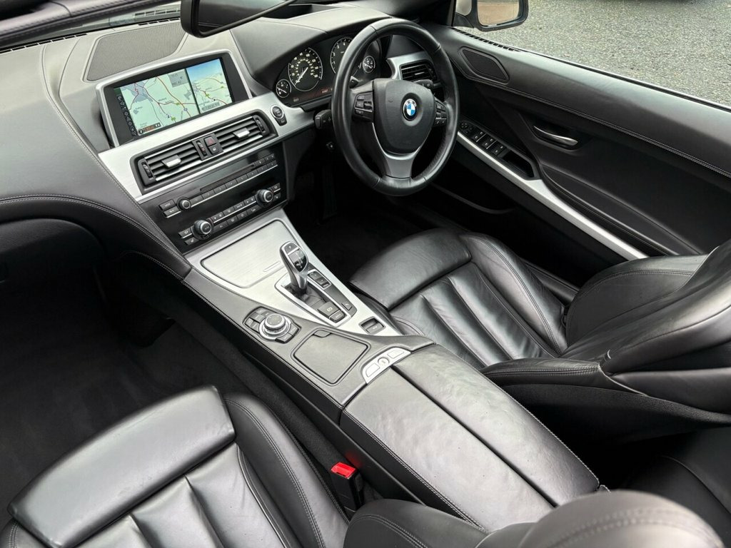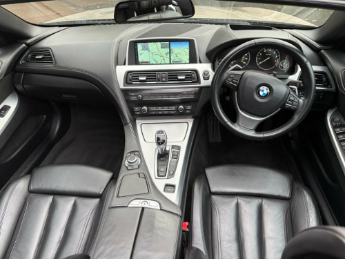 BMW 6 Series 3.0 640i SE Convertible Auto finished in a stunning colour combination with just 41k miles, powerful and smooth 320ps petrol engine with Steptronic automatic gearbox and paddle shift, Euro 5 start/stop, luxury convertible offering exceptional performance and comfort, heated nappa leather seats, electric steering column adjustment, wide screen navigation, Bluetooth connectivity, head up display, electric folding roof, front and rear parking sensors, wind deflector, striking 20 inch alloy wheels, automatic with paddles, 2 keys, well maintained, superb condition throughout and drives beautifully. THIS CAR HAS JUST ARRIVED AND IS AWAITING PREPARATION THROUGH OUR WORKSHOP; IT IS AVAILABLE TO VIEW AND TEST DRIVE. 12V Power Socket - Front x2, 17in Alloy Wheels - Light V Spoke Style , 18in Alloy Wheels - Light Double Spoke -, 20in Alloy Wheels - Light V Spoke Style , ABS - Anti Lock Braking System, Adaptive Headlights, Air Conditioning - Automatic with Extend, Airbags - Driver, Airbags - Driver and Front Passenger Sid, Alarm System Thatcham 1 with Remote Cont, Ambient Interior Lighting, Armrest - Front Centre, Automatically Dimming Rear View Mirror, Auxiliary Input, BMW Assist, BMW Assist Online Portal, BMW Online services, BMW Professional Radio - Single CD and M, BMW TeleServices, CBC - Cornering Brake Control, Check Control Warning System, Child Seat ISOFIX Attachment - Rear x2, Comfort Seats - Fron