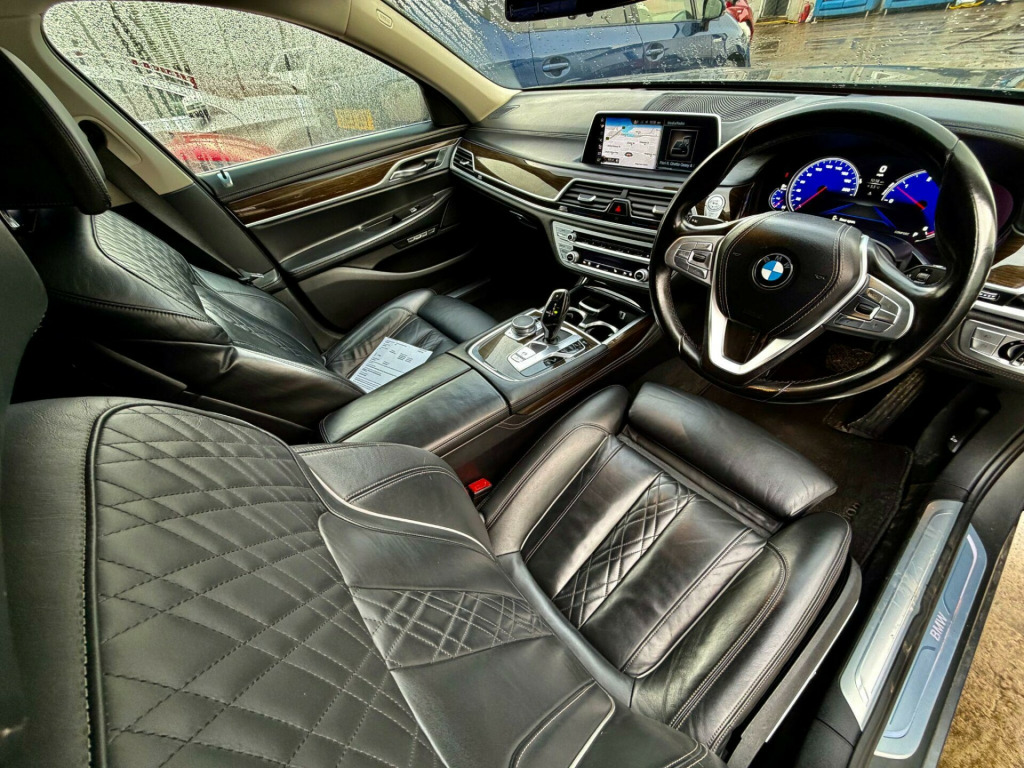 This 2016 BMW 730d offers a refined driving experience with its powerful 3.0L diesel engine and efficient Euro 6 emissions. As a four wheel drive model, it provides excellent stability and control in various conditions. Inside, you'll find a host of premium features designed for comfort and convenience, including driver and passenger memory seats, enhanced Bluetooth telephone preparation with wireless charging, and heated front seats. Parking is made easier with front park distance control, and the LED headlights ensure clear visibility.The 730d boasts impressive performance, accelerating from 0 to 62mph in just 5.8 seconds, demonstrating its dynamic capabilities. This acceleration figure highlights its superior performance compared to many other vehicles in its class. Furthermore, the generous boot space ensures practicality for all your needs, making this BMW 7 Series a well rounded choice for those seeking luxury, performance, and utility. clusive nappa leather - black with black interior, apple carplay preparation, navigation system, rear camera, parking sensors front / rear, park assist, adaptive headlights, headlight wash, heat d front seats / rear, ambient air package, comfort seats - rear, exclusive nappa leather - cognac with black interior, 12v power socket - front x2, 12v power socket - rear of centre console x2, 18in alloy wheels - light multi-spoke style - 619, 20gb hdd memory, abs - anti lock braking system, asc - automatic stability control, air conditioning - automatic with four zone control, airbags - curtain head - front, airbags - curtain head - rear, airbags - driver, airbags - front side, airbags - impact dependent system for driver and front passenger, airbags - passenger, airbags - passenger deactivation, alarm system thatcham 1 with remote control, ambient interior lighting, anti roll bars - front and rear, armrest - front centre, armrest - rear centre, automatically dimming rear view mirror, bmw apps interface, bmw connecteddrive online services, bmw connecteddrive services, bmw display key, bmw emergency call, bmw professional radio - single cd-dvd and mp3, bmw teleservices, battery in luggage compartment, bootlid operation - powered, brake assist, brake force display, brake lights with led technology, cbc - cornering brake control, child seat isofix attachment - rear, comfort access with smart opener, comfort exit stepless door brakes, comfort seats - front, crash sensor, cruise control with brake function, cup holders - front x2, cup holders - rear x2, dab digital radio, dbc - dynamic brake control, dsc - dynamic stability control - stabilises the vehicle in extreme situations - controls traction, dtc - dynamic traction control, daytime running lights - led, display - 10.25in colour screen, door handle illumination, door mirrors - automatic dipping parking function on passenger side, door mirrors - folding - automatically dimming, door sill finishers - bmw designation, drive performance control with eco pro - comfort - comfort plus - sport - sport plus and adaptive modes, dynamic brake lights, dynamic safety, ebd - electronic brake-force distribution, electric windows - open and close fingertip control, electro-mechanical parking brake with auto-hold function, engine immobiliser, enhanced bluetooth telephone preparation with wireless charging, enhanced route planning, exhaust tailpipes - single quadrilateral left and right, first aid kit, floor mats - velour, follow me home headlight function, footwell lights - front and rear, glove compartment - lockable, head restraints - front anti-whiplash, headlights - automatic activation, heated windscreen washer jets, high-beam assistant, information plus, instrument panel - leather, interior trim - fineline wood high gloss, jump start facility in engine bay, kerb view function for passenger door mirror, led fog lights - front, led headlights, locking wheel bolts, loudspeaker system - bmw advanced, msr - engine drag torque control, massage function - front, multi-functional instrument panel, multifunction controls for steering wheel, navigation system - bmw professional multimedia, obc - on-board computer, obd - on board diagnosis, outside temperature display, pdc - park distance control - front, pdc - park distance control - rear, personal profile, pollen filter, power steering - electric with servotronic, rain sensor, reading lights - front and rear, real time traffic information, rear fog light - led, remote services, reversing assist camera, run flat tyres, seat heating - rear, seats - driver and passenger memory, seats - drivers electric height adjustment, seats - front 4-way electric lumbar support, seats - front heated, seats - front passengers electric height adjustment, seats - rear comfort, side impact protection, smart-opener, smokers package, soft close - tailgate, speakers x1 - midrange in the middle of the instrument panel, speakers x1 - tweeter in instrument panel, speakers x2 - bass underneath the front seats, speakers x2 - midrange in front door panels, speakers x2 - midrange in rear door panels, speakers x2 - tweeters in mirror triangles, speakers x2 - tweeters in rear doors, speed limit function, sport multi-function leather steering wheel - three spoke, steering column - electric reach and rake adjustment with memory, steering wheel - memory, suspension - 2-axle air, tpms - tyre pressure monitoring system, usb audio interface, vdc - variable damper control, voice control - navigation, voice control - phone, warning triangle, wifi hotspot, idrive touch controller