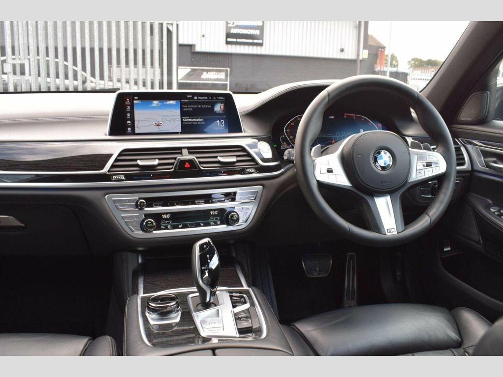 December 2019 69 BMW 7 Series 3.0 730d M Sport Auto finished in sought after Dravit Grey Metallic with full Black Exclusive Nappa Leather with Black World. 51600 miles covered by two owners and supported by excellent BMW specialist service history all stored in the iDrive with the latest service completed in 2025 and not due again until 2027. Presented in excellent condition throughout, this car has been subjected to our usual strict pre delivery inspection and preparation process ensuring all cosmetic and mechanical elements are in good order. Well equipped in addition to the desirable paint finish thanks to the M Sport Plus Package which gives the car a set of 20 M Light Alloy Star-Spoke Style 817 M Wheels in Bicolour with Run-Flat Tyres, M Sport Braking System, Sun Protection Glass, M Seat Belts And M Rear Spoiler. Other optional extras include: Exterior Trim - Extended High Gloss Shadowline, BMW Display Key and Exclusive Nappa Leather - Black with Black World. Other highlights include: Air Conditioning - Automatic with Four Zone Control, Ambient Lighting, BMW Connected Package Professional, BMW Gesture Control, BMW Icon Adaptive LED Headlights, BMW Live Cockpit Professional, Bootlid Operation - Powered, Carbon Core - Innovative Lightweight Construction with Highly Rigid and Light Carbon Elements, Ceramic Finish for Controls, Comfort Access with Smart Opener, Comfort Seats - Front, Cruise Control with Brake Function, DAB Digital Radio, Driving Experience Control with Adaptive Mode, Dynamic Damper Control, Enhanced Bluetooth with Wireless Charging, Headlining - Anthracite, Instrument Panel - Leather, Interior Trim - Fineline Black Wood - High-Gloss with Metal Effect, Loudspeaker System - Harman Kardon, M Aerodynamic Bodystyling, M Sport Package, Parking Assistant Plus, Rear Lights - LED, Seat Heating - Front and Rear, Soft Close Doors, Suspension - 2-Axle Air, WiFi Hotspot Preparation and more. , UK wide delivery available. Please get in touch for details. , PAYMENT: We accept debit cards for payments up to £500. For larger payments we accept BACS (bank transfer) only. Please check transfer processing times and limits with your bank if you plan to pay on collection as we are unable to release cars without cleared funds. Please also bring anything you may need to access your online banking on the day including securekeys, card readers etc. We accept cash payments up to £9000 which are subject to a 2% banking fee. Please note a £250 admin fee is applicable for purchases funded by third party finance lenders. , Please note: Although every effort is made to ensure the accuracy of every advert and vehicle specification, system and human errors can occur from time to time and it is advised to check for confirmation.