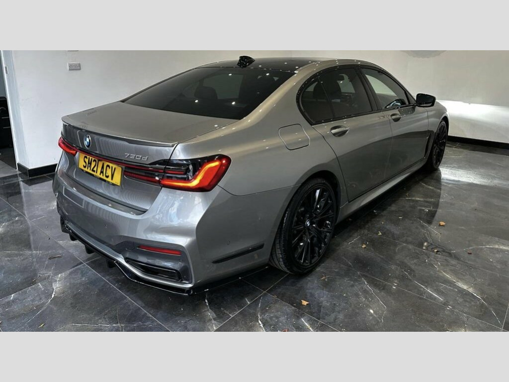 BMW 7 Series 3.0 730d MHT M Sport Auto Euro 6 (s/s) 4dr This 2021 BMW 730d M Sport is a remarkable example of executive motoring, boasting a powerful 3.0L Diesel Hybrid engine and adhering to the Euro 6 emission class. Finished in a sophisticated M Sport trim, this vehicle is equipped with striking 20in M Light Star-Spoke Style 817 M Jet Black alloy wheels fitted with run-flat tyres, and features a luxurious BMW Individual Interior Trim Finisher in Piano Black. The cabin is further enhanced by the exquisite BMW Individual Full Merino Leather upholstery in Amarone Black, creating an opulent and comfortable environment.